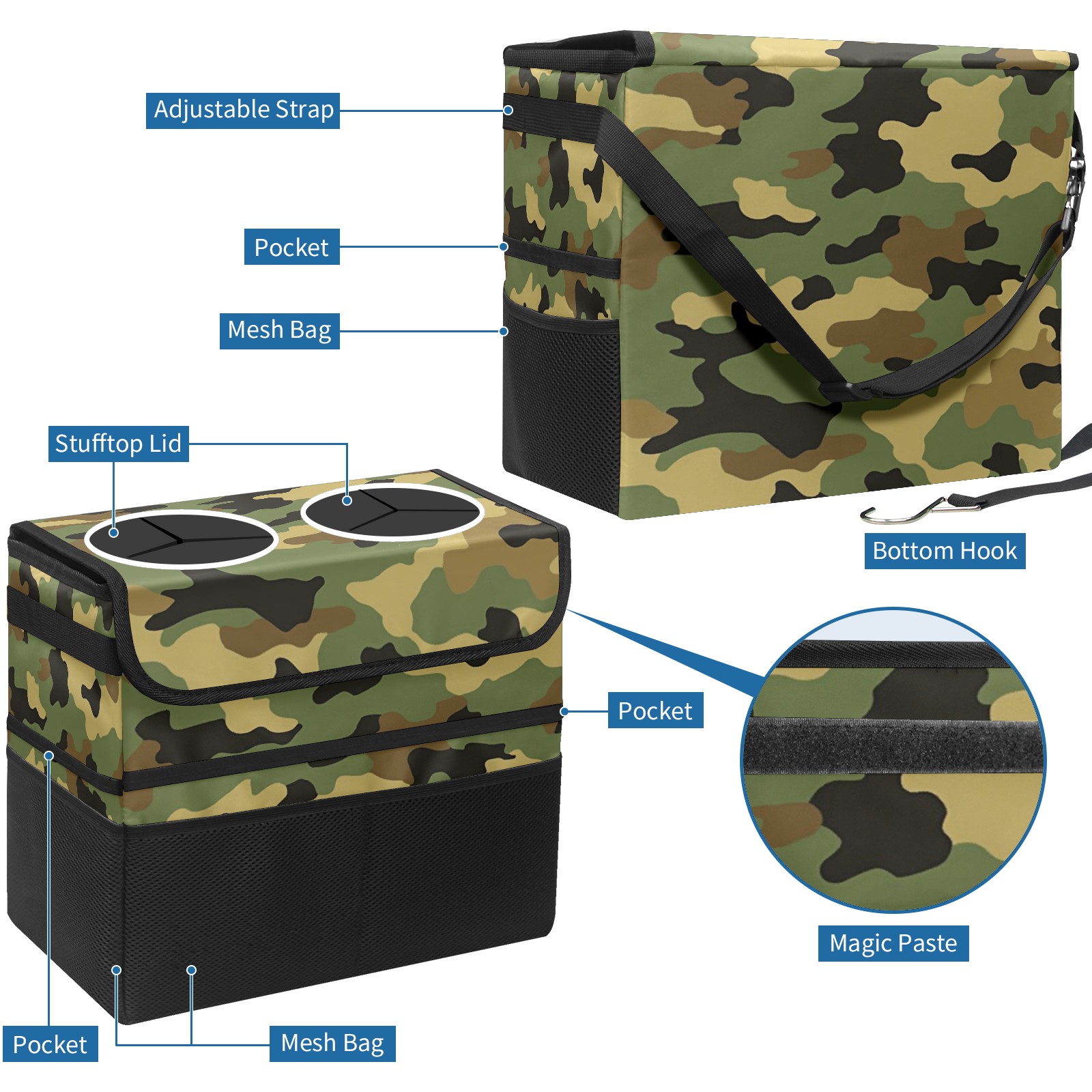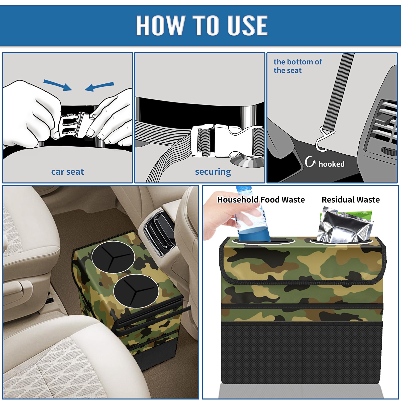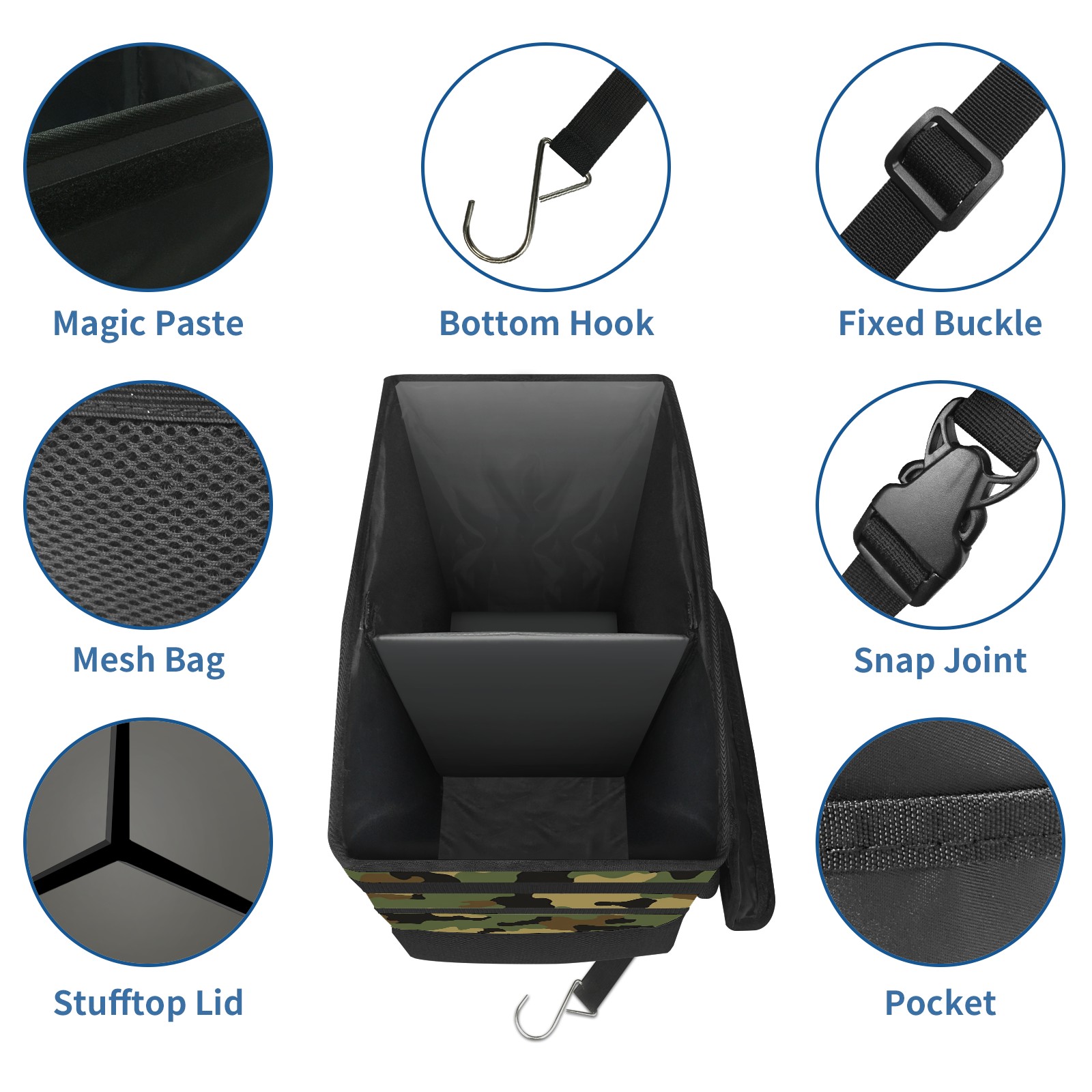 Car Trash Can with Lid, Portable Hanging Automotive Garbage Bin for Vehicles, Leakproof Waste Bag Container for SUV Truck Van Interior Auto Travel Road Trips(Camouflage)