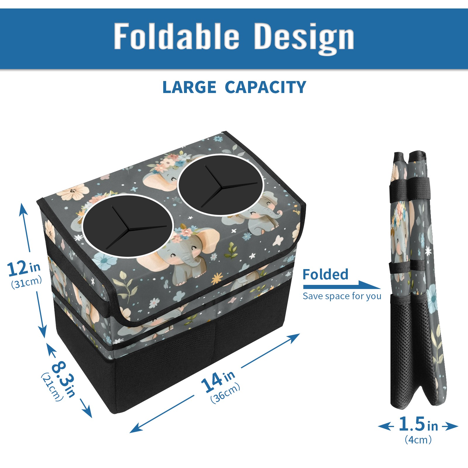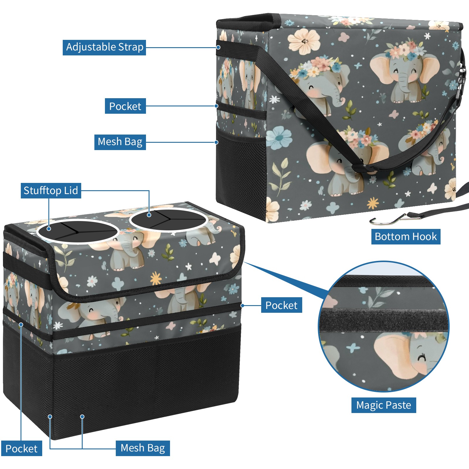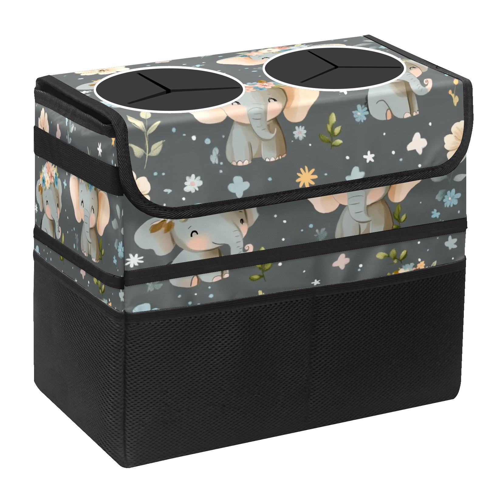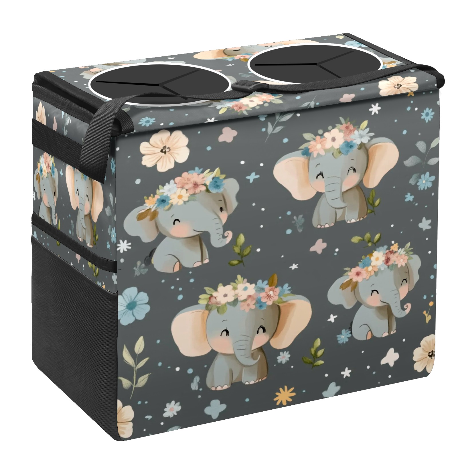 Car Trash Can with Lid, Portable Hanging Automotive Garbage Bin for Vehicles, Leakproof Waste Bag Container for SUV Truck Van Interior Auto Travel Road Trips(Baby Elephants)