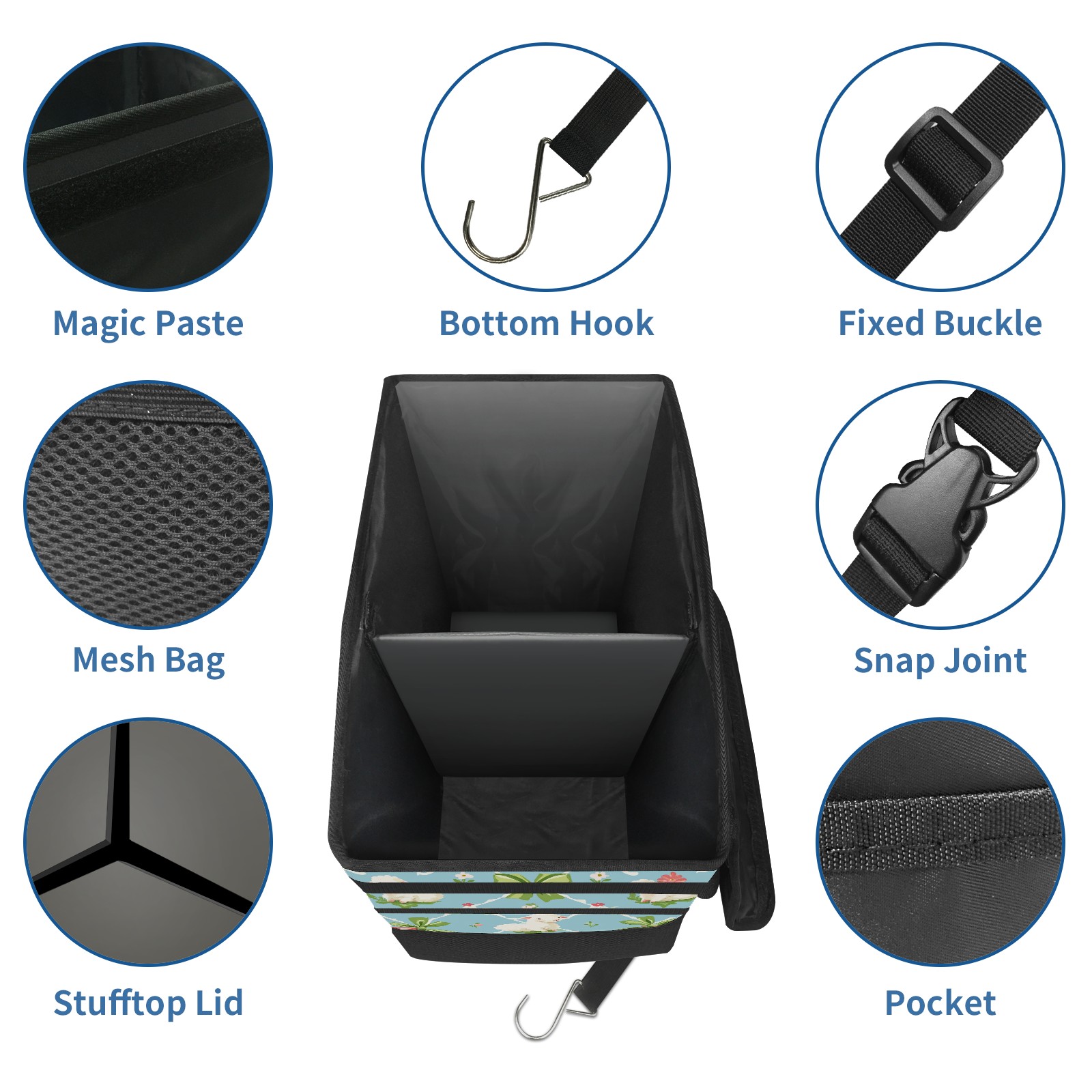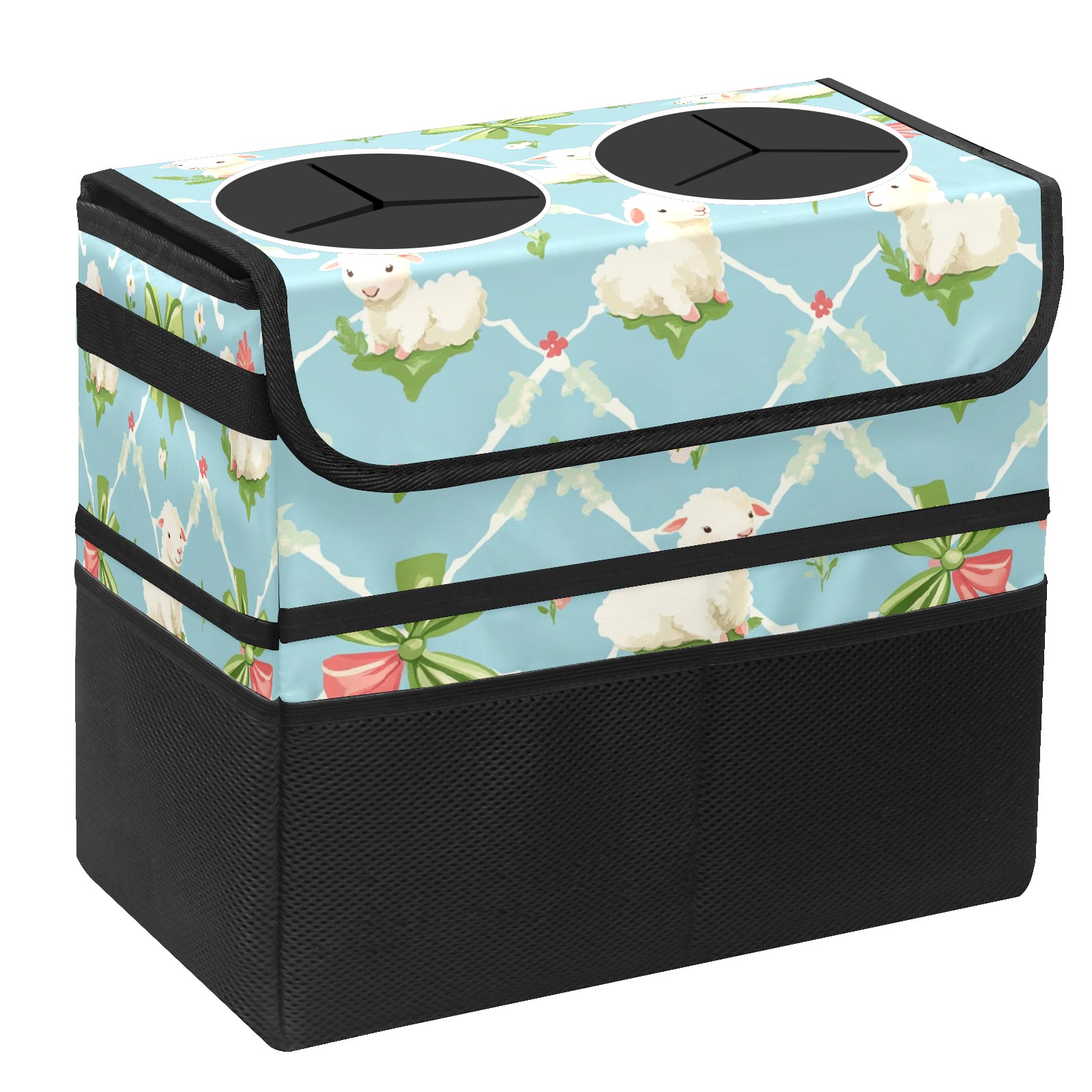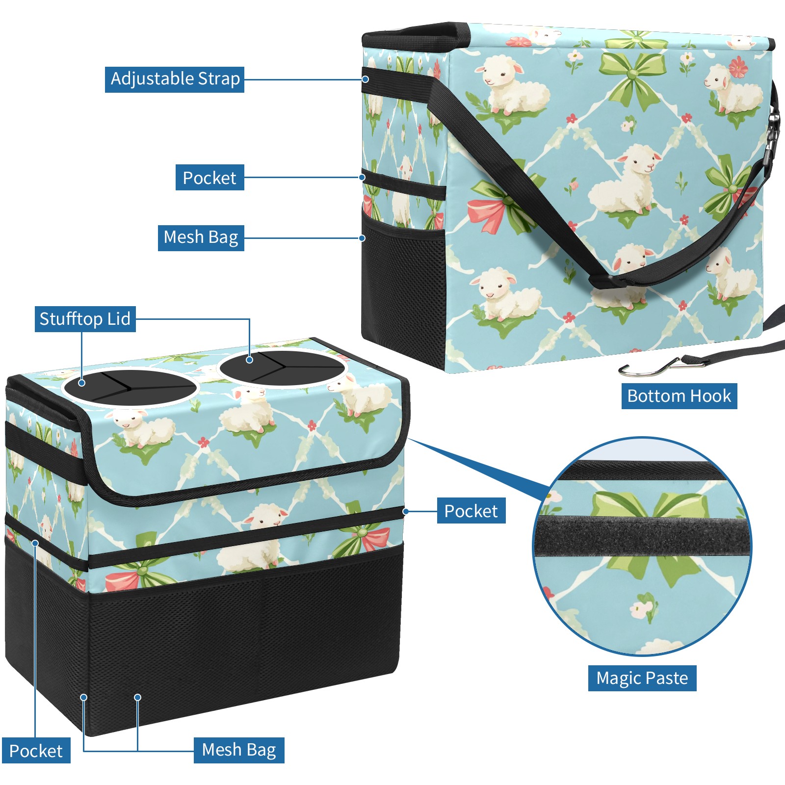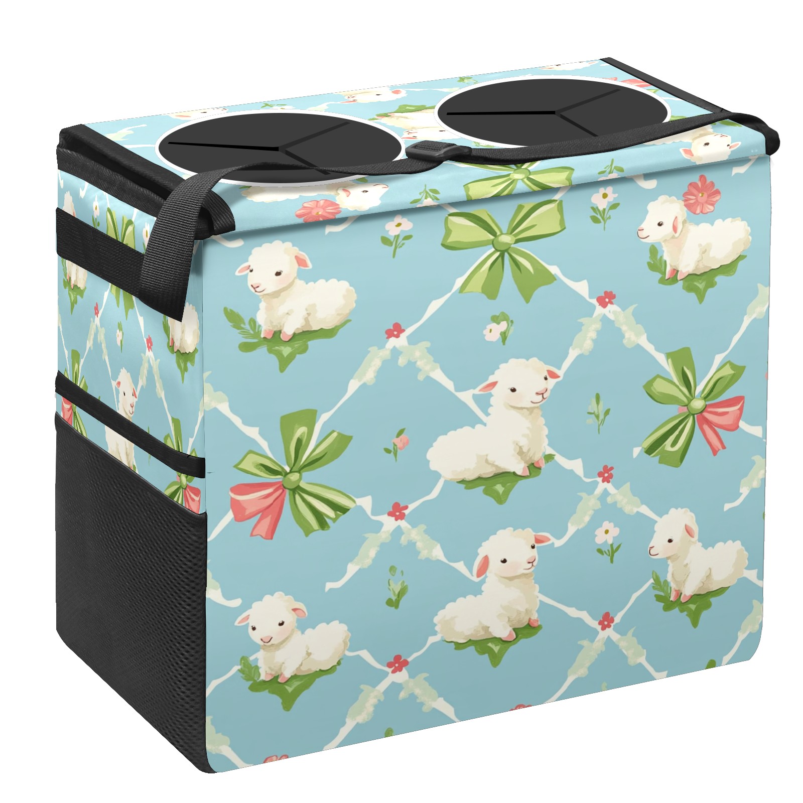 Car Trash Can with Lid, Portable Hanging Automotive Garbage Bin for Vehicles, Leakproof Waste Bag Container for SUV Truck Van Interior Auto Travel Road Trips(Baby Lambs)
