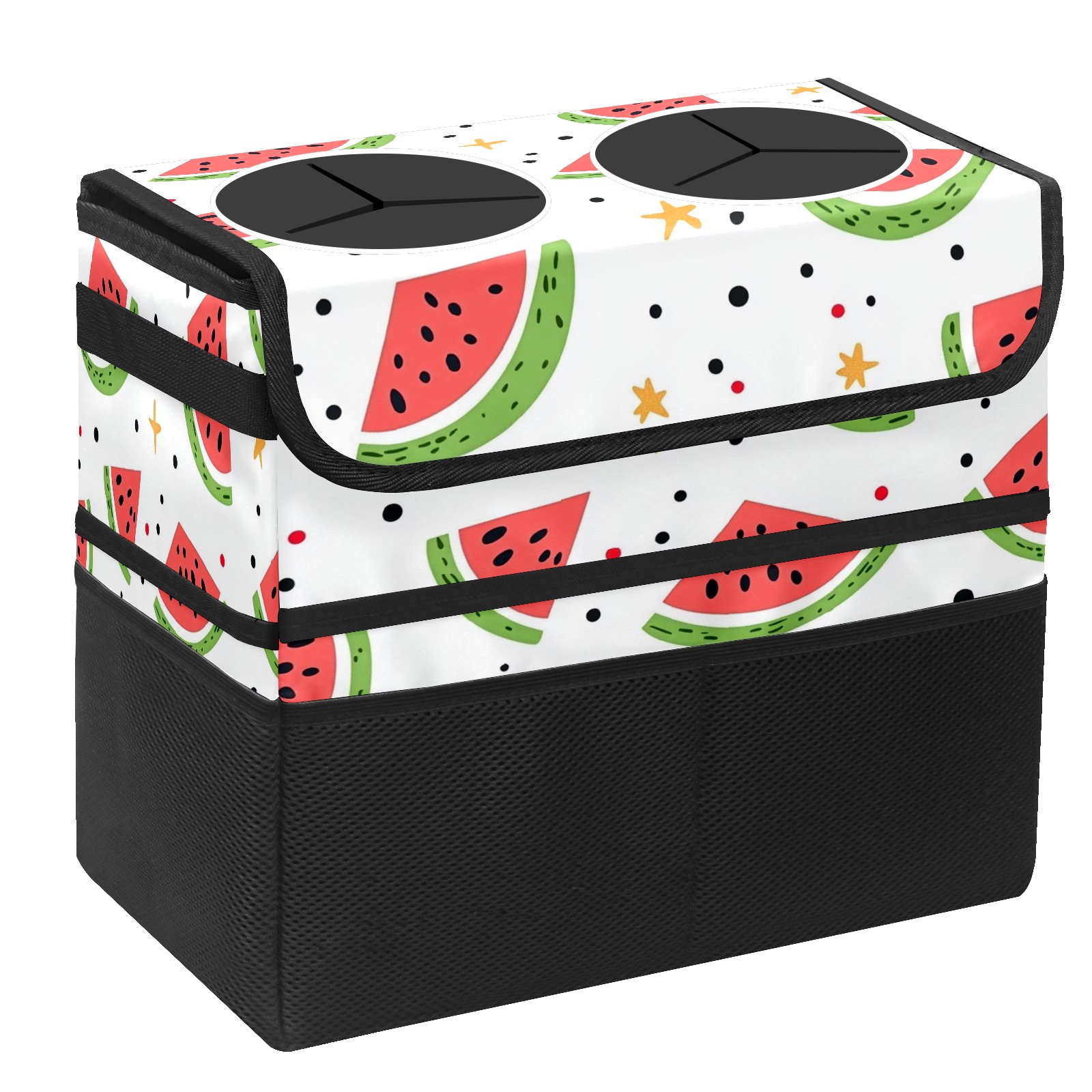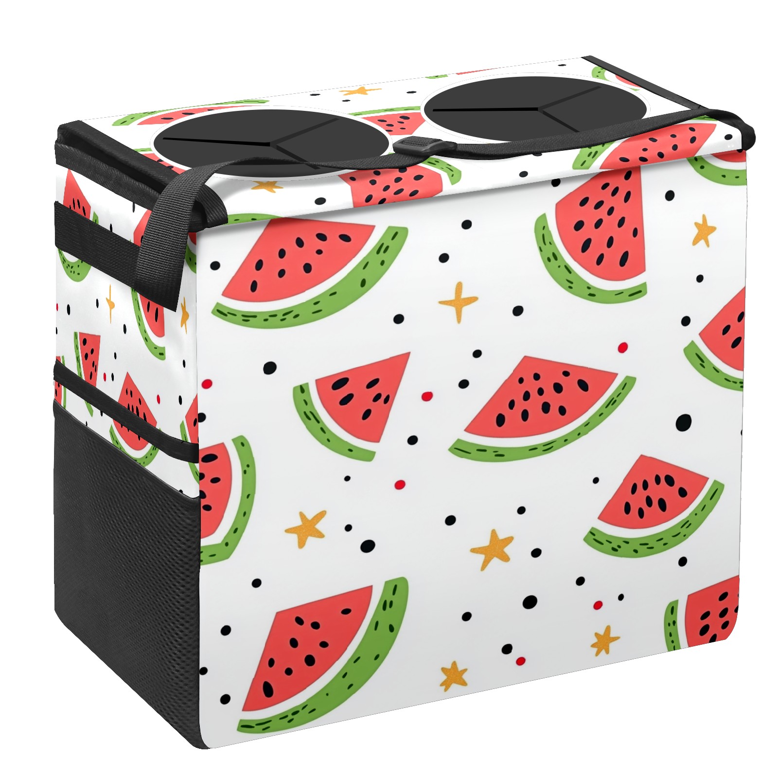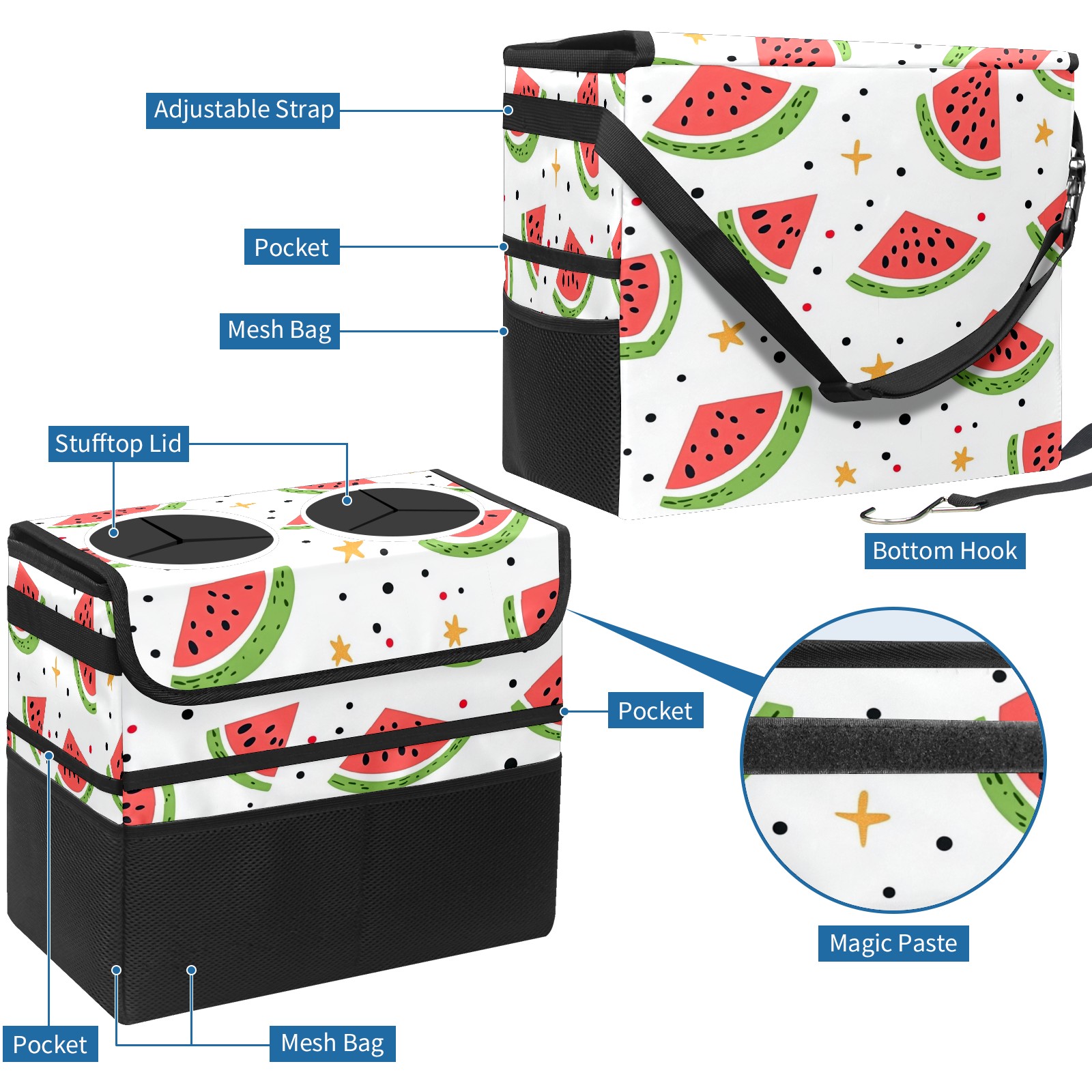 Car Trash Can with Lid, Portable Hanging Automotive Garbage Bin for Vehicles, Leakproof Waste Bag Container for SUV Truck Van Interior Auto Travel Road Trips(Cute Watermelon)