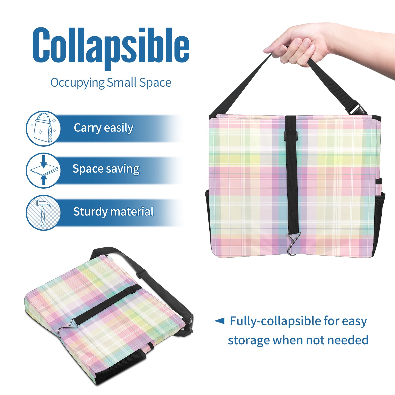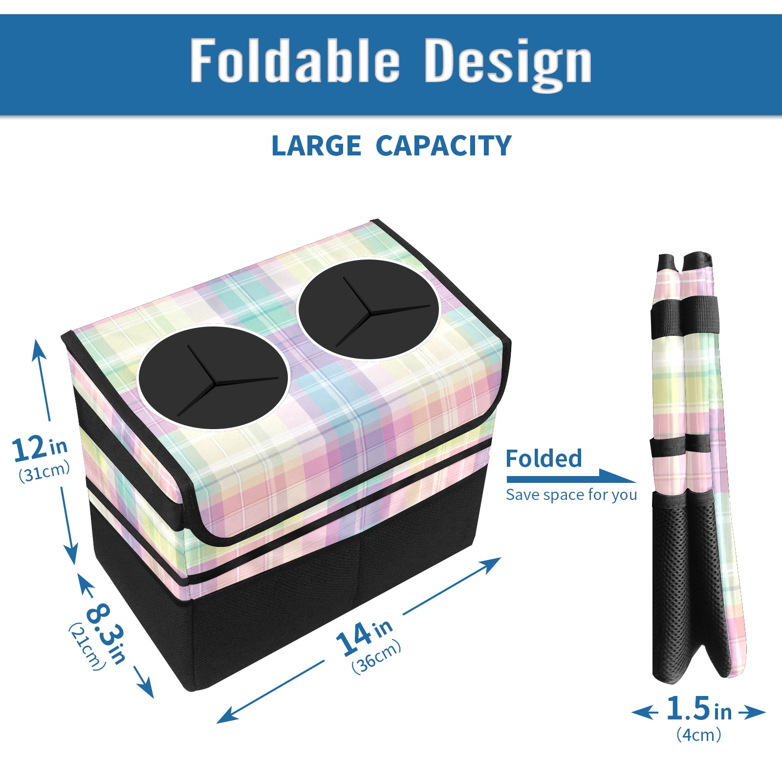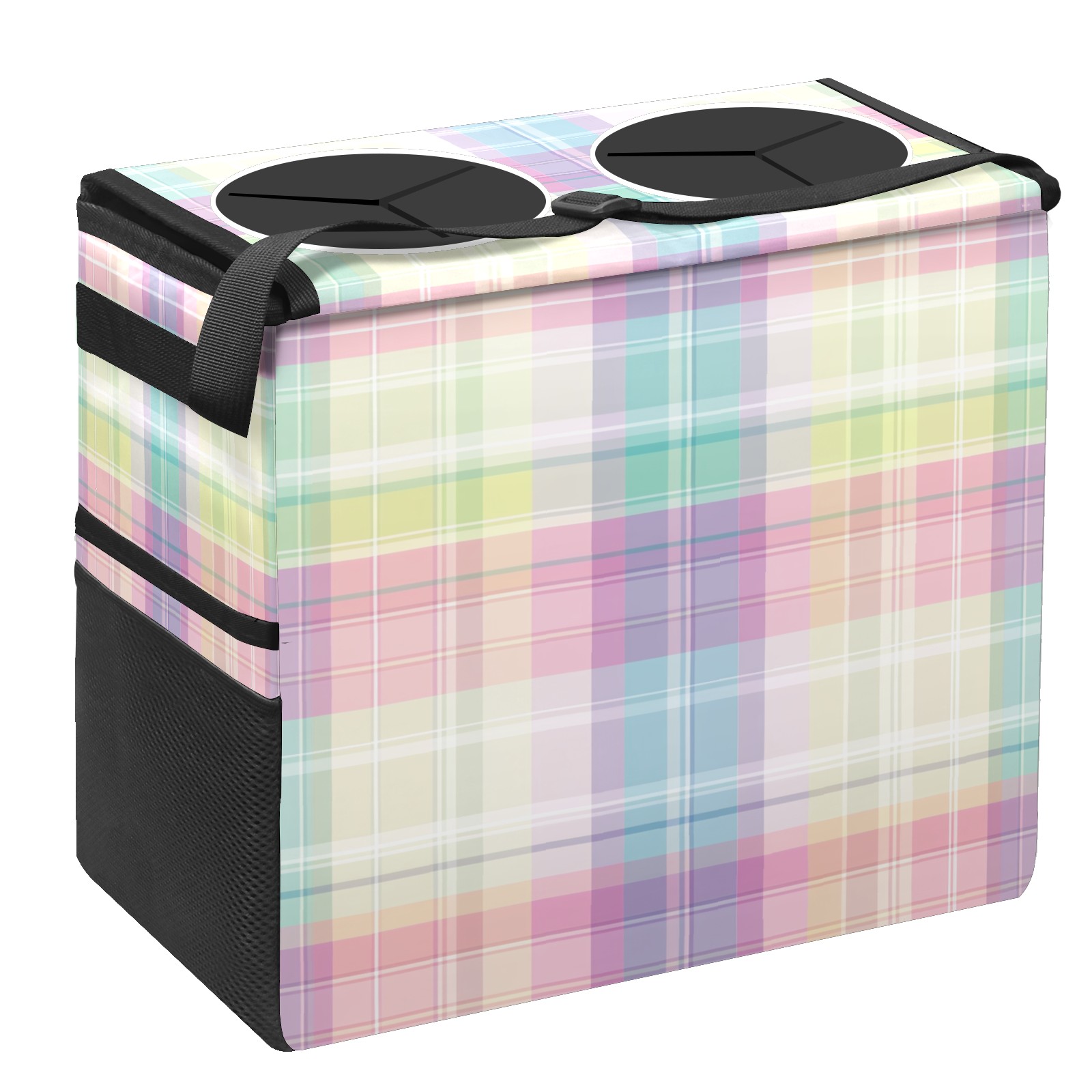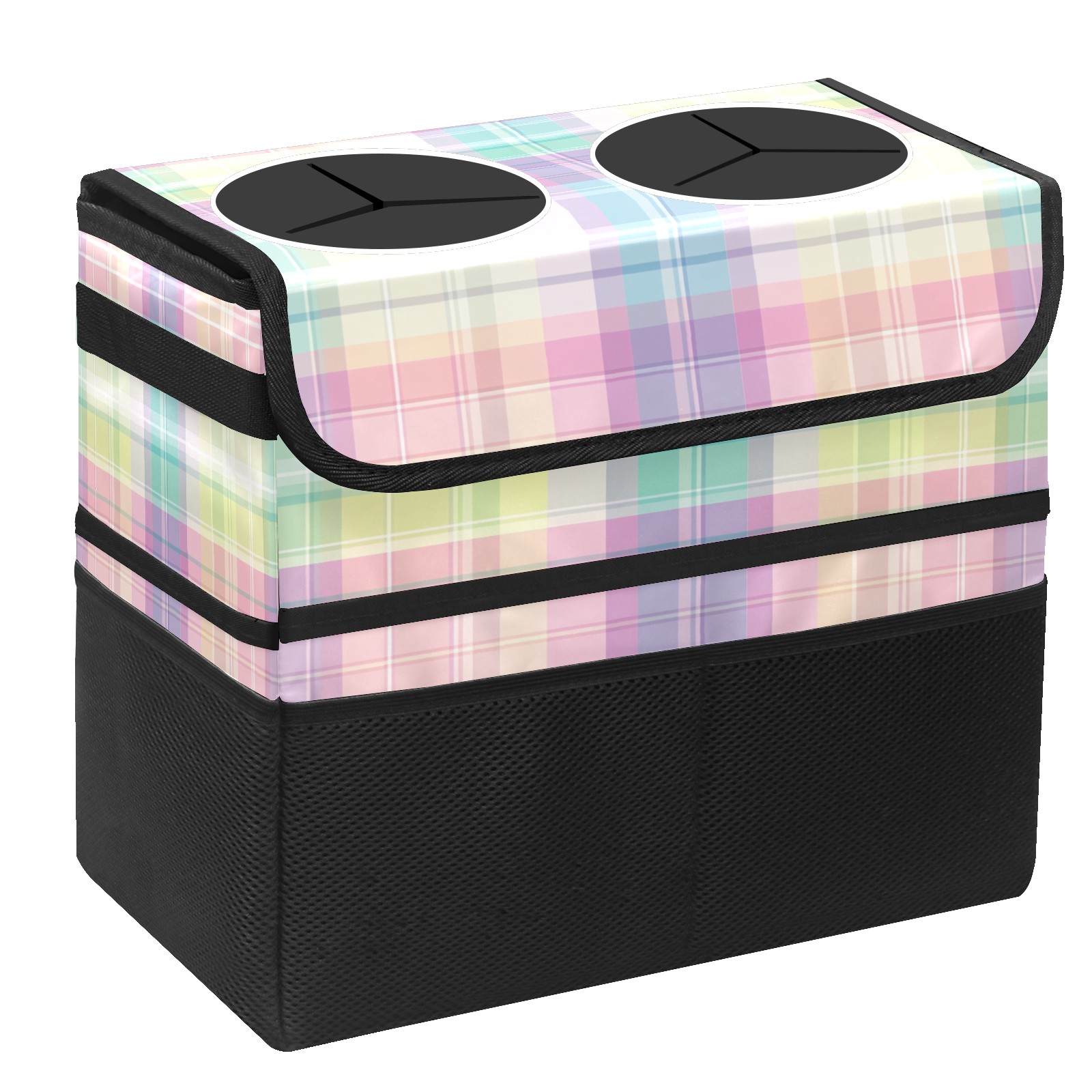 Car Trash Can with Lid, Portable Hanging Automotive Garbage Bin for Vehicles, Leakproof Waste Bag Container for SUV Truck Van Interior Auto Travel Road Trips(Colorful Gingham)