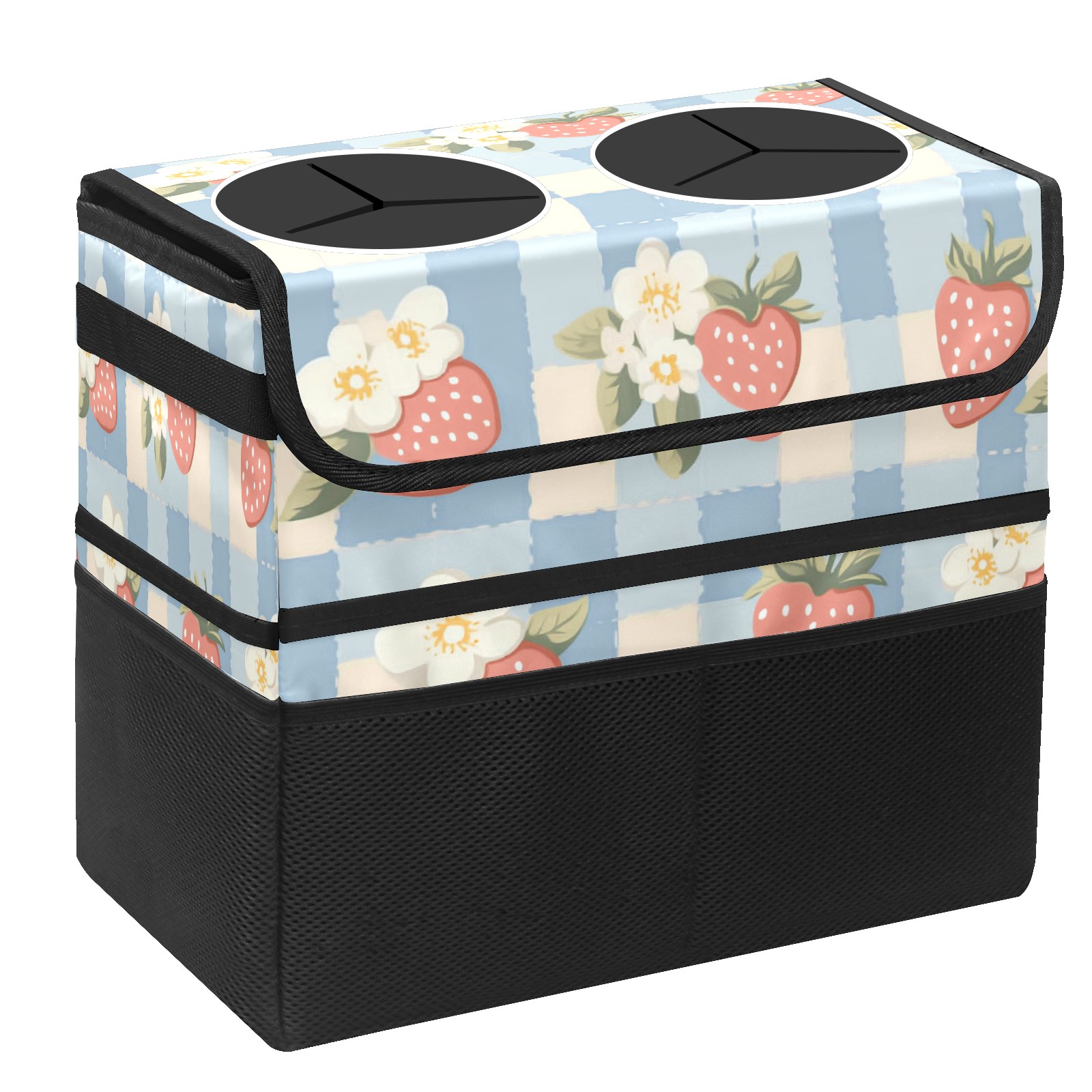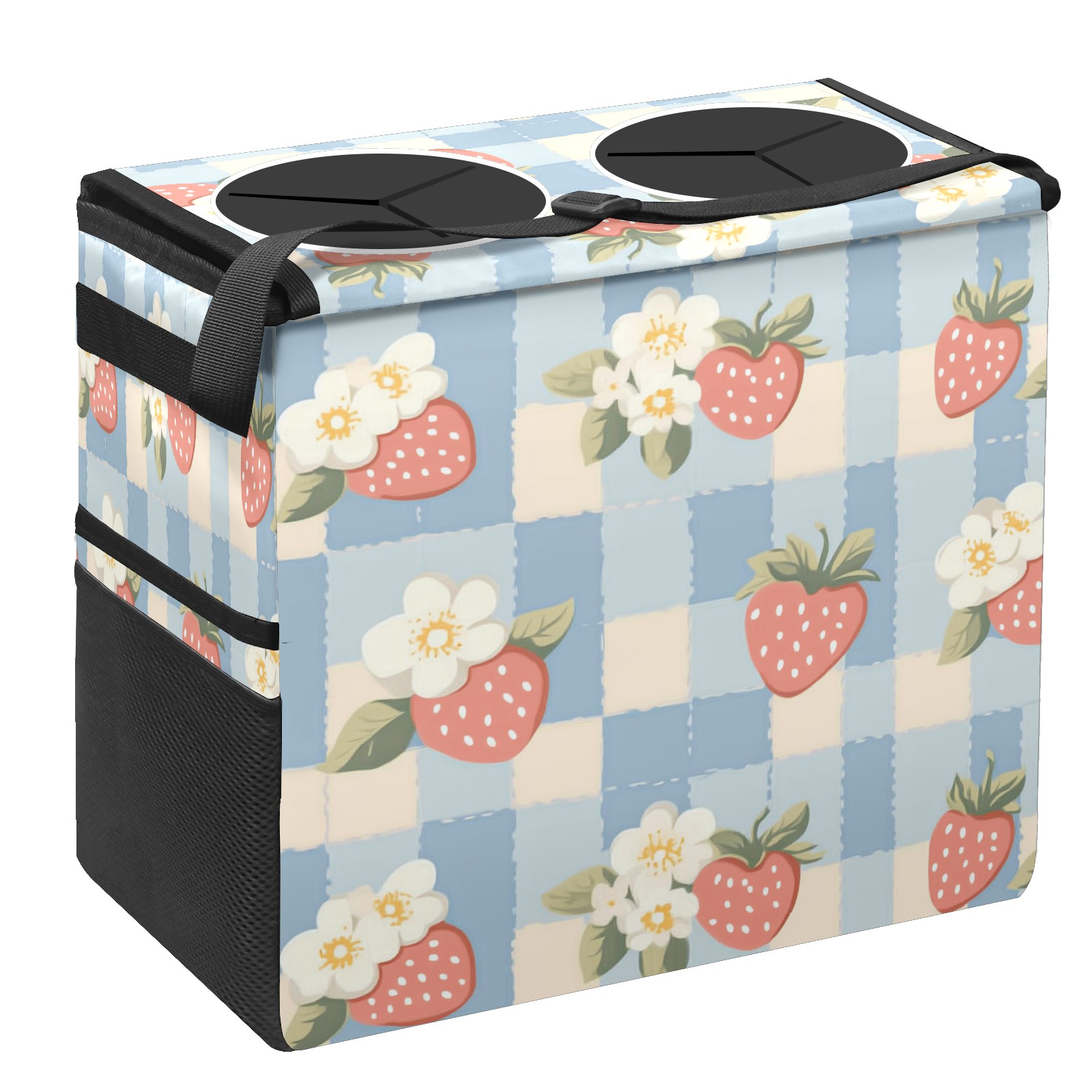 Car Trash Can with Lid, Portable Hanging Automotive Garbage Bin for Vehicles, Leakproof Waste Bag Container for SUV Truck Van Interior Auto Travel Road Trips(Pink Blue And Cream Gingham)