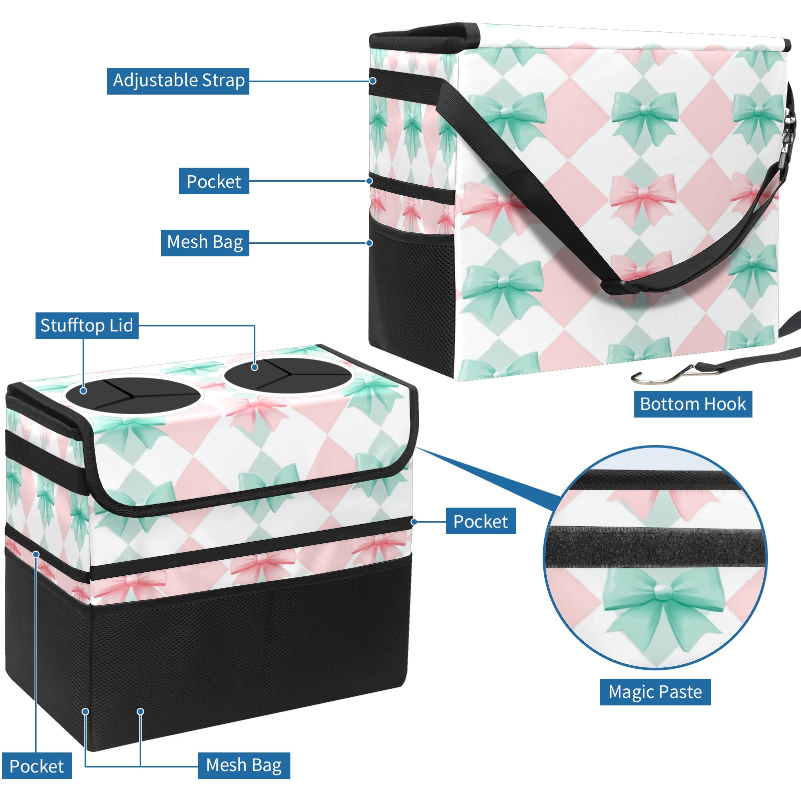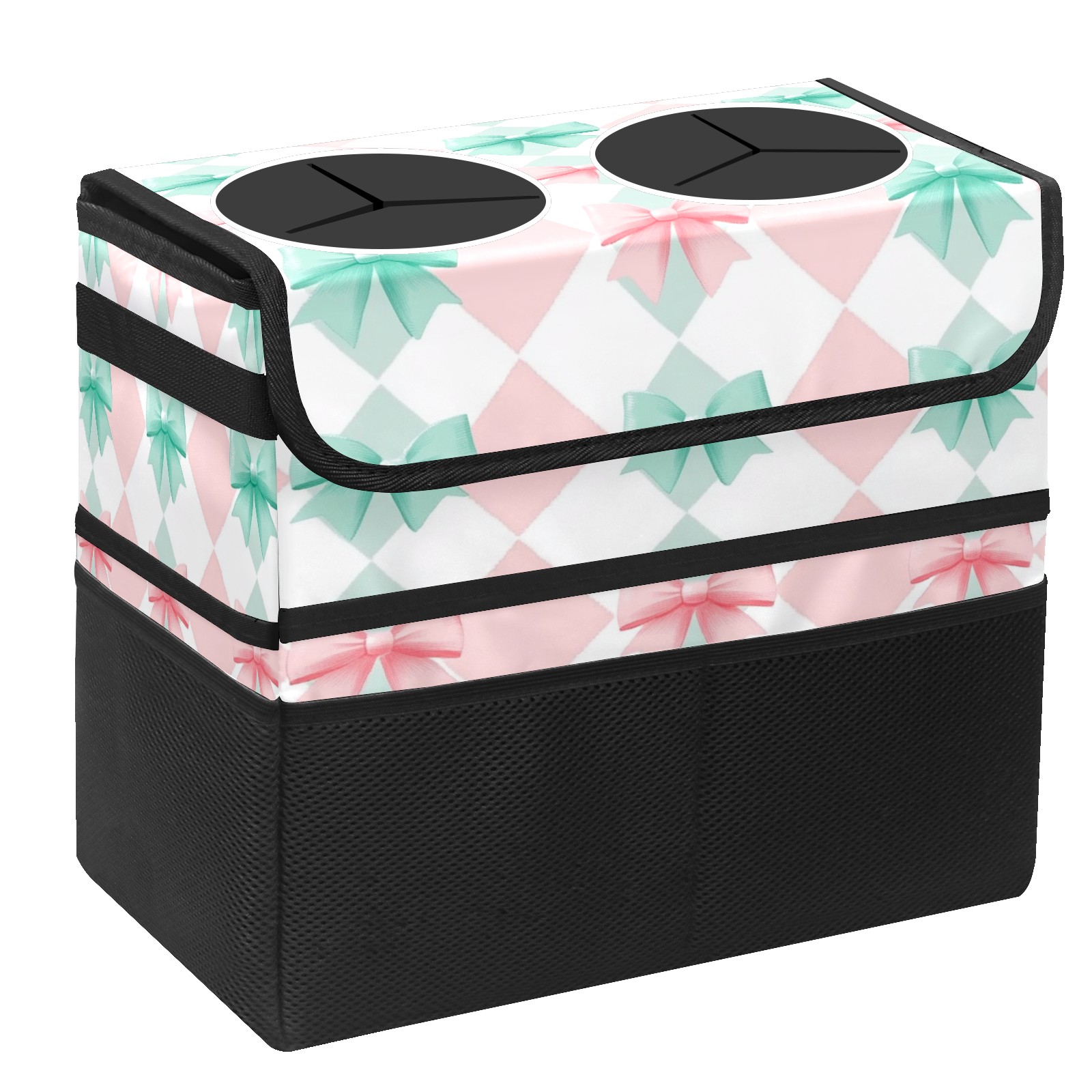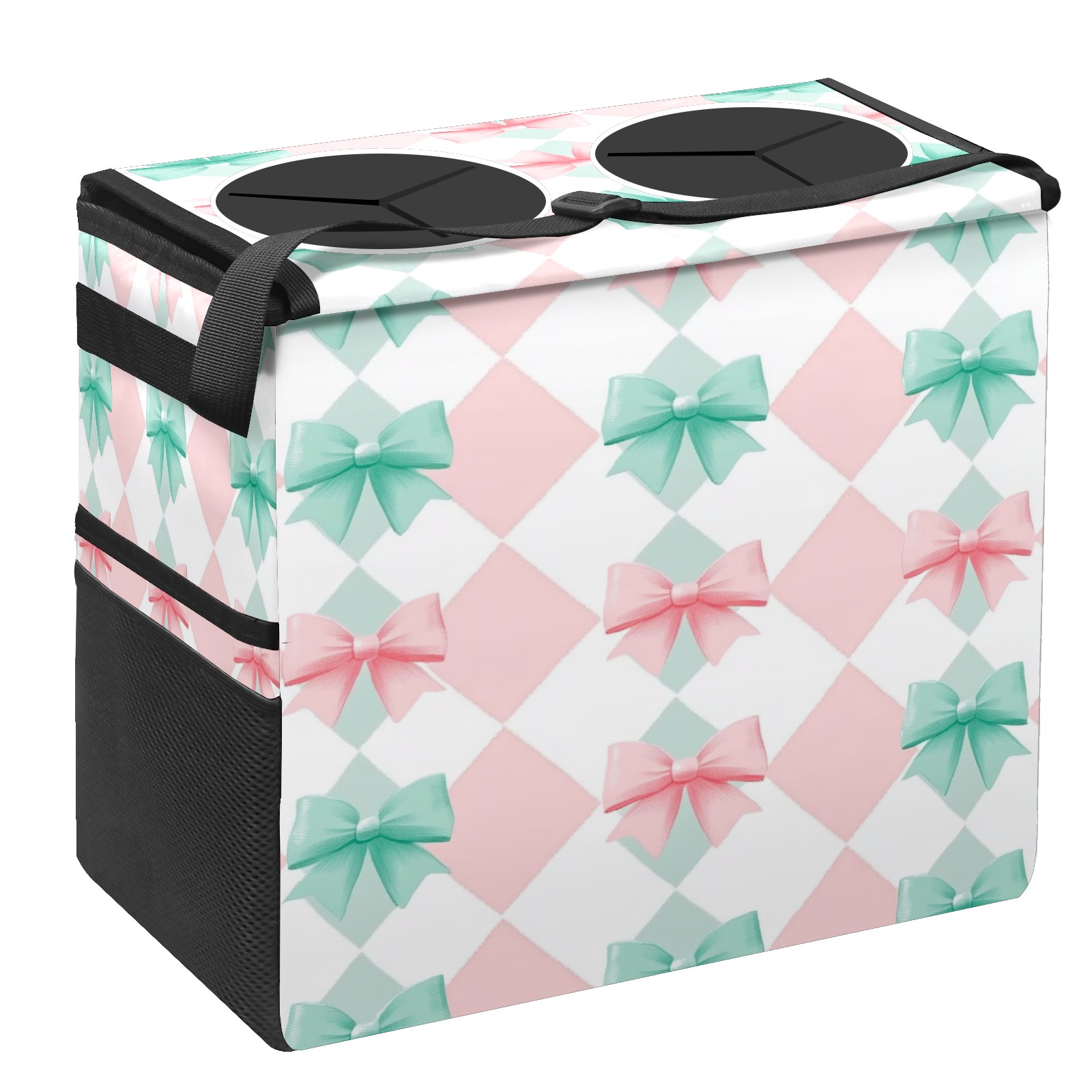 Car Trash Can with Lid, Portable Hanging Automotive Garbage Bin for Vehicles, Leakproof Waste Bag Container for SUV Truck Van Interior Auto Travel Road Trips(Pink And Mint Gingham)