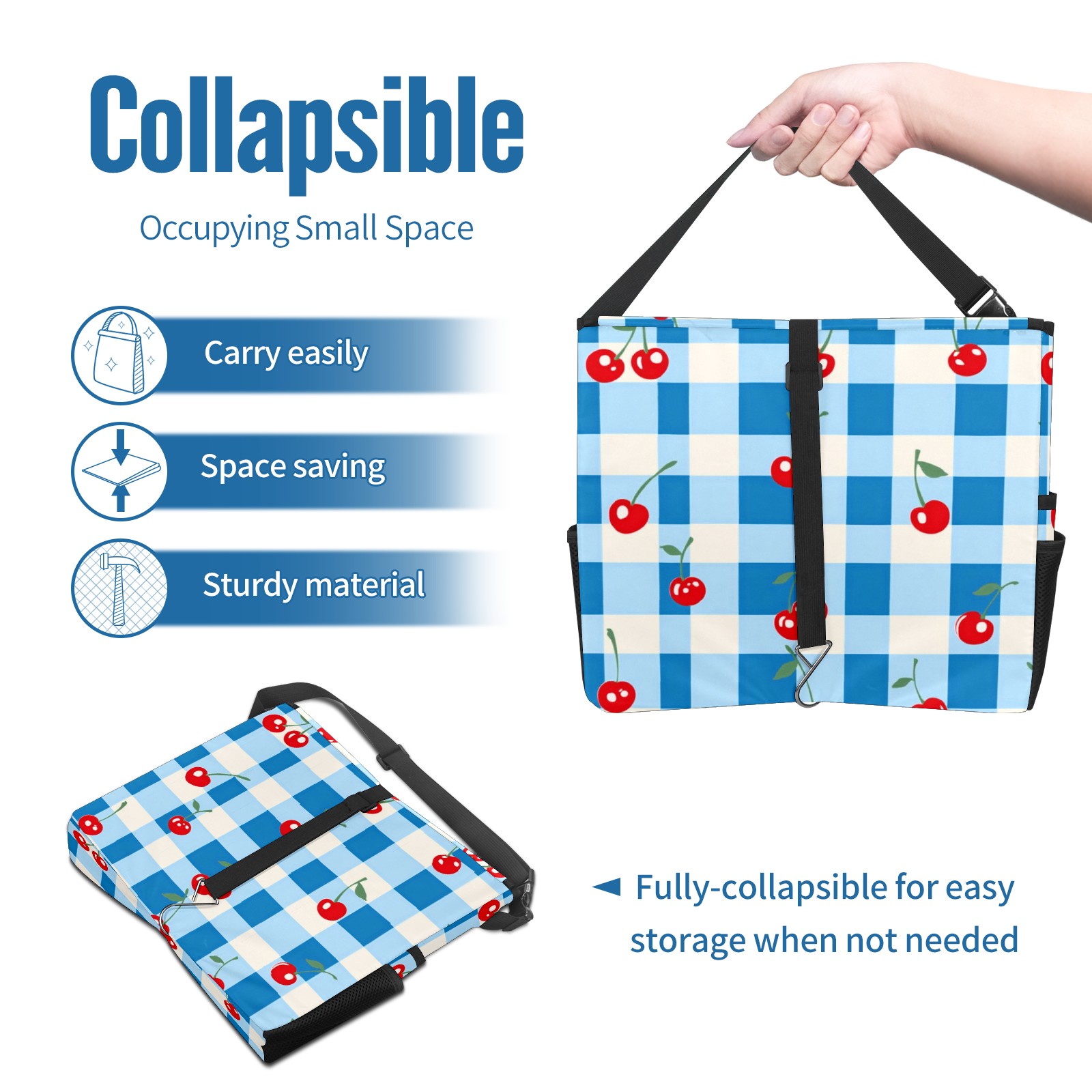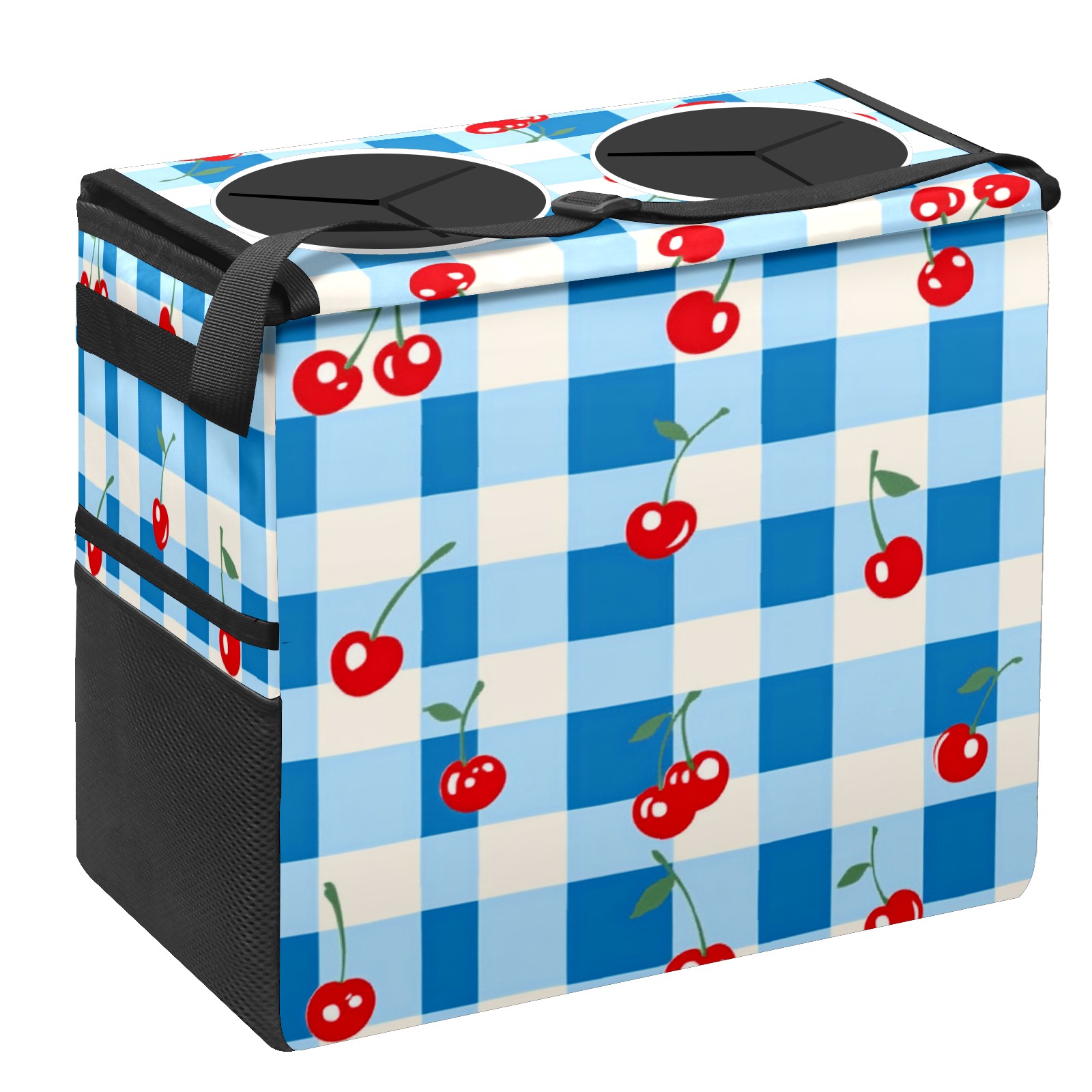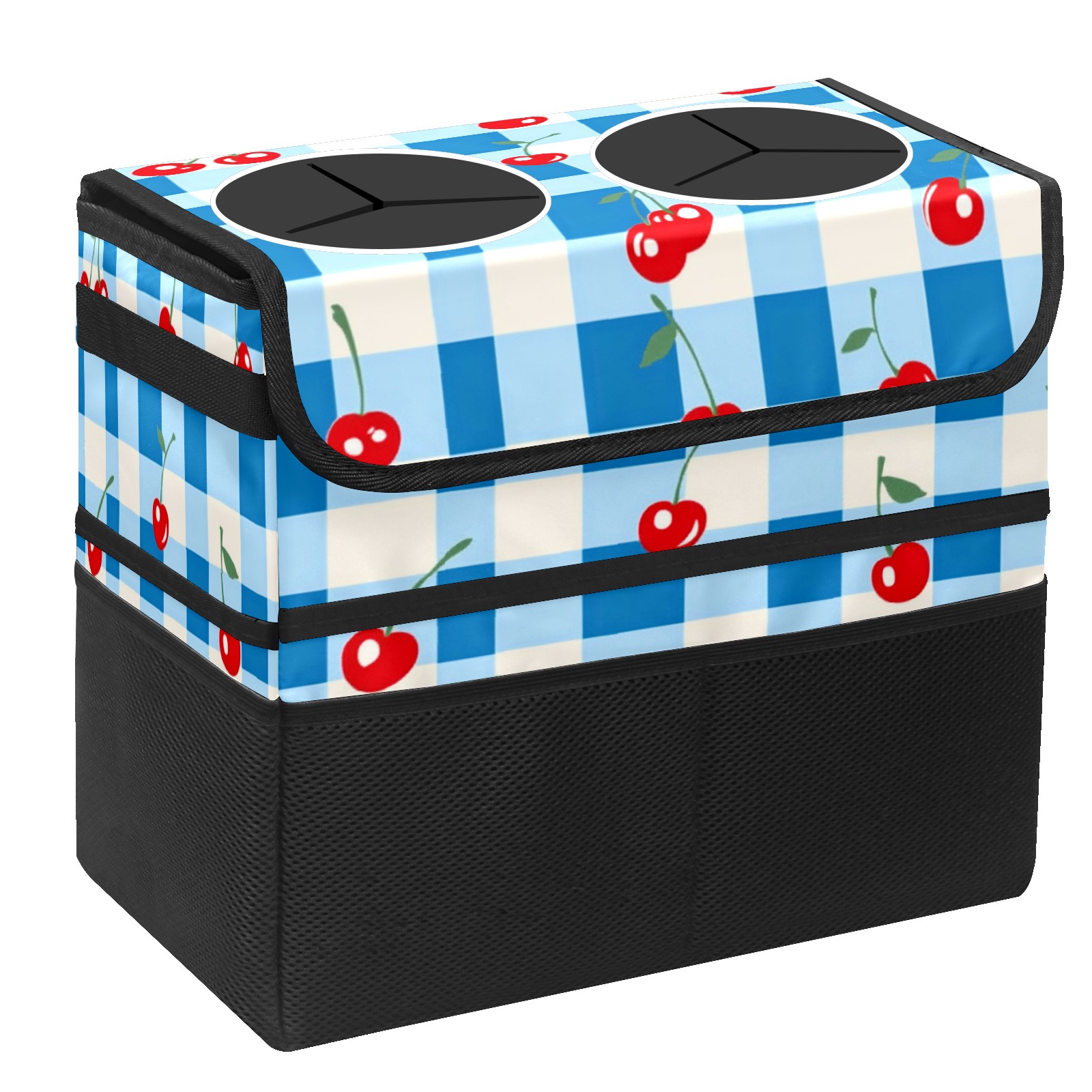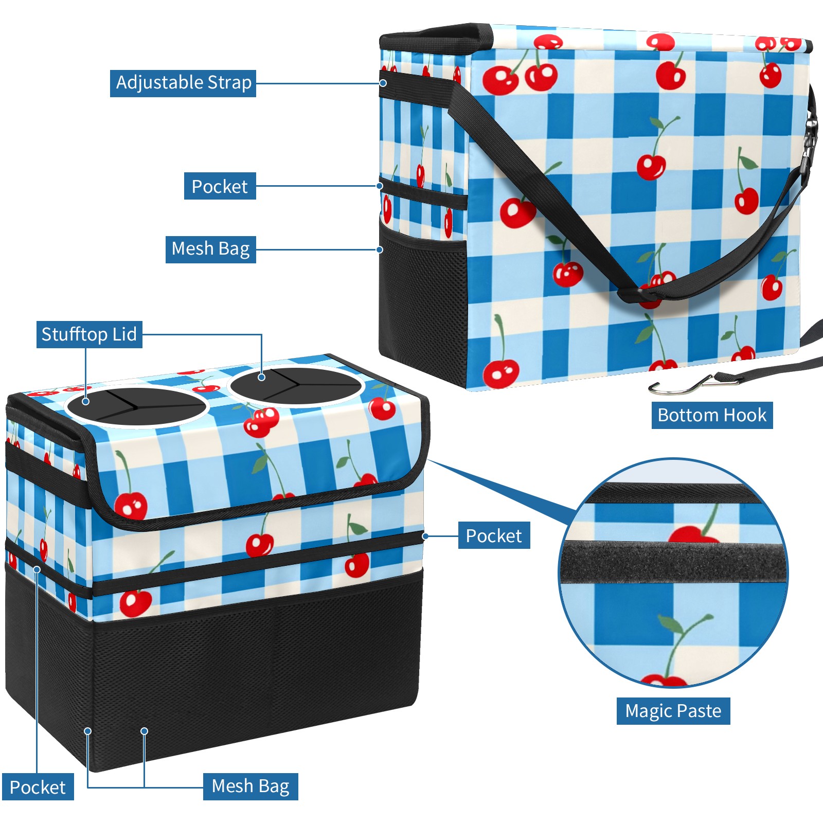 Car Trash Can with Lid, Portable Hanging Automotive Garbage Bin for Vehicles, Leakproof Waste Bag Container for SUV Truck Van Interior Auto Travel Road Trips(Blue White Gingham)