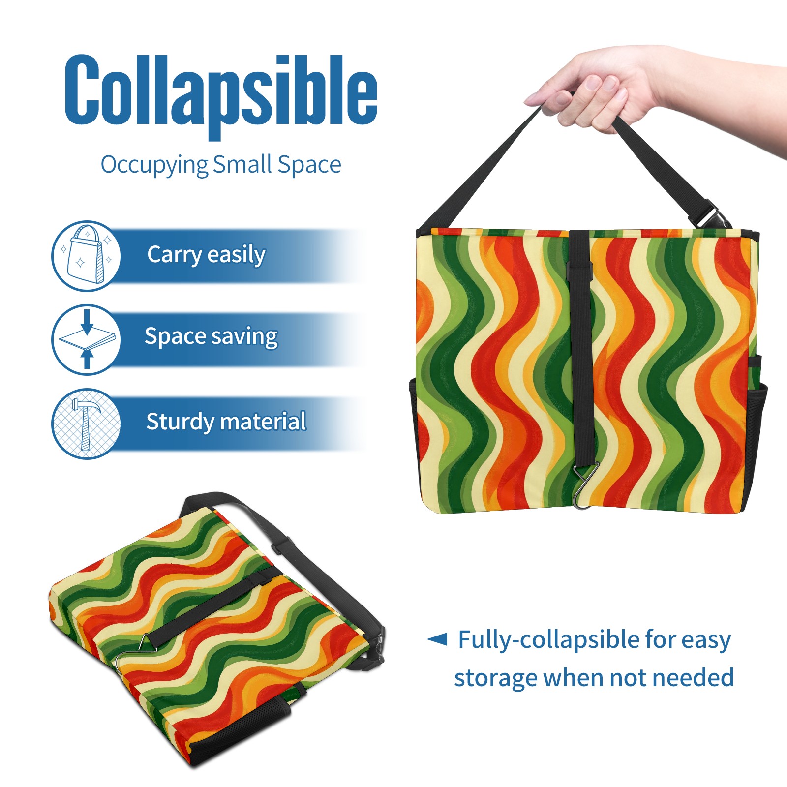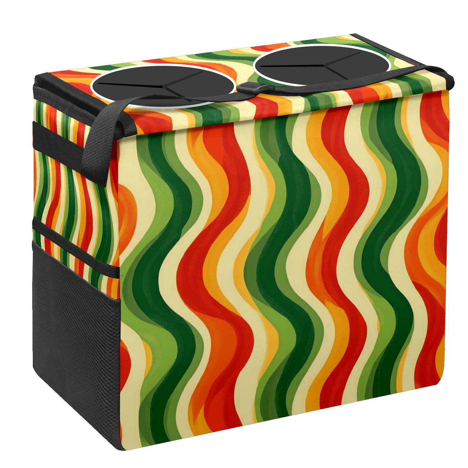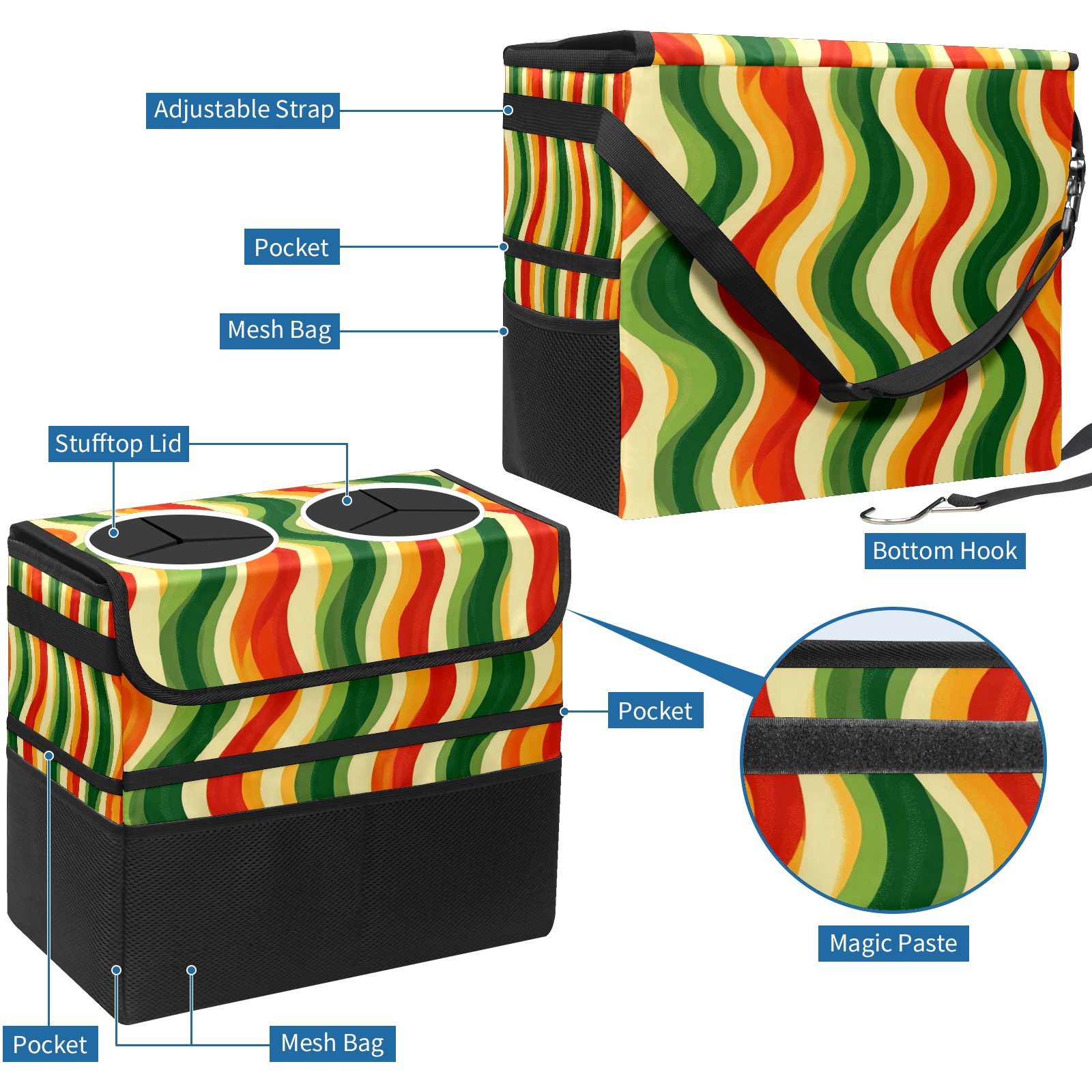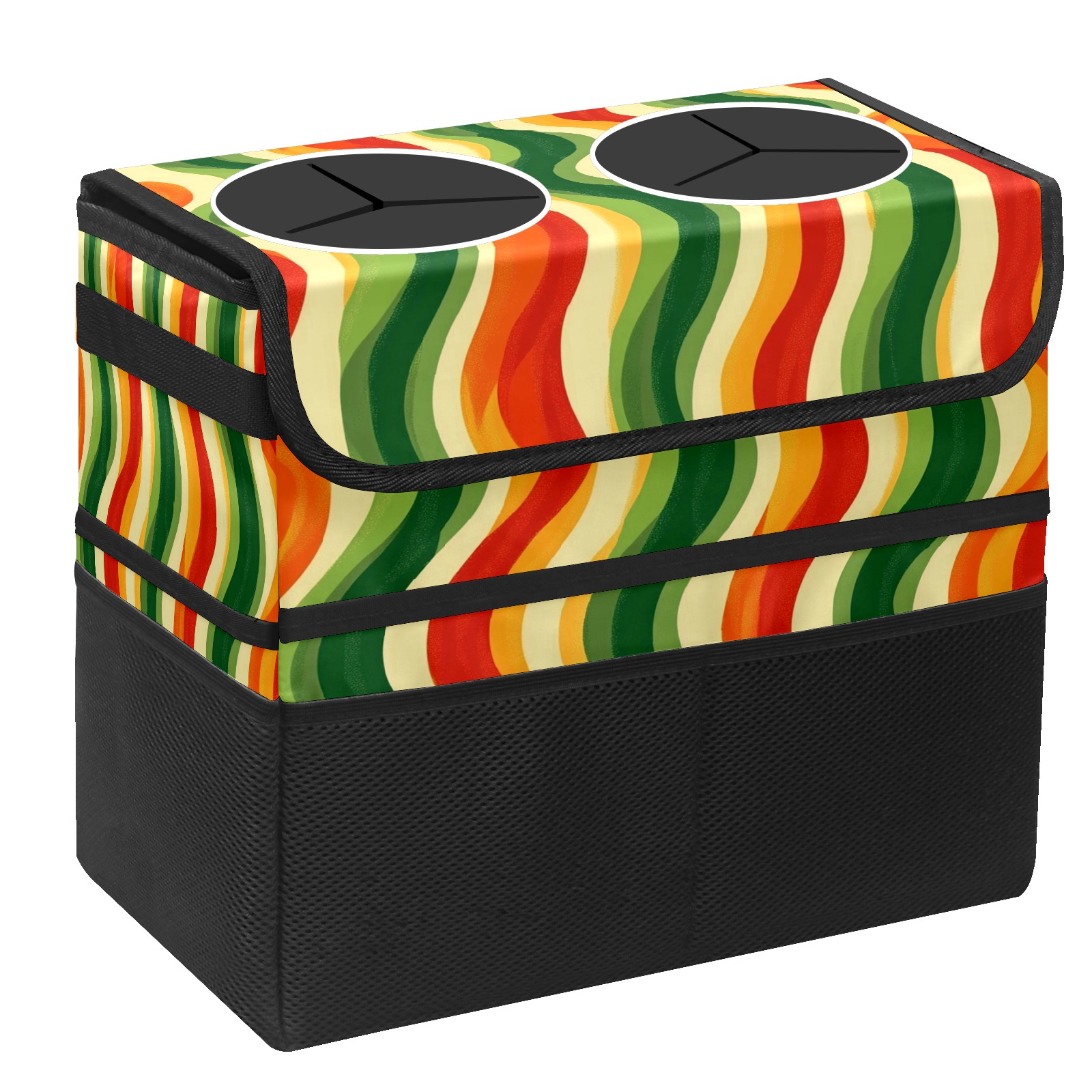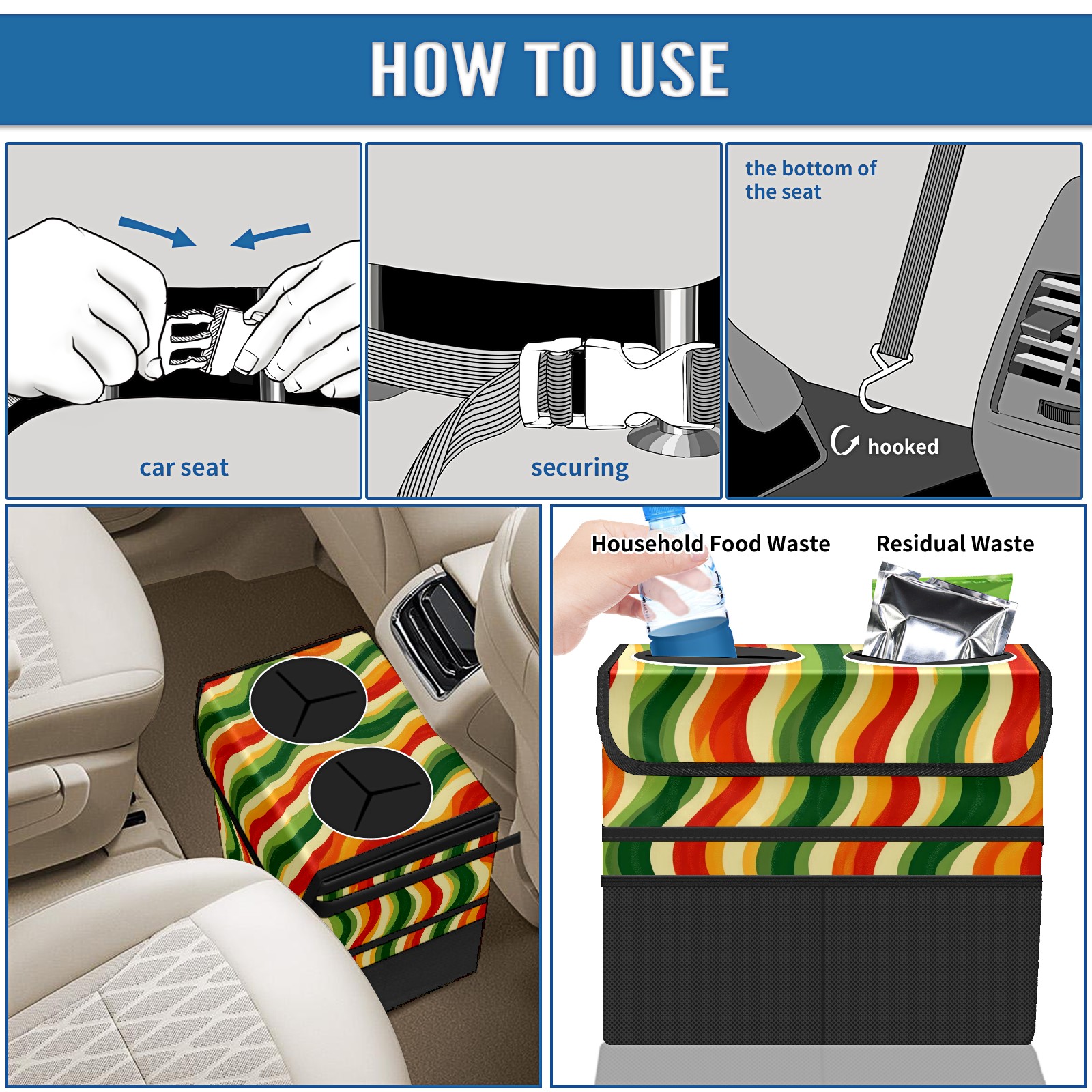 Car Trash Can with Lid, Portable Hanging Automotive Garbage Bin for Vehicles, Leakproof Waste Bag Container for SUV Truck Van Interior Auto Travel Road Trips(Retro Wavy Stripes)