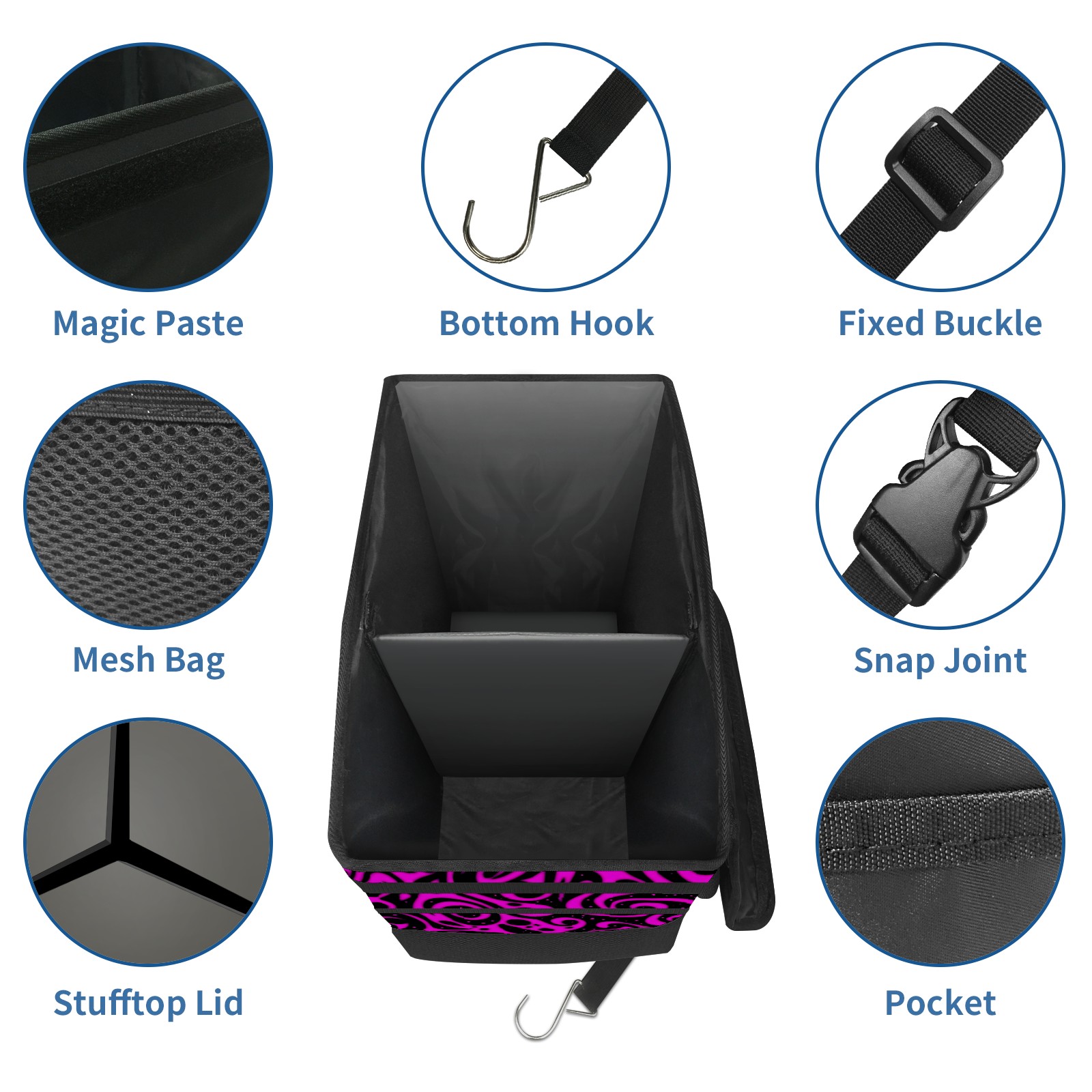 Car Trash Can with Lid, Portable Hanging Automotive Garbage Bin for Vehicles, Leakproof Waste Bag Container for SUV Truck Van Interior Auto Travel Road Trips(Tribal Design)