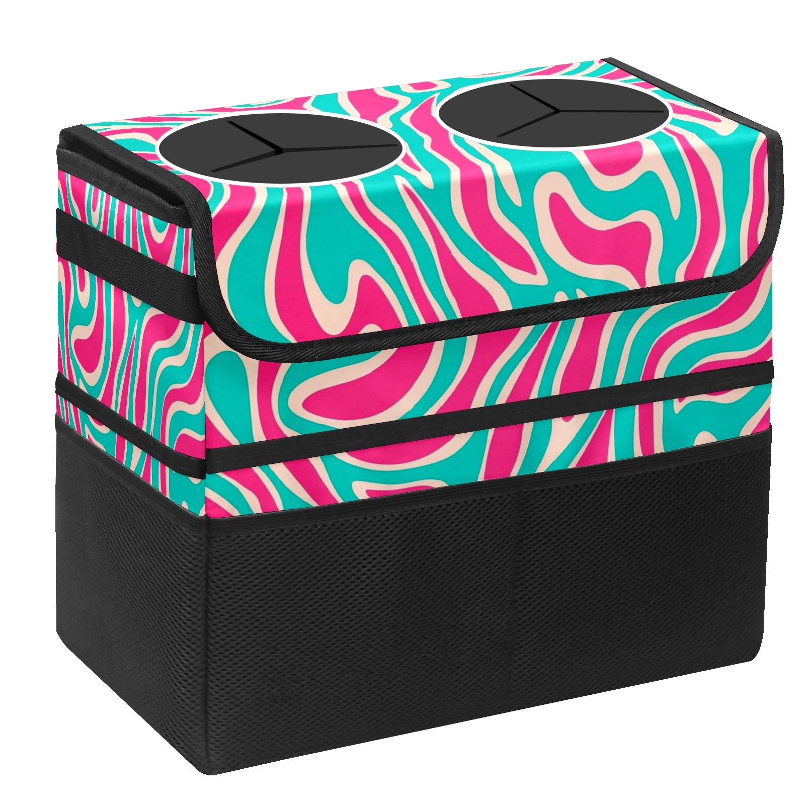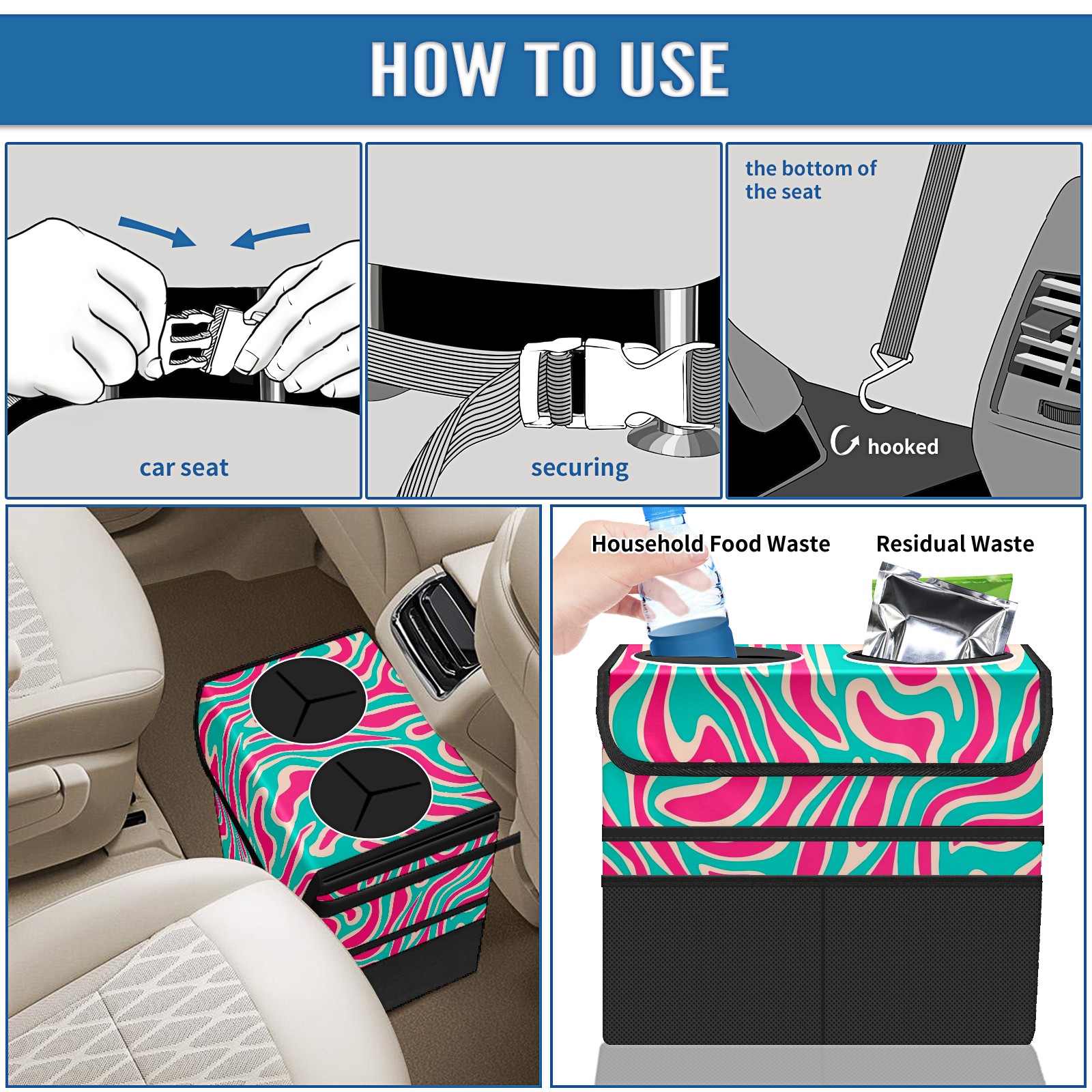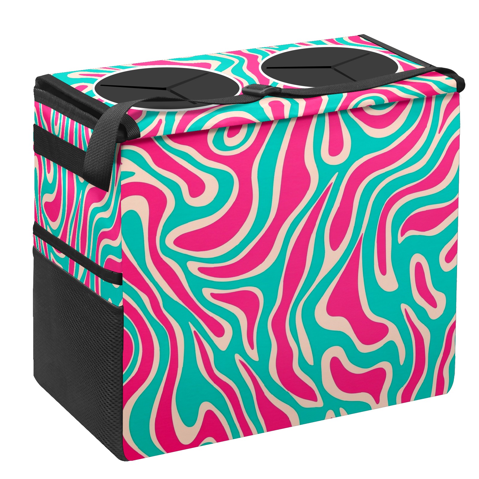 Car Trash Can with Lid, Portable Hanging Automotive Garbage Bin for Vehicles, Leakproof Waste Bag Container for SUV Truck Van Interior Auto Travel Road Trips(Pink And Turquoise Lines)