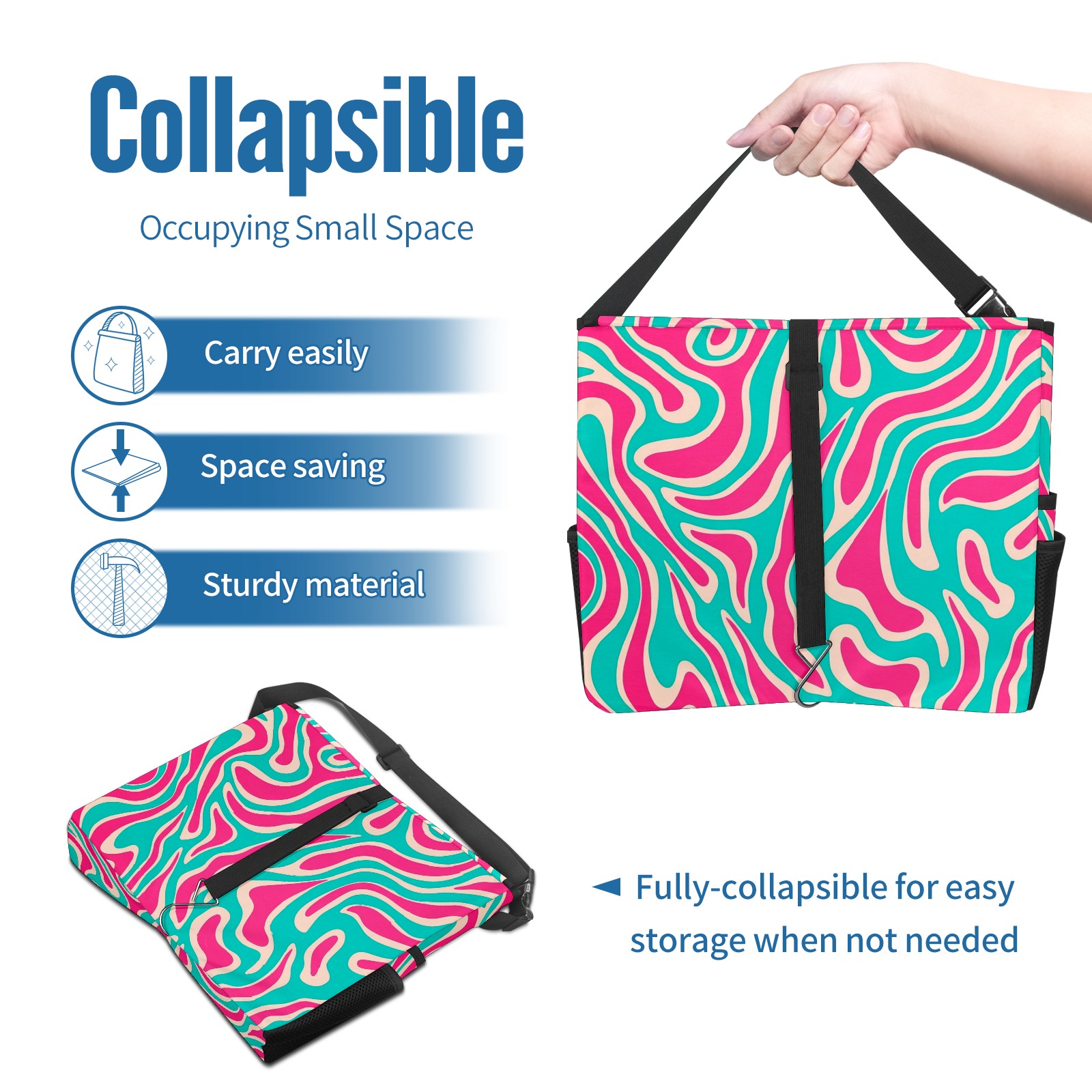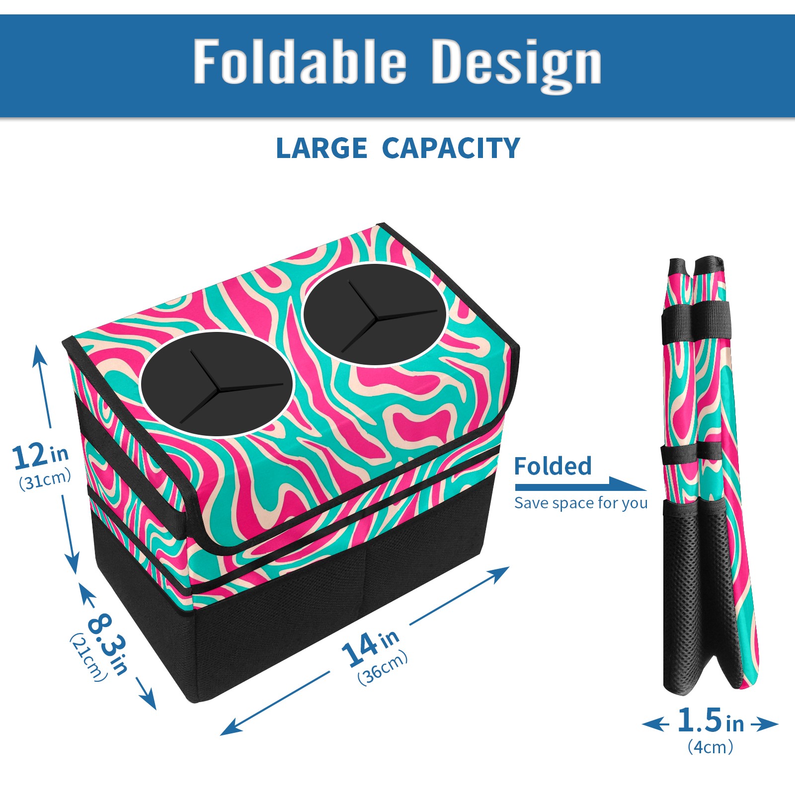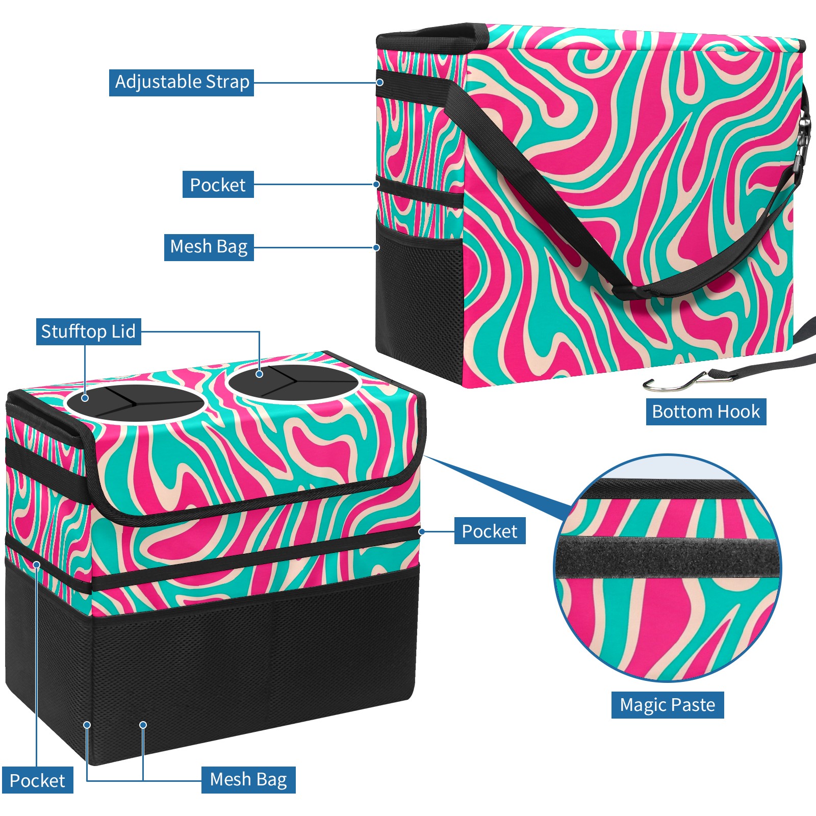 Car Trash Can with Lid, Portable Hanging Automotive Garbage Bin for Vehicles, Leakproof Waste Bag Container for SUV Truck Van Interior Auto Travel Road Trips(Pink And Turquoise Lines)