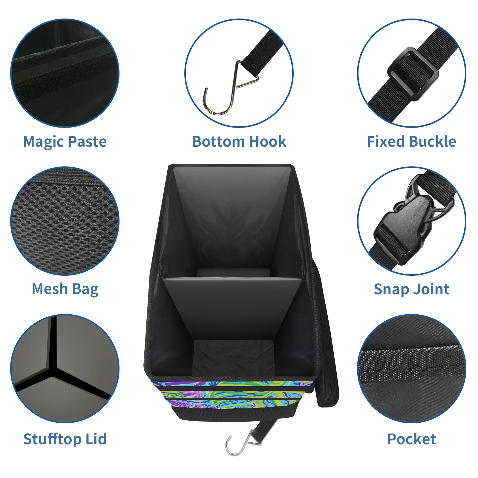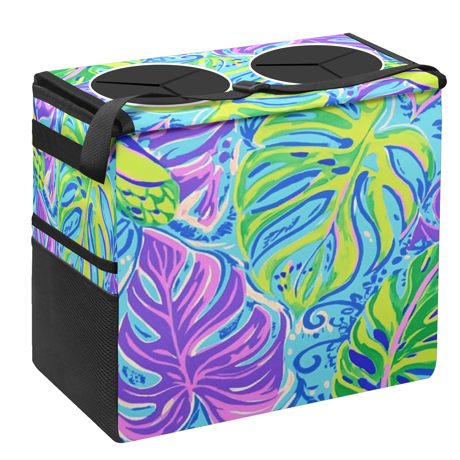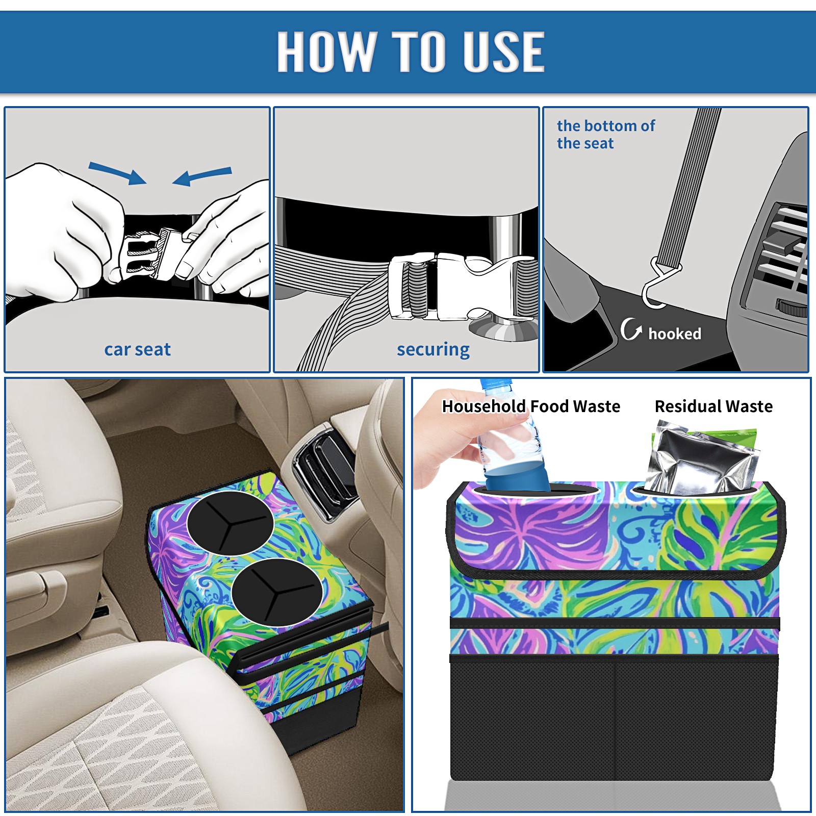 Car Trash Can with Lid, Portable Hanging Automotive Garbage Bin for Vehicles, Leakproof Waste Bag Container for SUV Truck Van Interior Auto Travel Road Trips(Lilly Pulitzer Print)