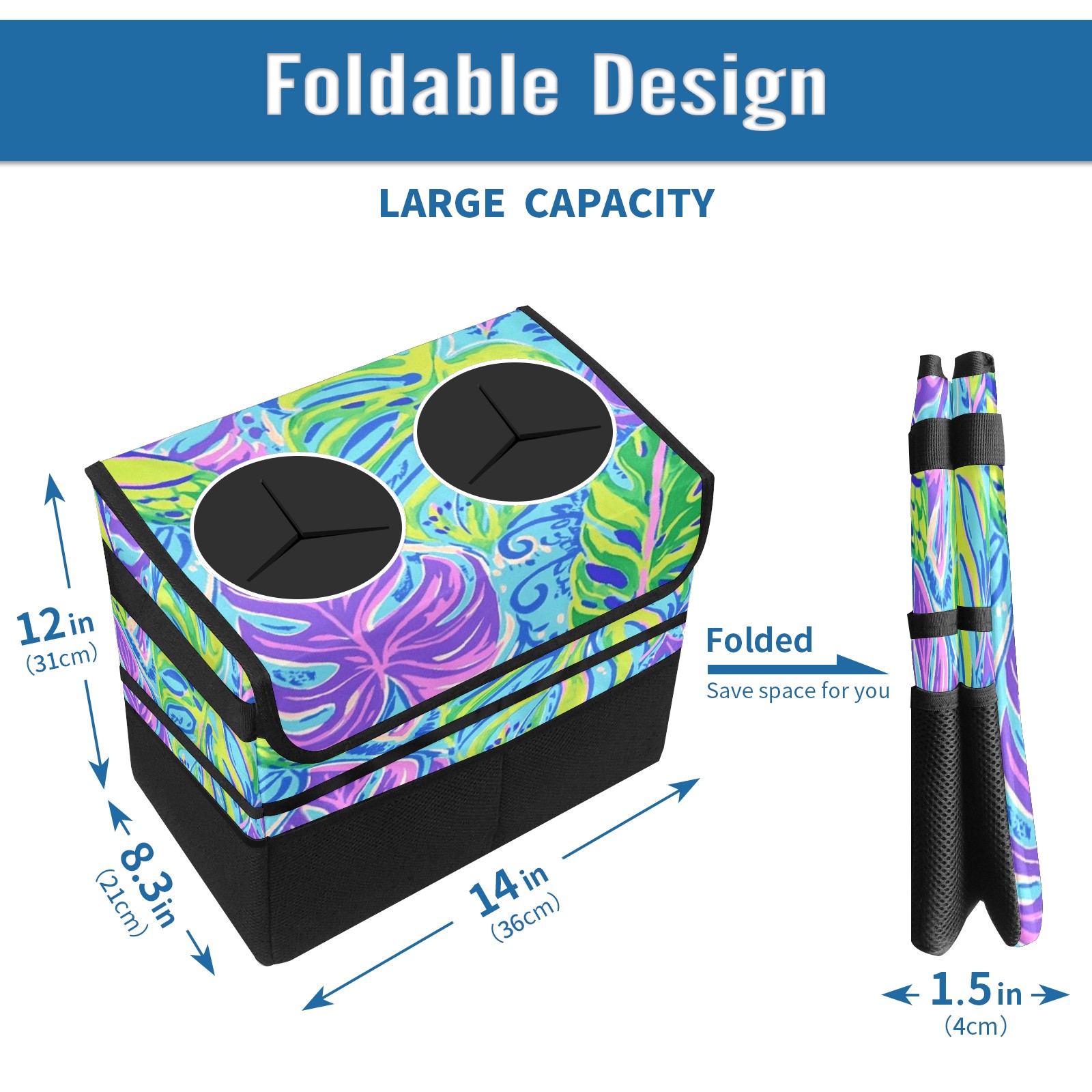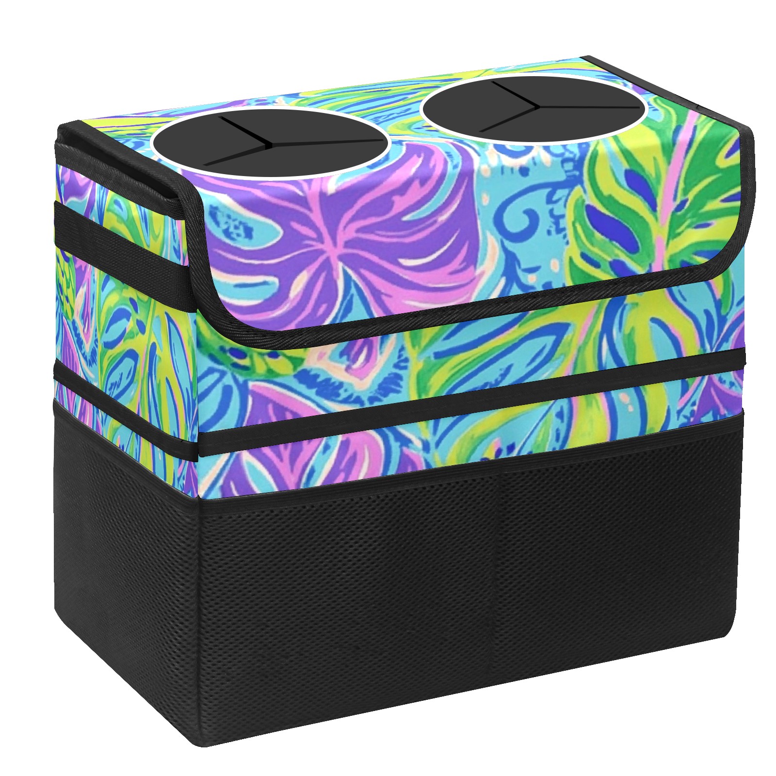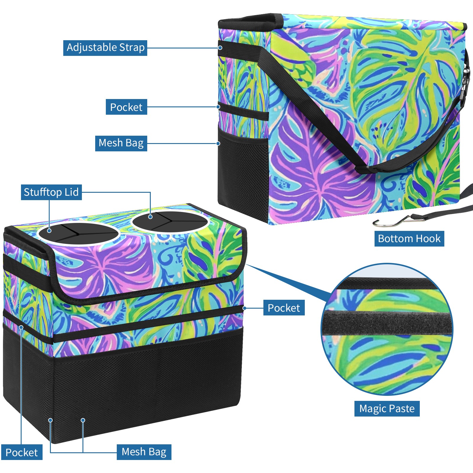 Car Trash Can with Lid, Portable Hanging Automotive Garbage Bin for Vehicles, Leakproof Waste Bag Container for SUV Truck Van Interior Auto Travel Road Trips(Lilly Pulitzer Print)