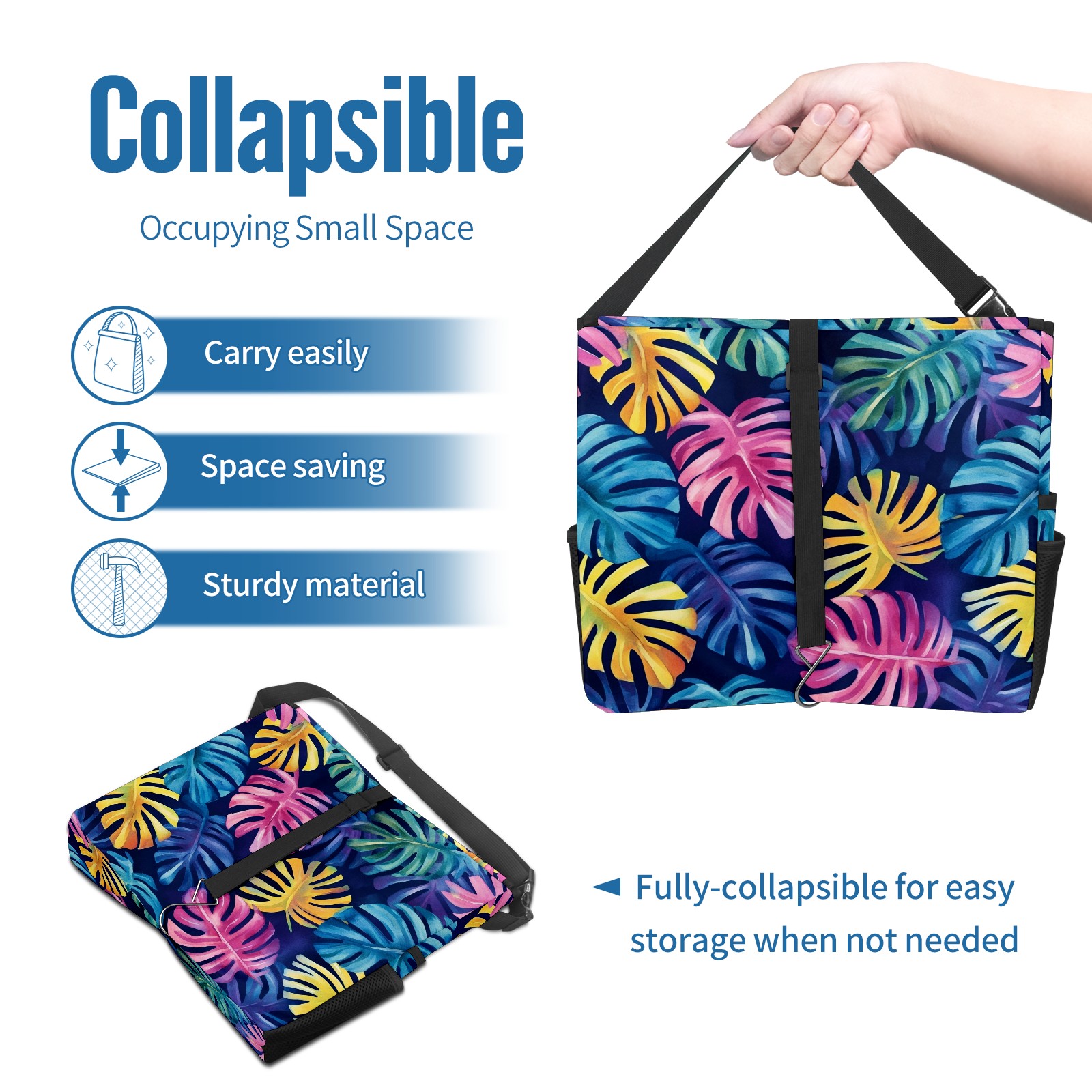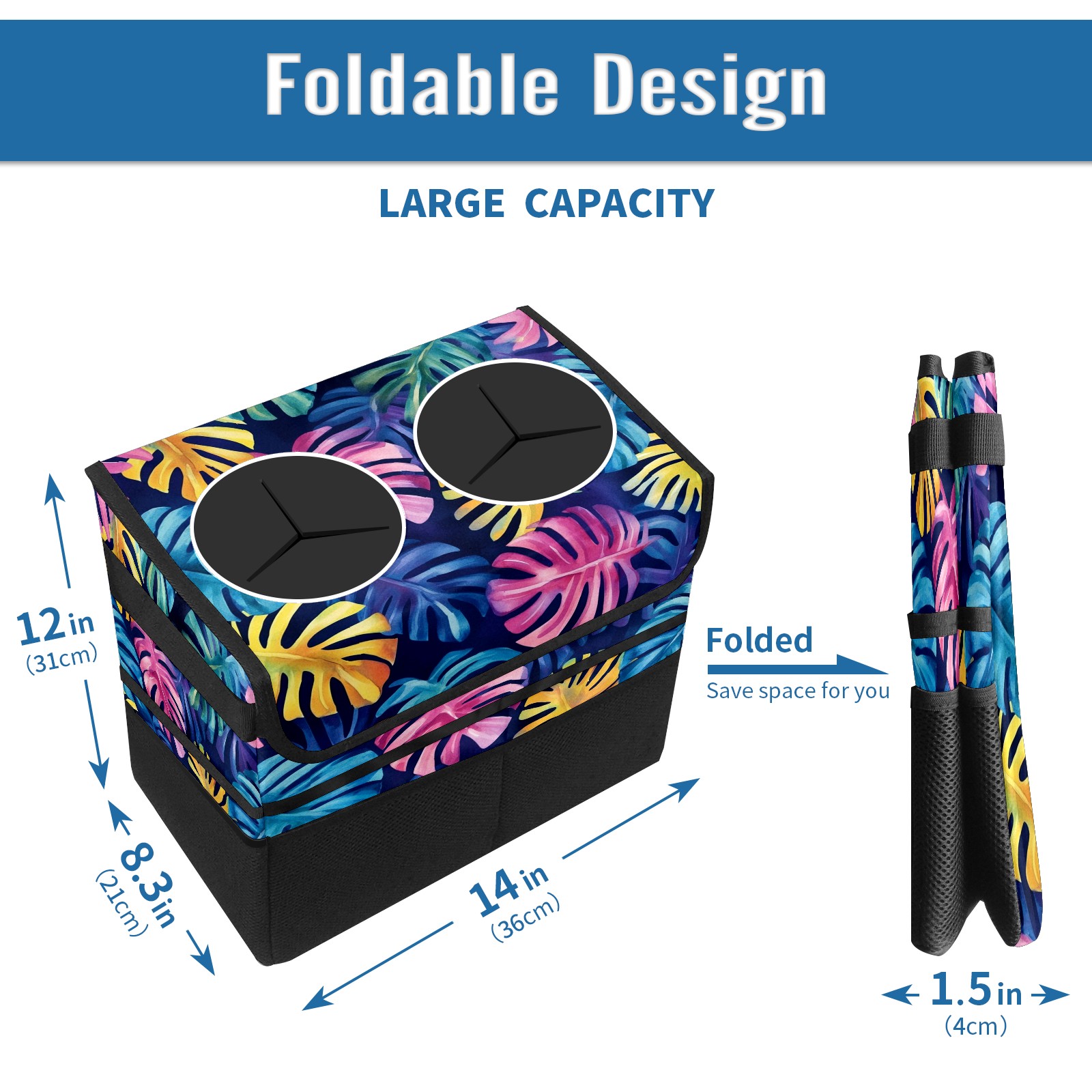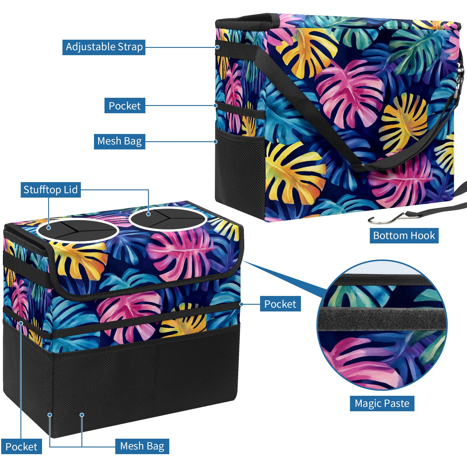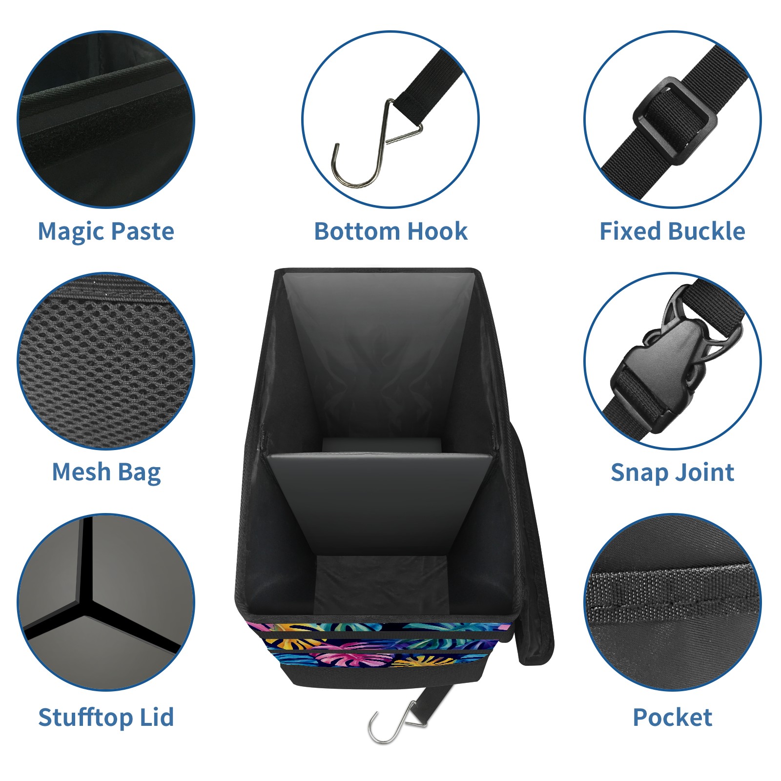 Car Trash Can with Lid, Portable Hanging Automotive Garbage Bin for Vehicles, Leakproof Waste Bag Container for SUV Truck Van Interior Auto Travel Road Trips(Watercolor Tropical Leaves)