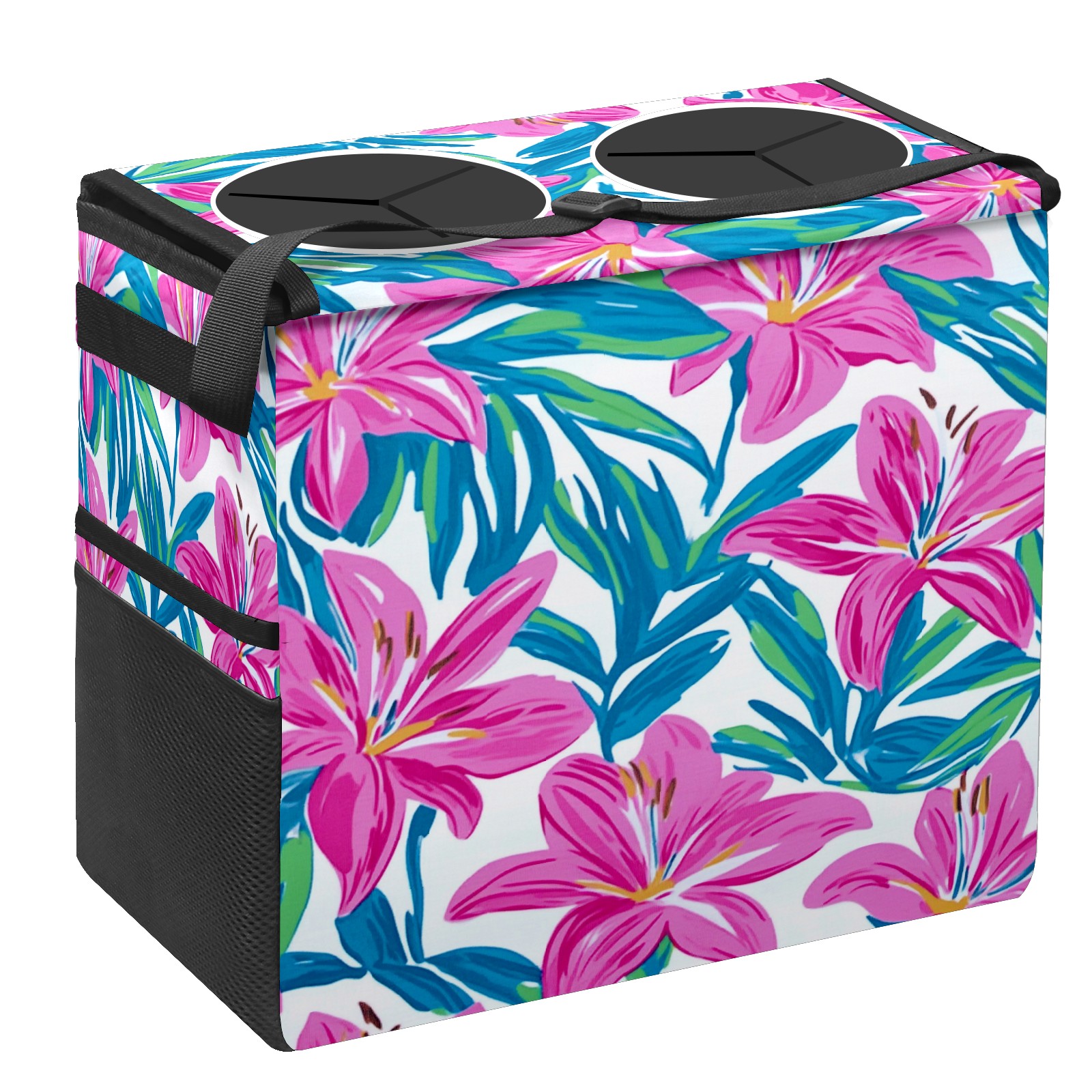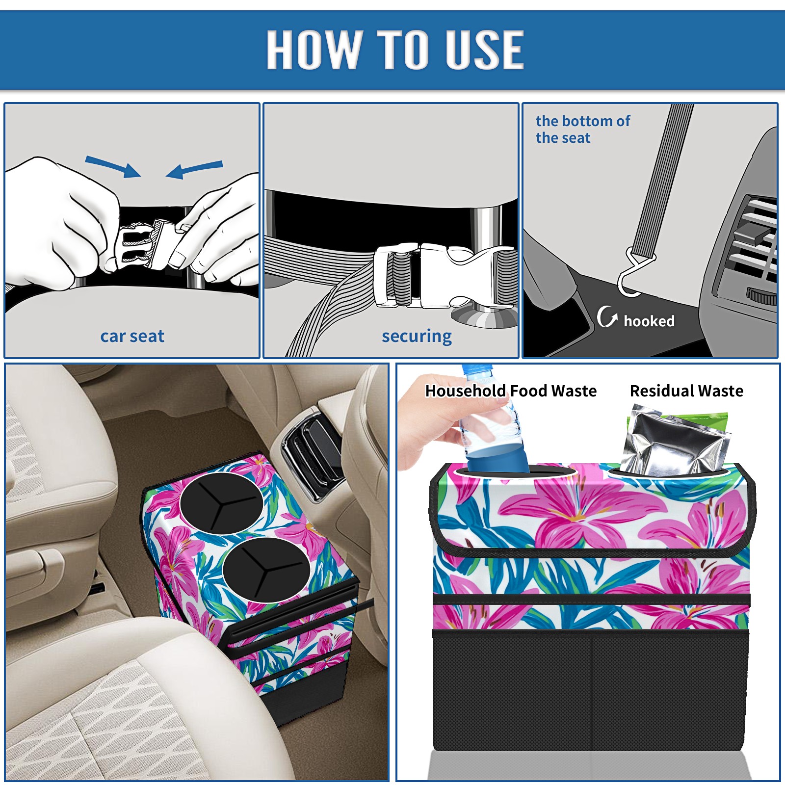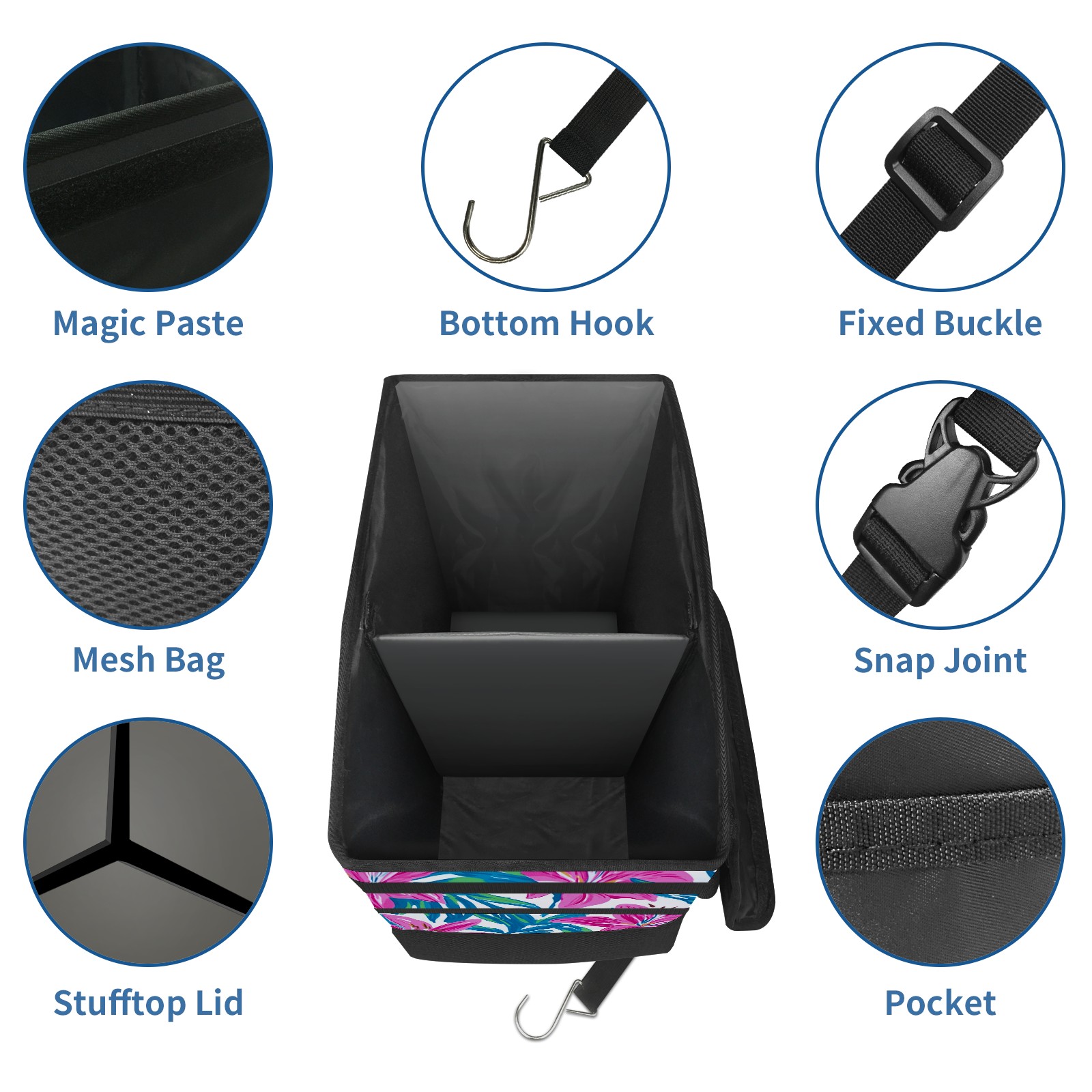 Car Trash Can with Lid, Portable Hanging Automotive Garbage Bin for Vehicles, Leakproof Waste Bag Container for SUV Truck Van Interior Auto Travel Road Trips(Teal Lily)