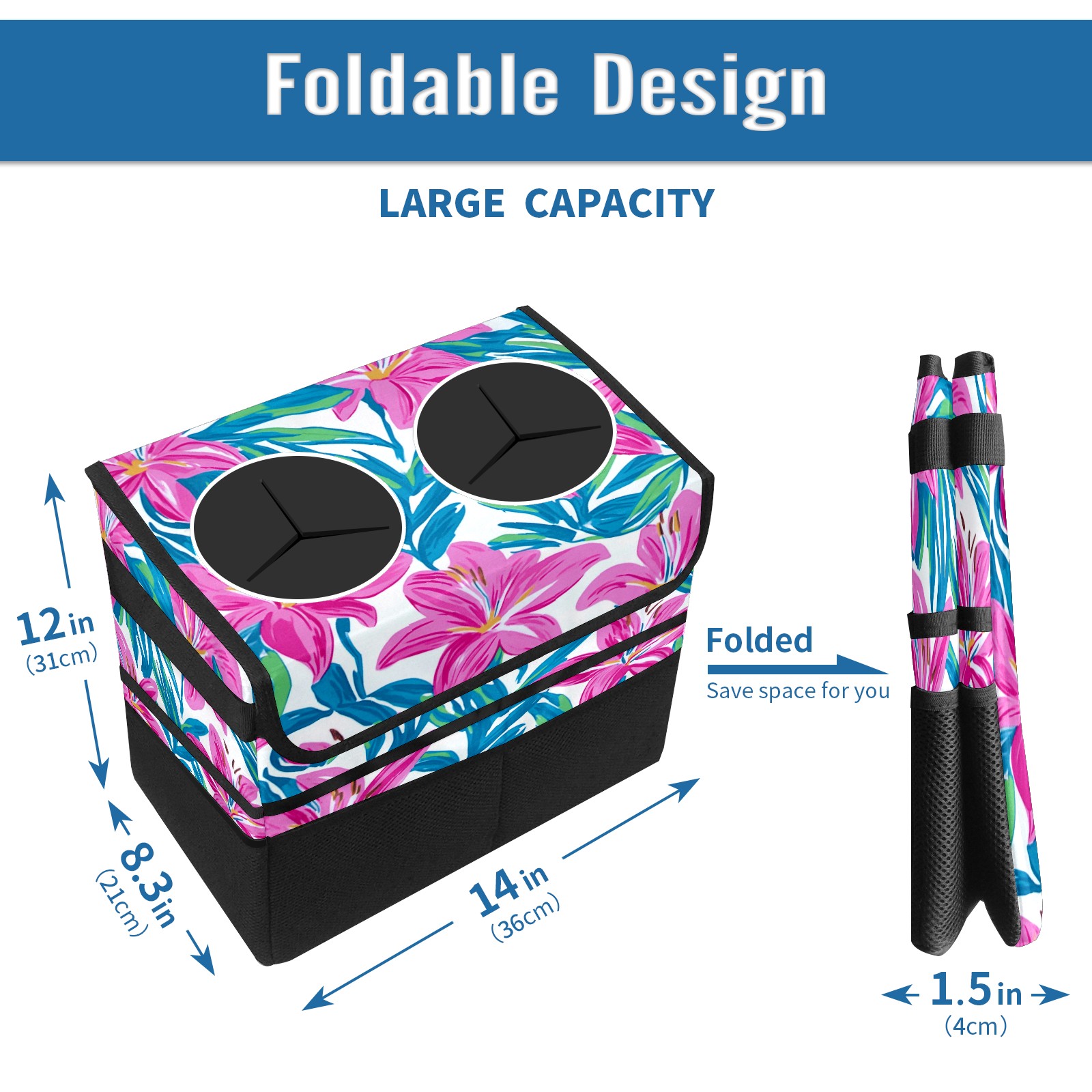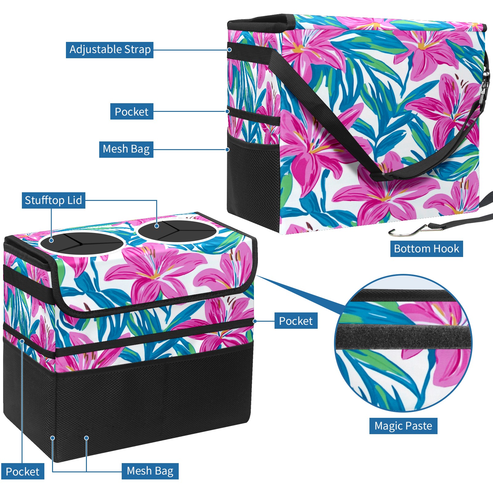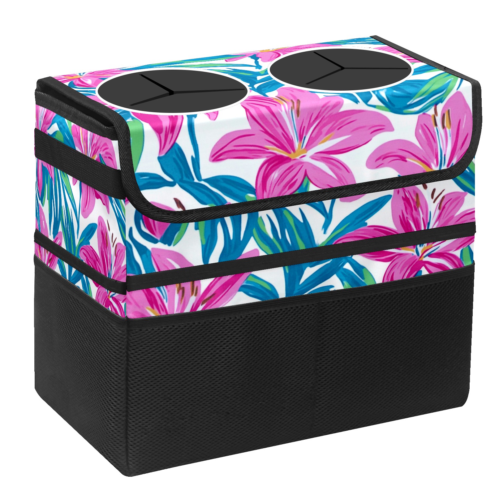 Car Trash Can with Lid, Portable Hanging Automotive Garbage Bin for Vehicles, Leakproof Waste Bag Container for SUV Truck Van Interior Auto Travel Road Trips(Teal Lily)