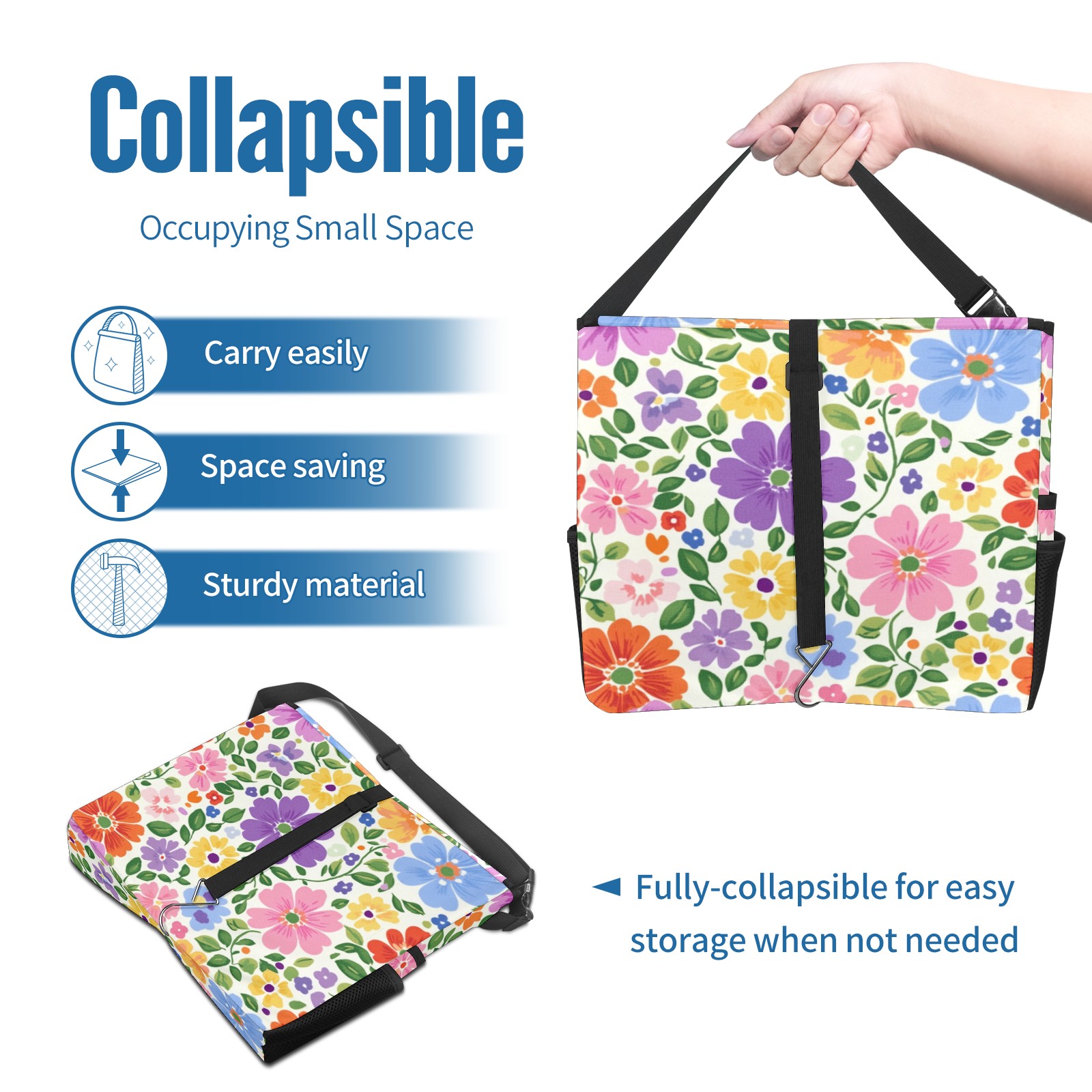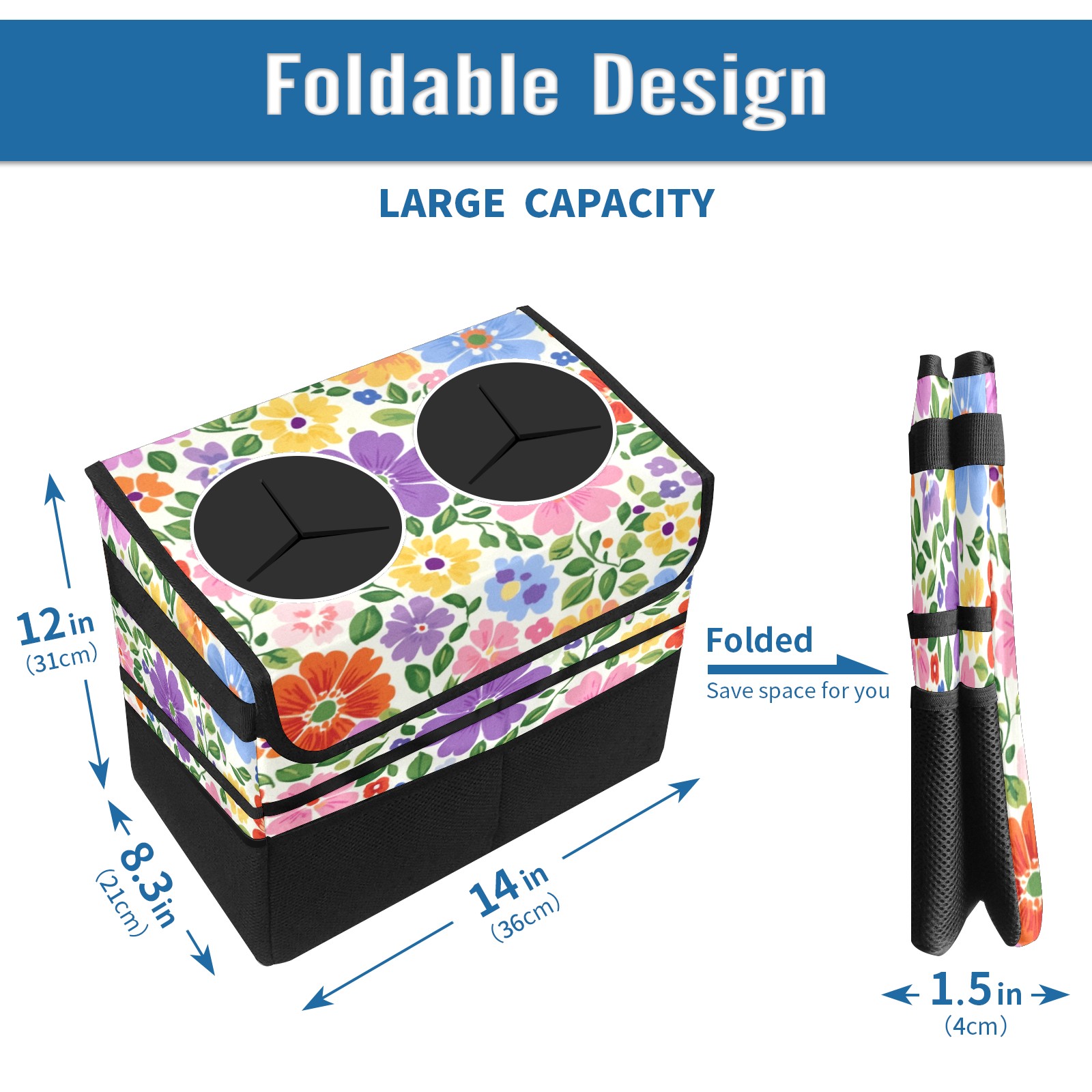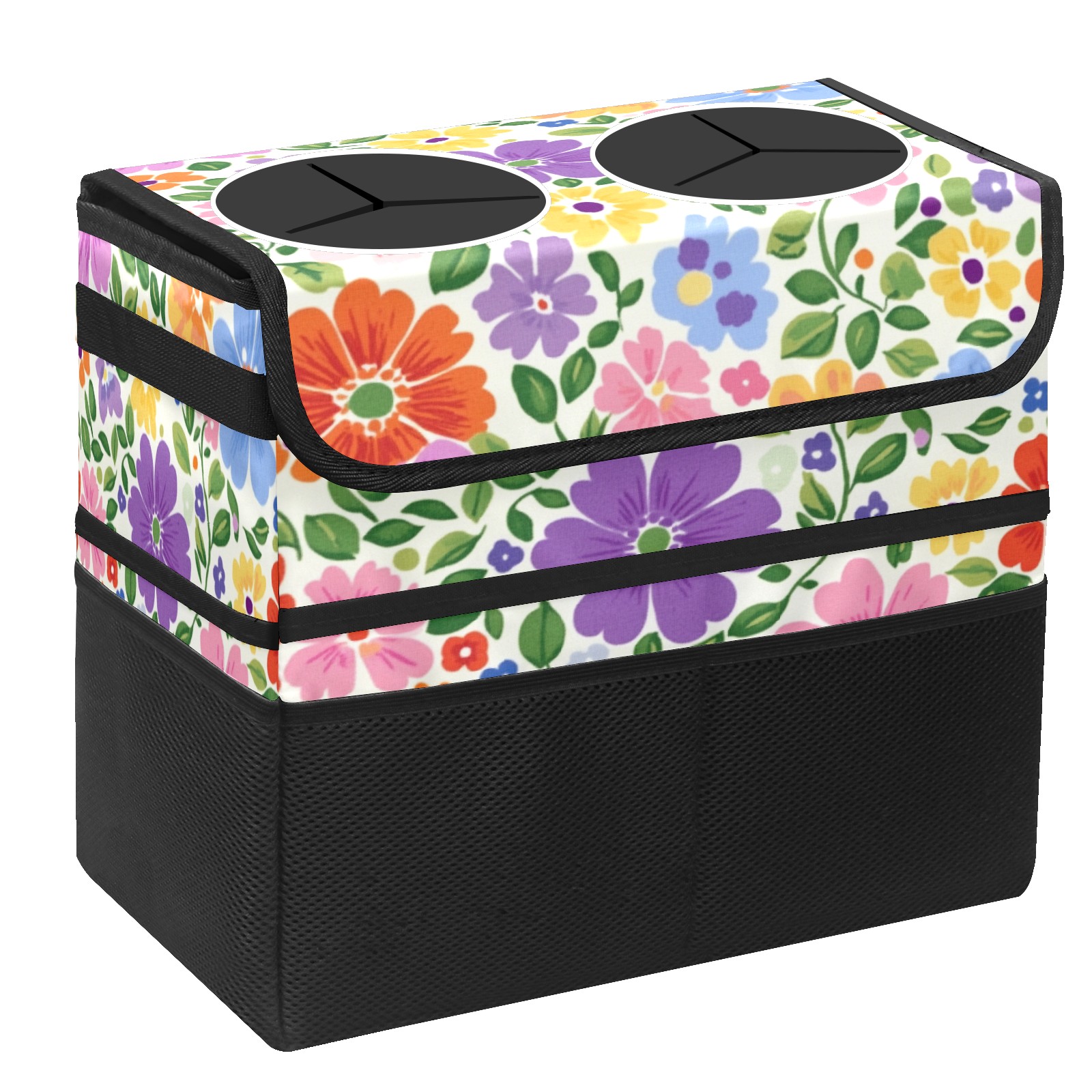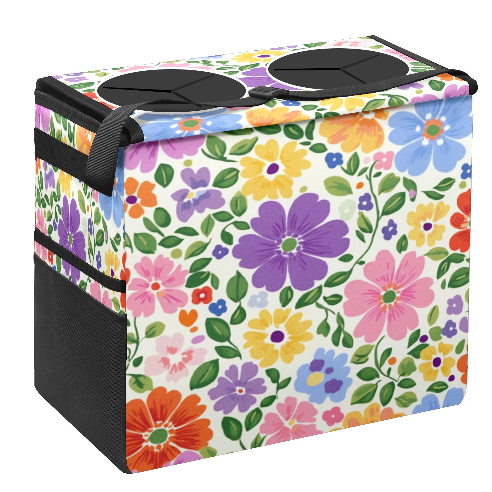 Car Trash Can with Lid, Portable Hanging Automotive Garbage Bin for Vehicles, Leakproof Waste Bag Container for SUV Truck Van Interior Auto Travel Road Trips(Colorful Flowers)
