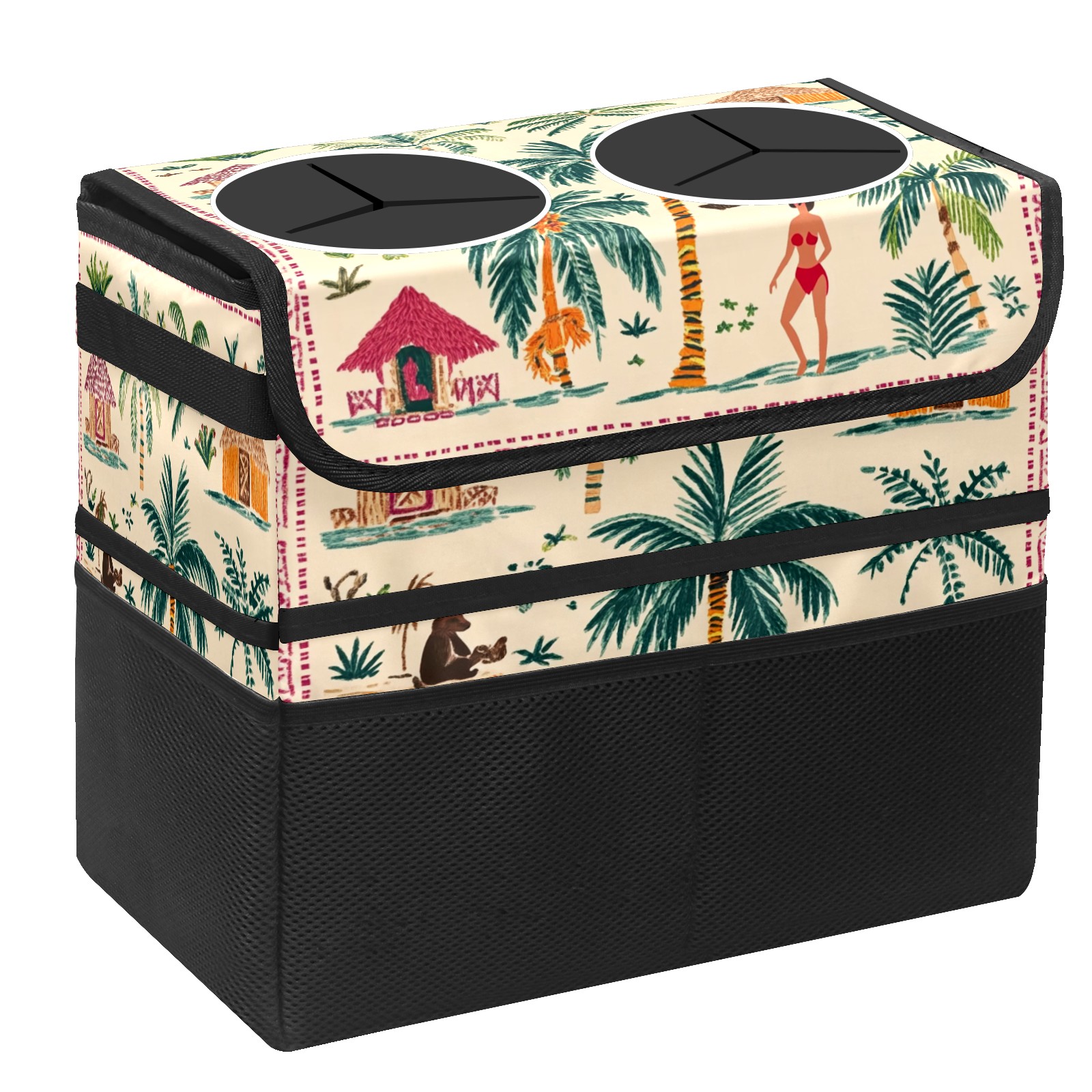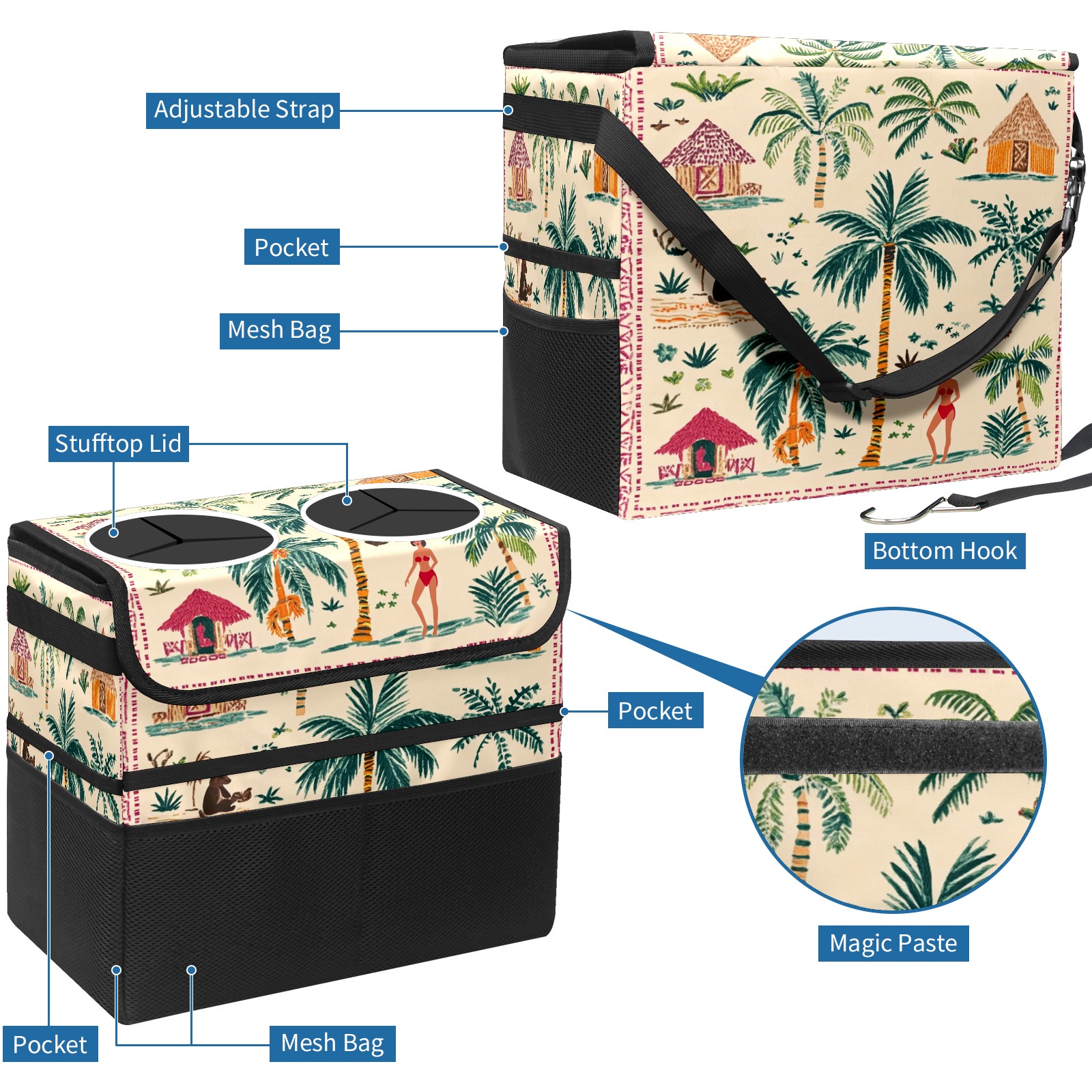 Car Trash Can with Lid, Portable Hanging Automotive Garbage Bin for Vehicles, Leakproof Waste Bag Container for SUV Truck Van Interior Auto Travel Road Trips(Vintage)