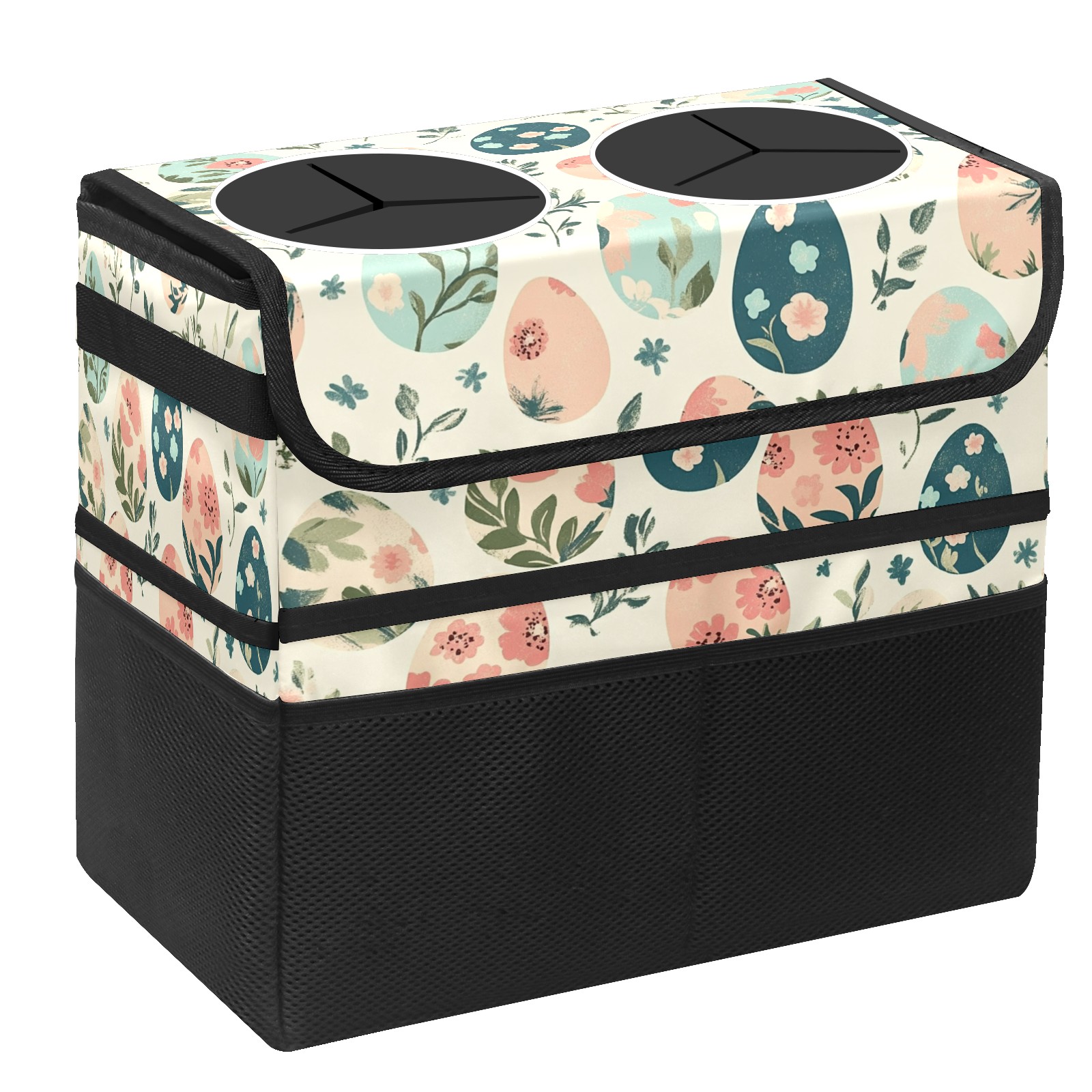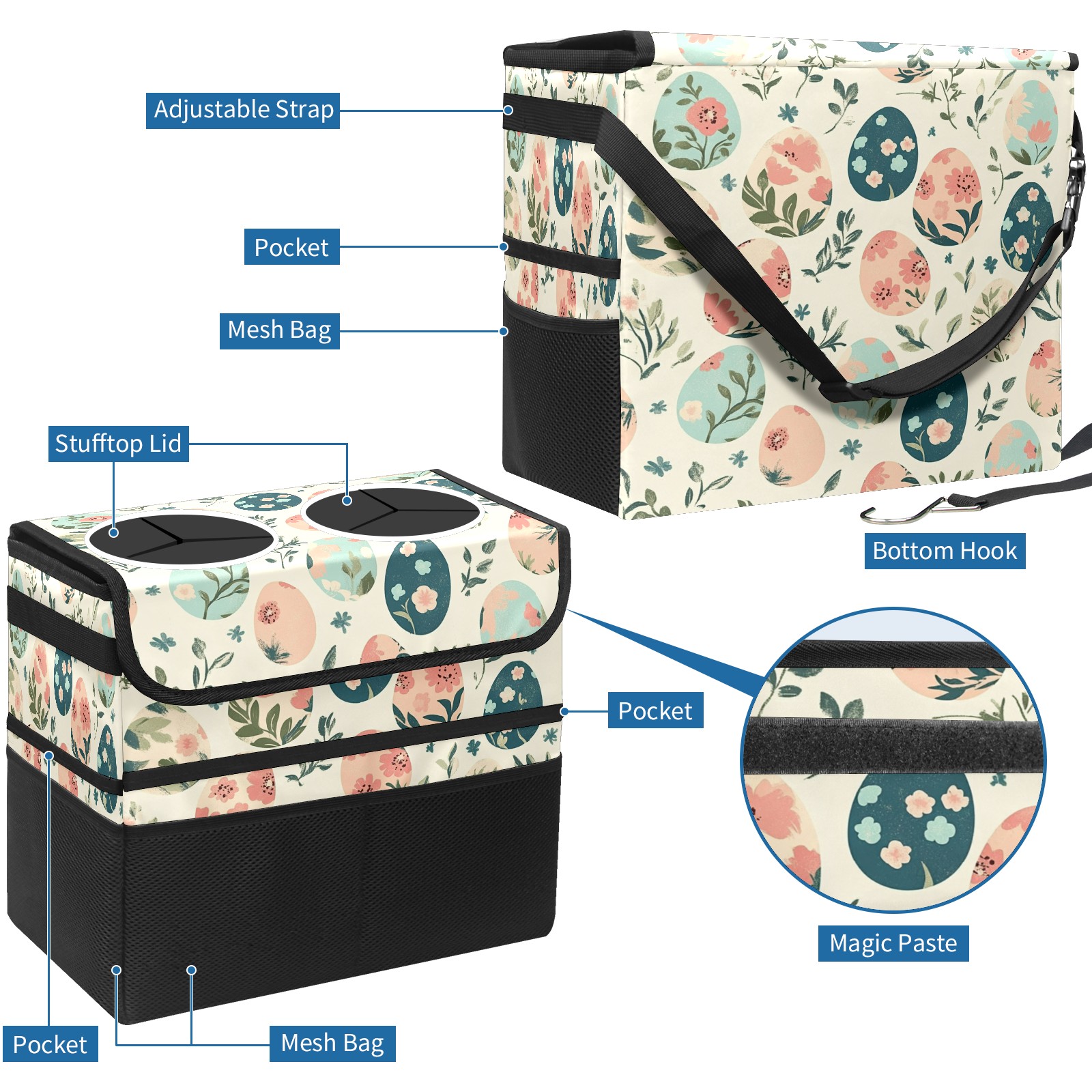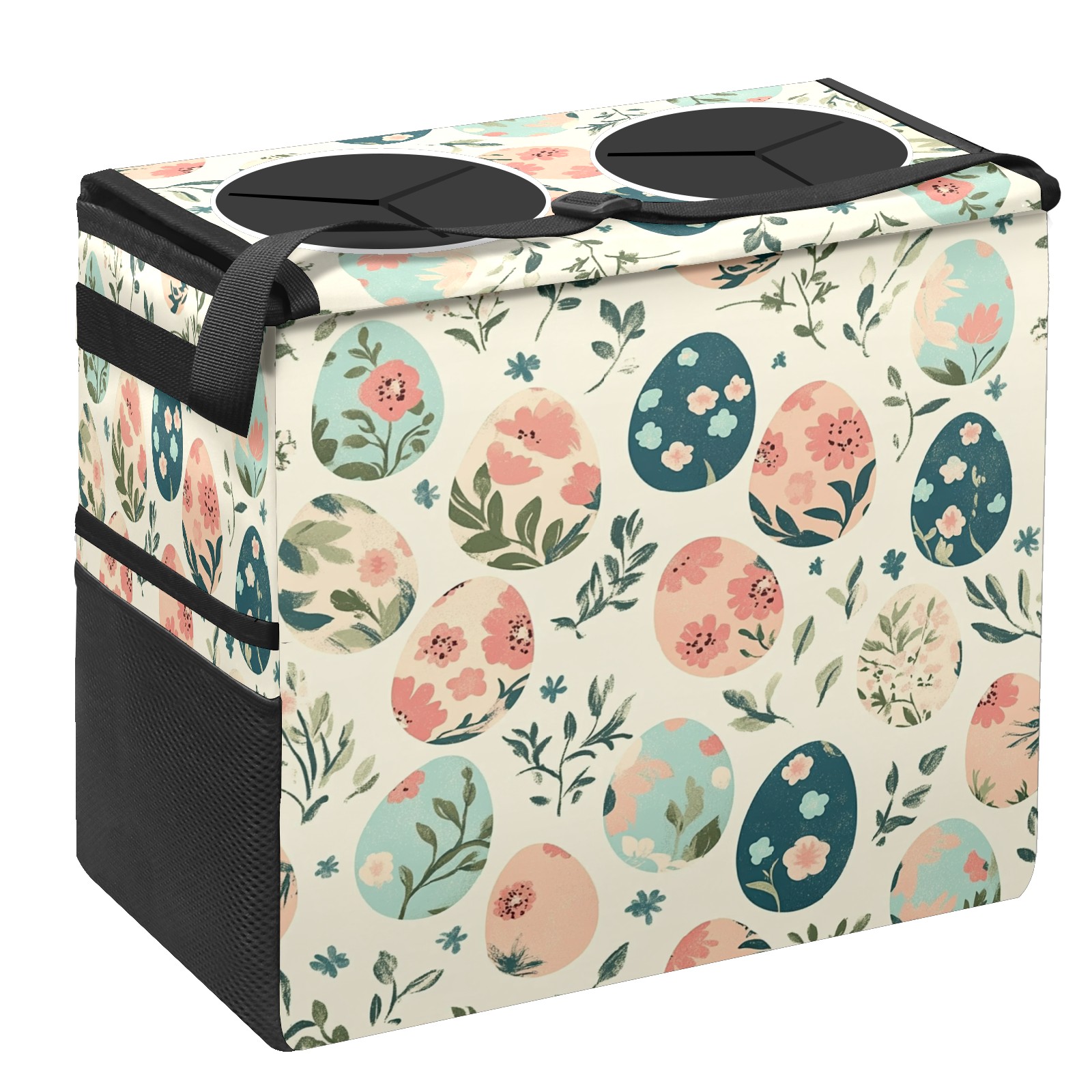 Car Trash Can with Lid, Portable Hanging Automotive Garbage Bin for Vehicles, Leakproof Waste Bag Container for SUV Truck Van Interior Auto Travel Road Trips(Easter Eggs)