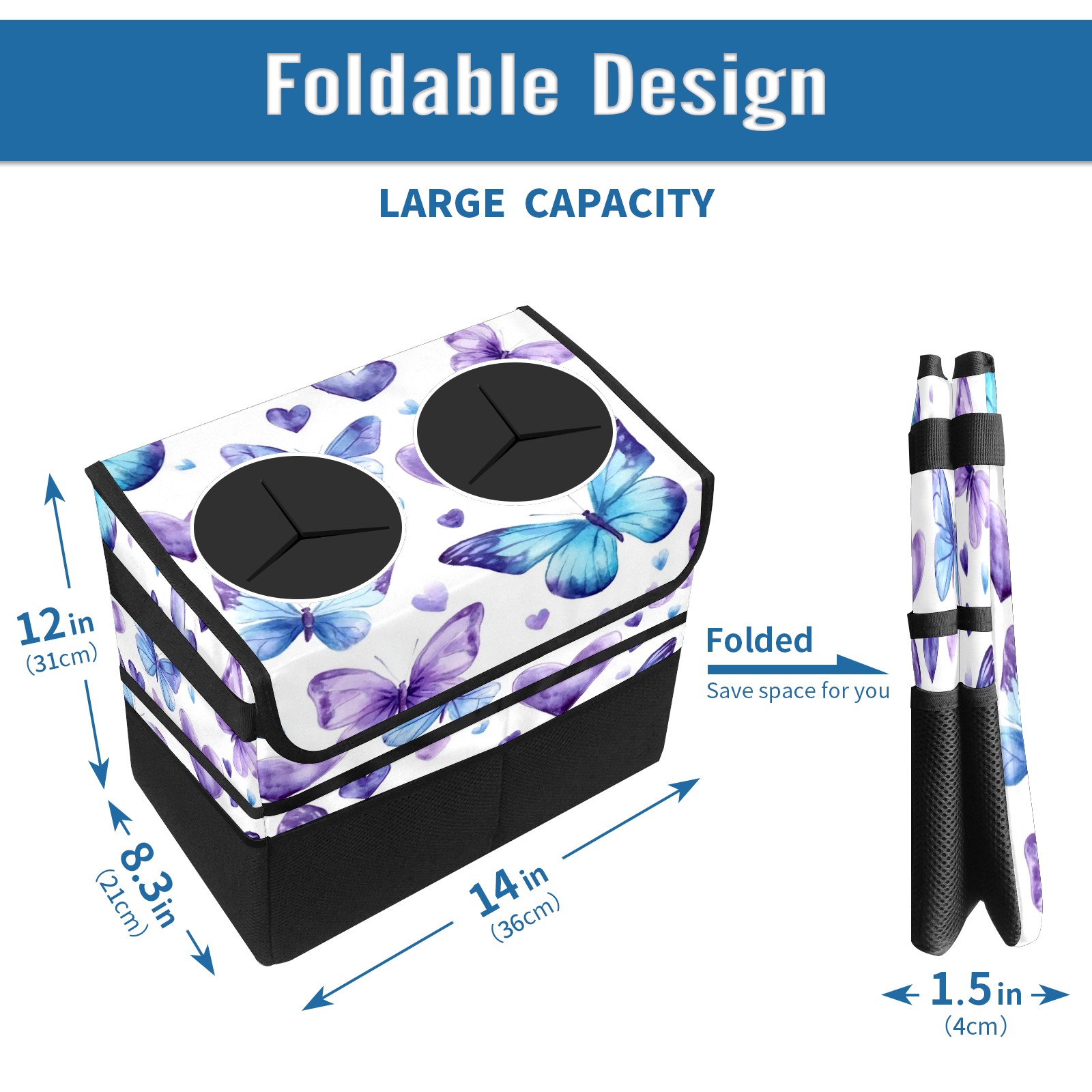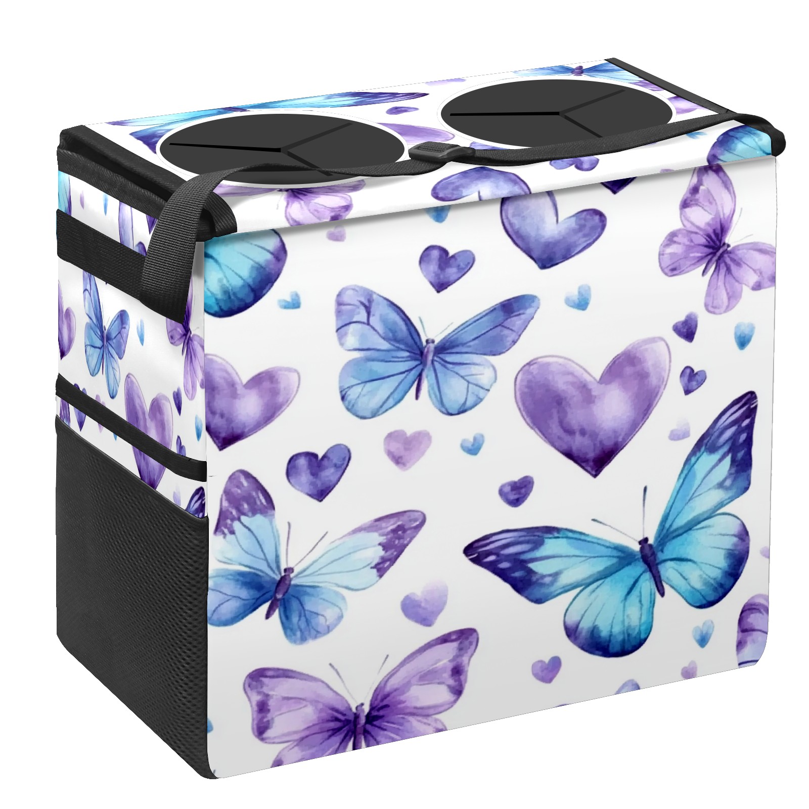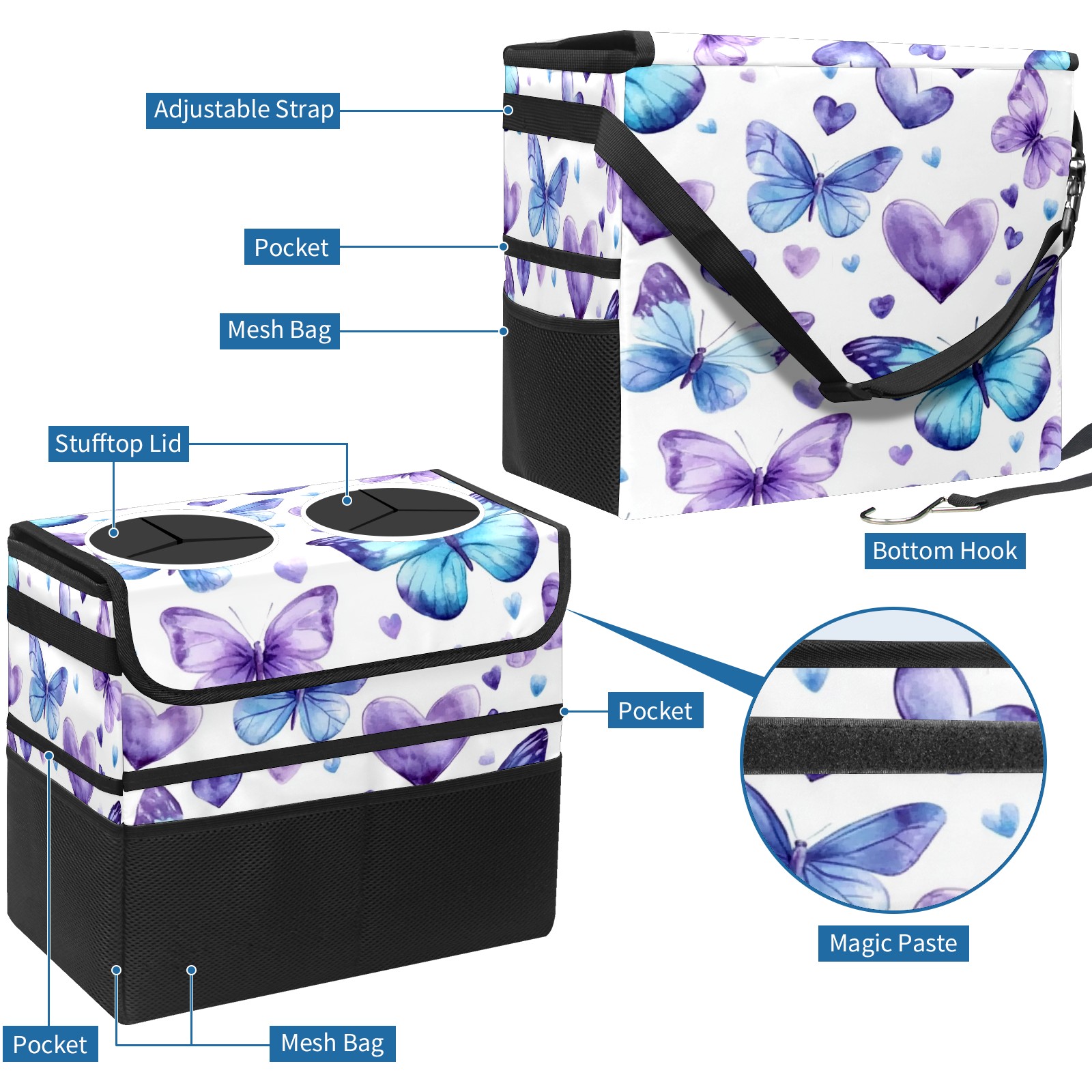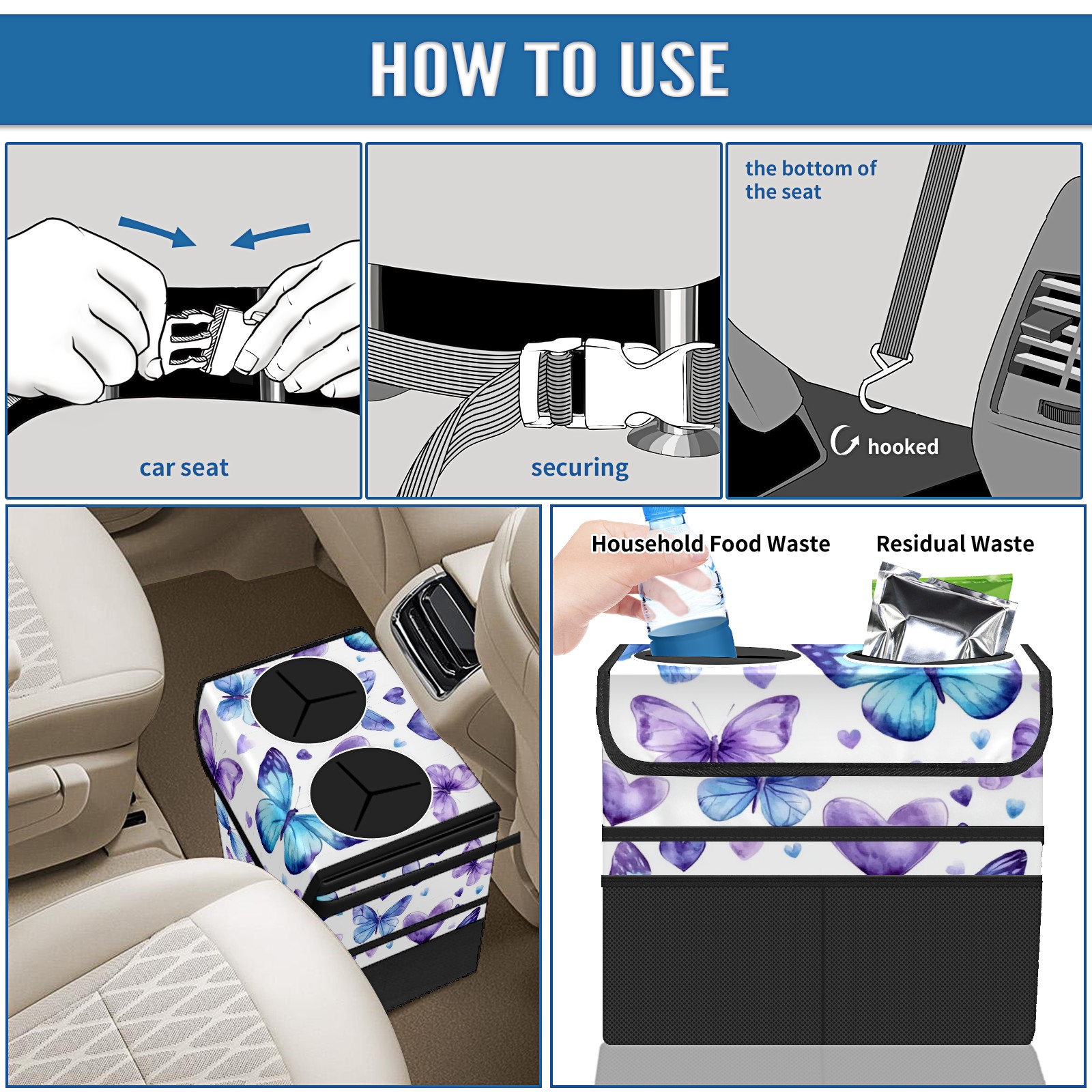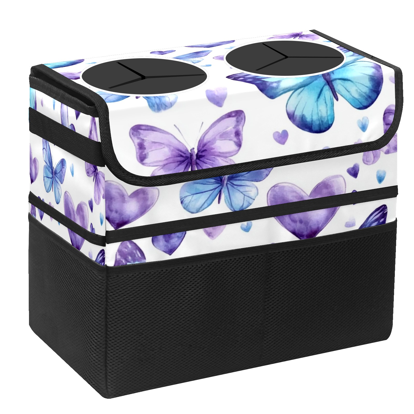 Car Trash Can with Lid, Portable Hanging Automotive Garbage Bin for Vehicles, Leakproof Waste Bag Container for SUV Truck Van Interior Auto Travel Road Trips(Watercolor Butterfly)
