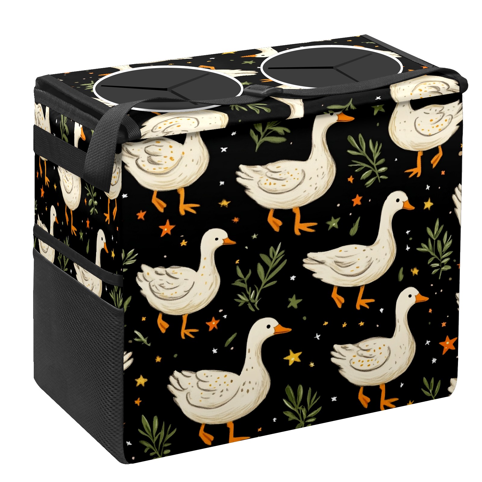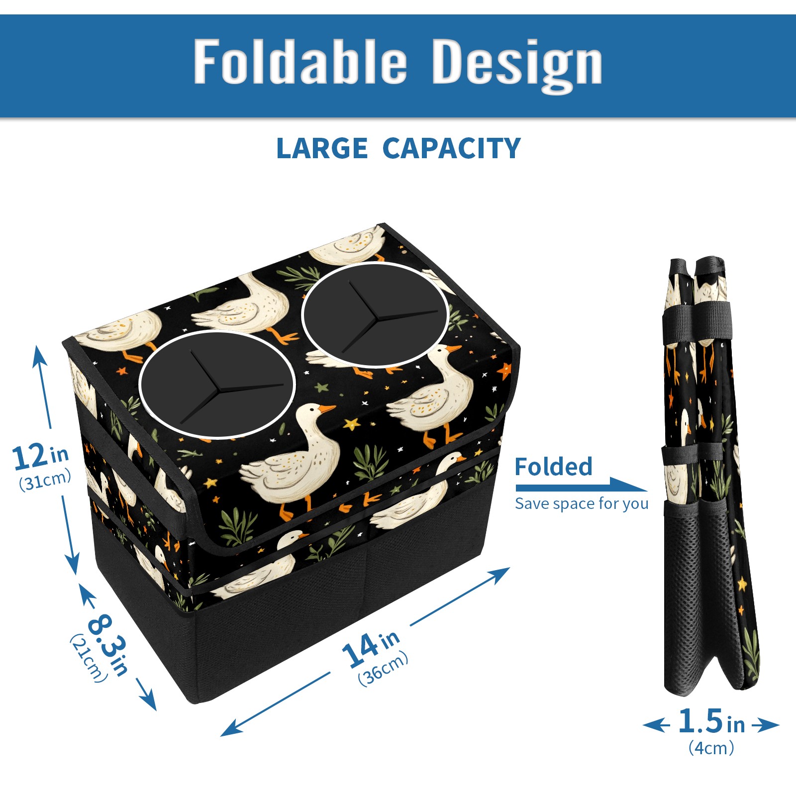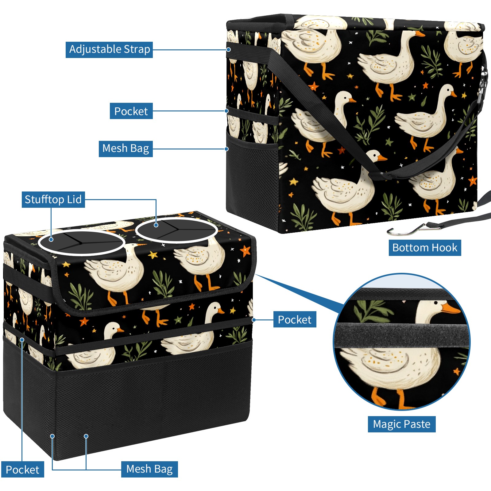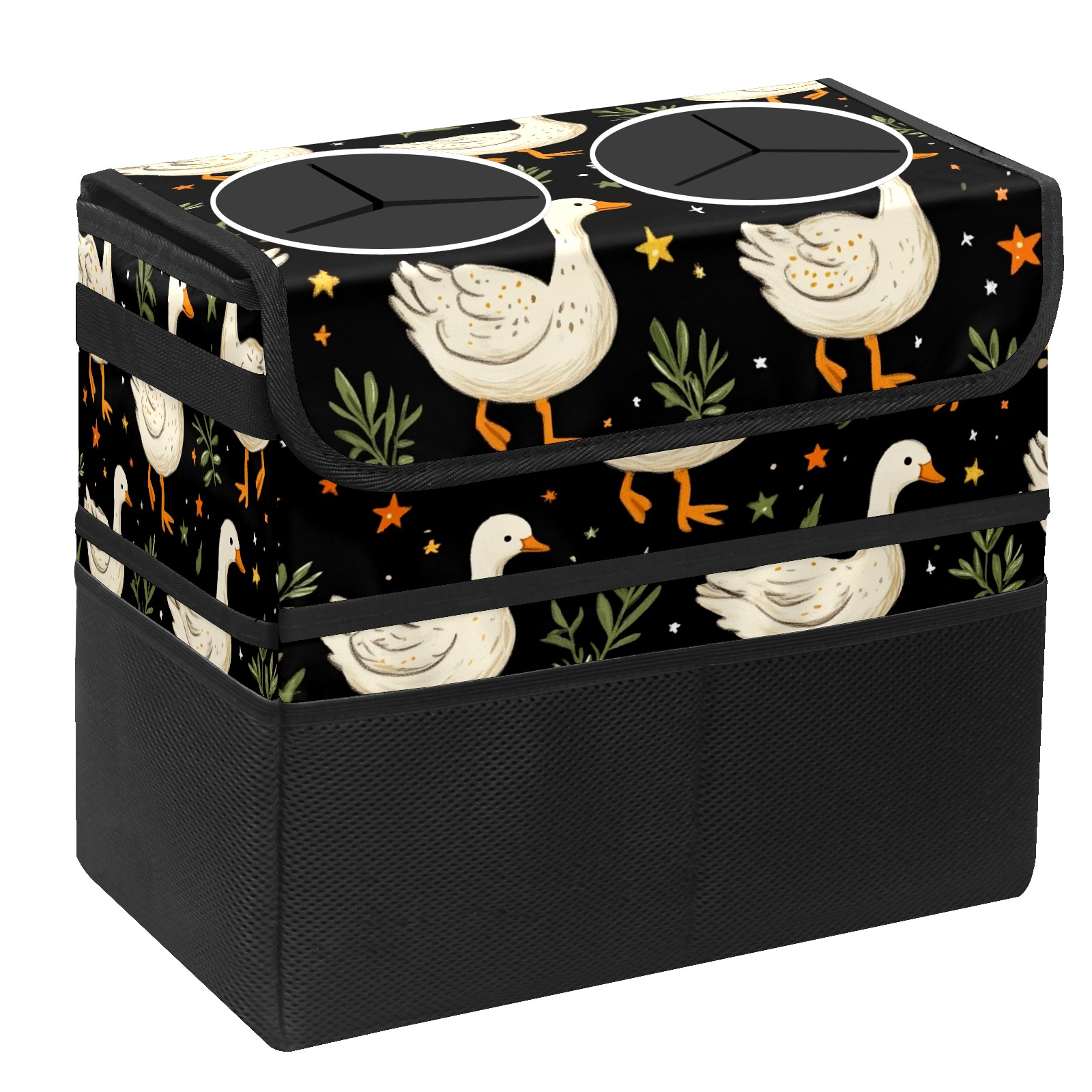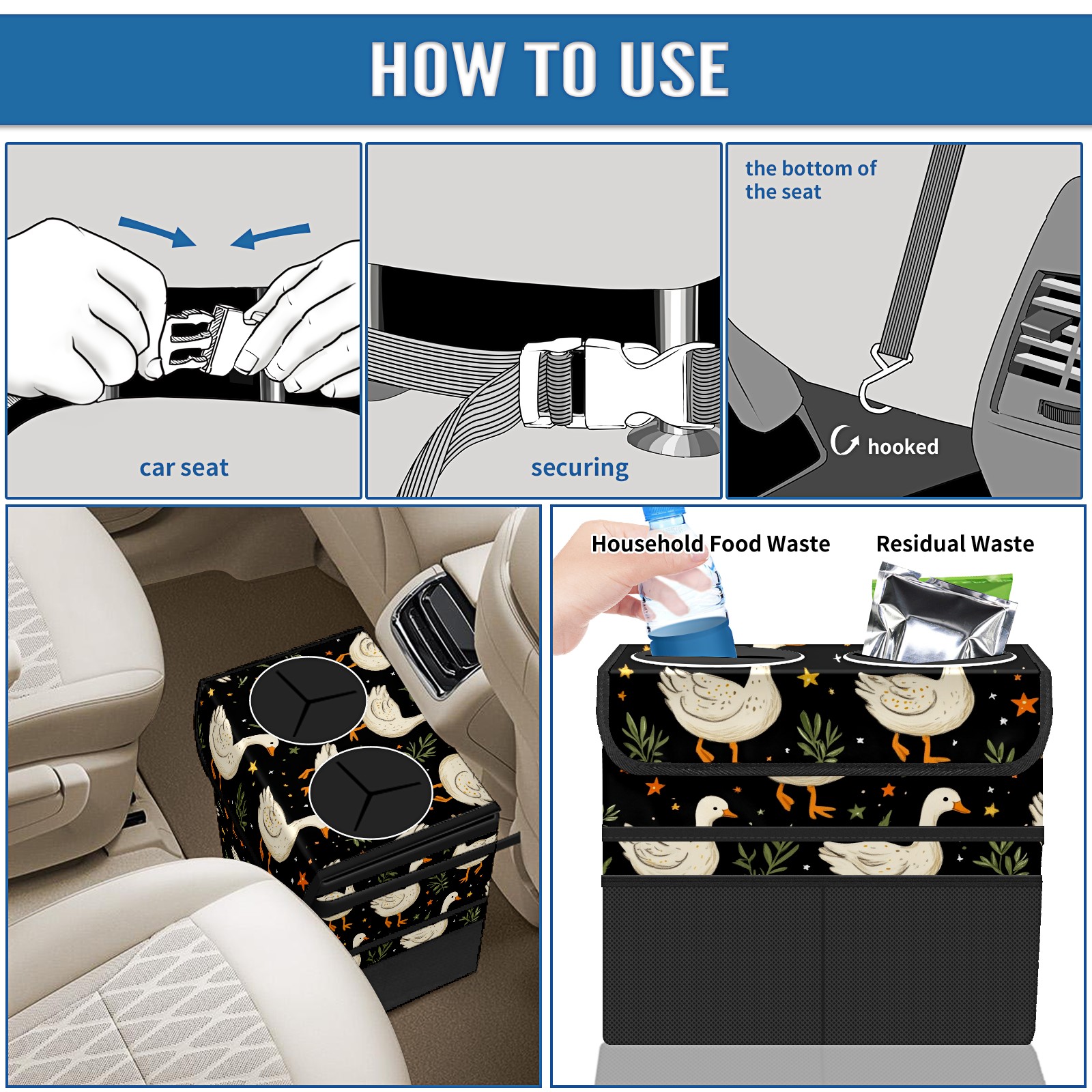 Car Trash Can with Lid, Portable Hanging Automotive Garbage Bin for Vehicles, Leakproof Waste Bag Container for SUV Truck Van Interior Auto Travel Road Trips(White Geese Carrots And Stars)