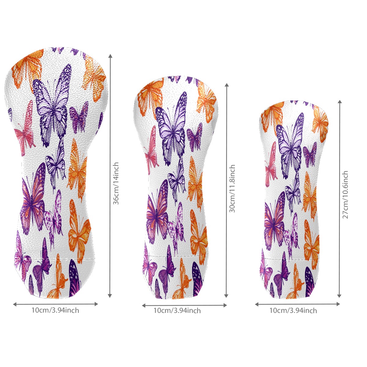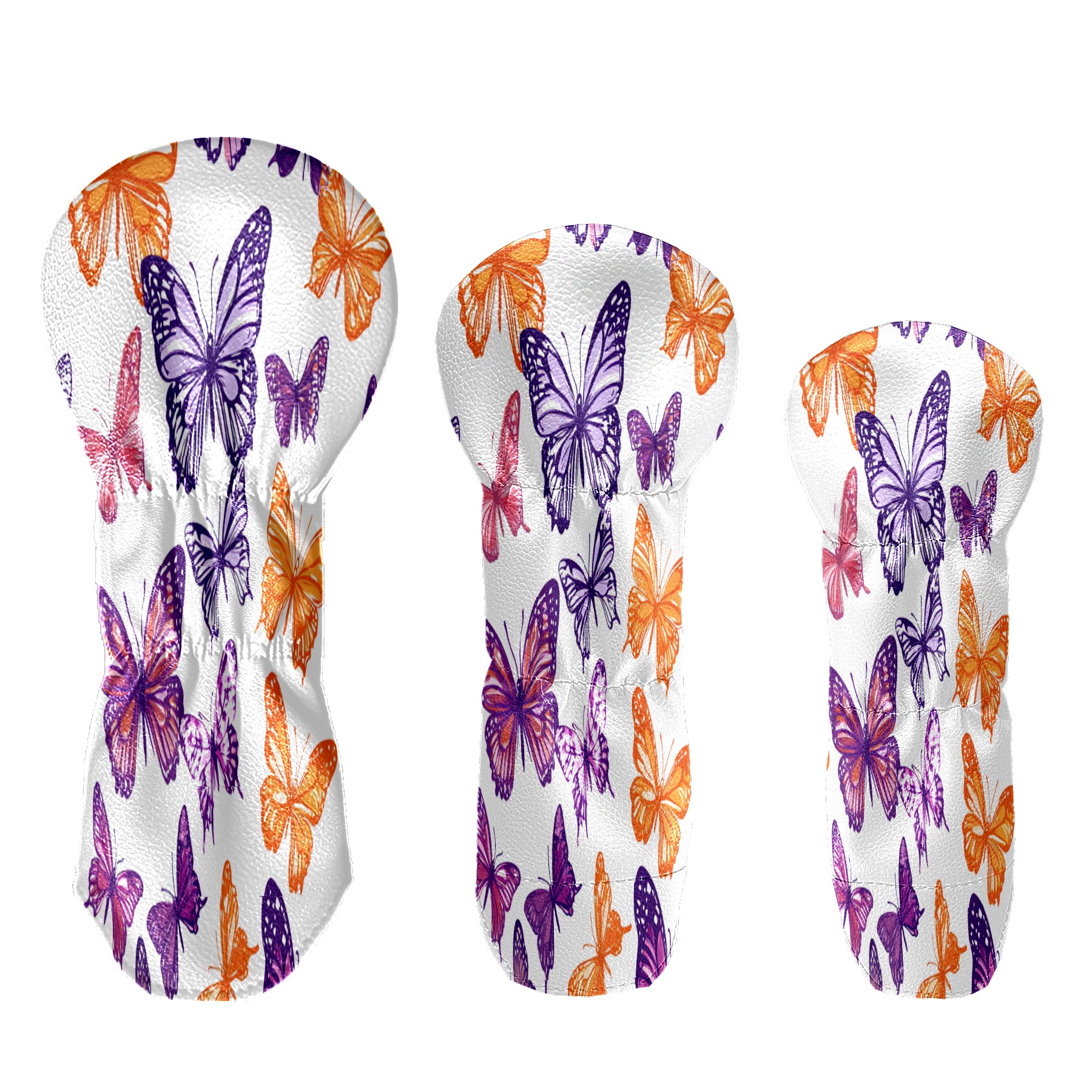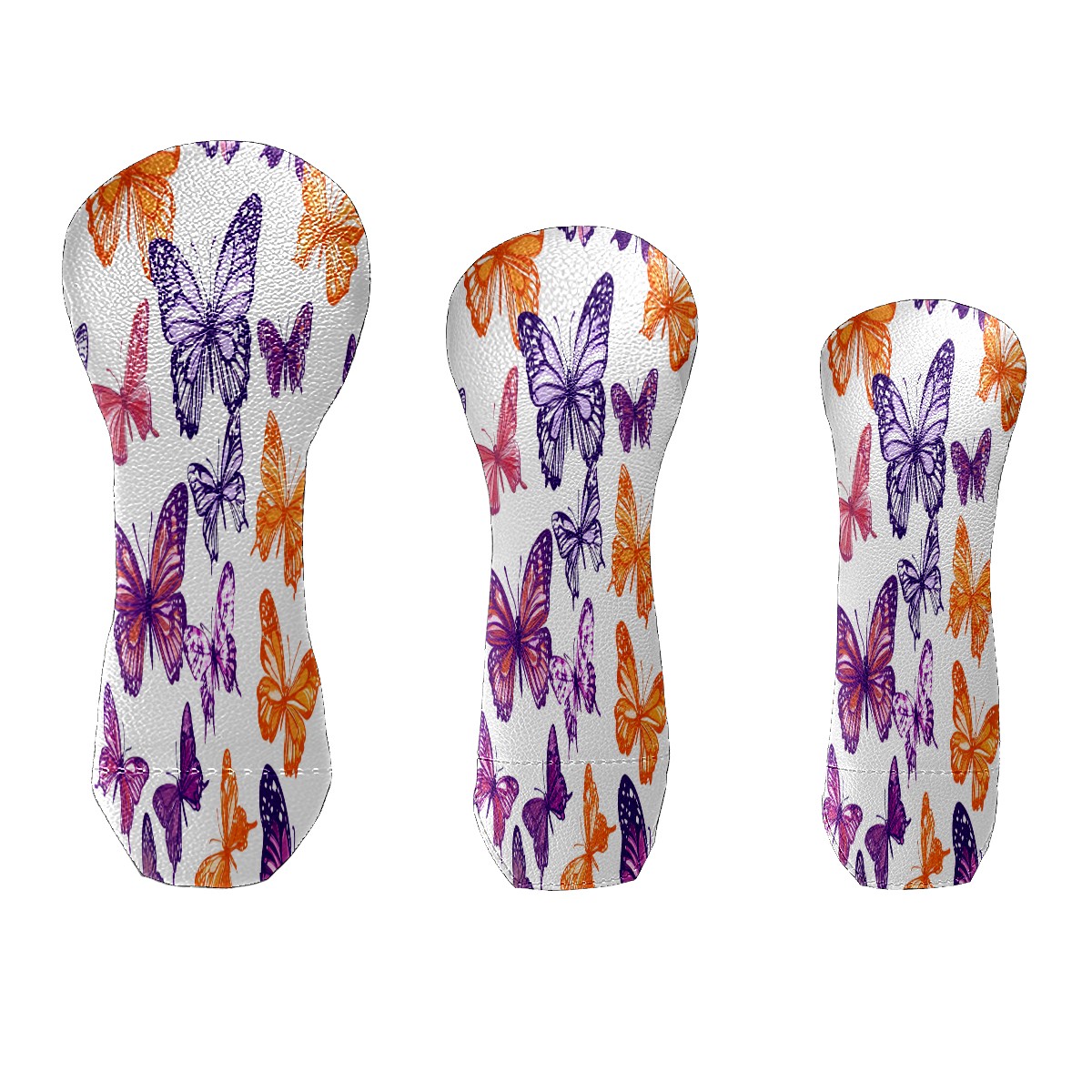 Golf Head Covers 3-Pack Purple Butterfly Waterproof PU Leather & Plush Velvet Lining Fits Driver Fairway Hybrid Clubs, Scratch Protection Durable Golf Gift for Men & Women