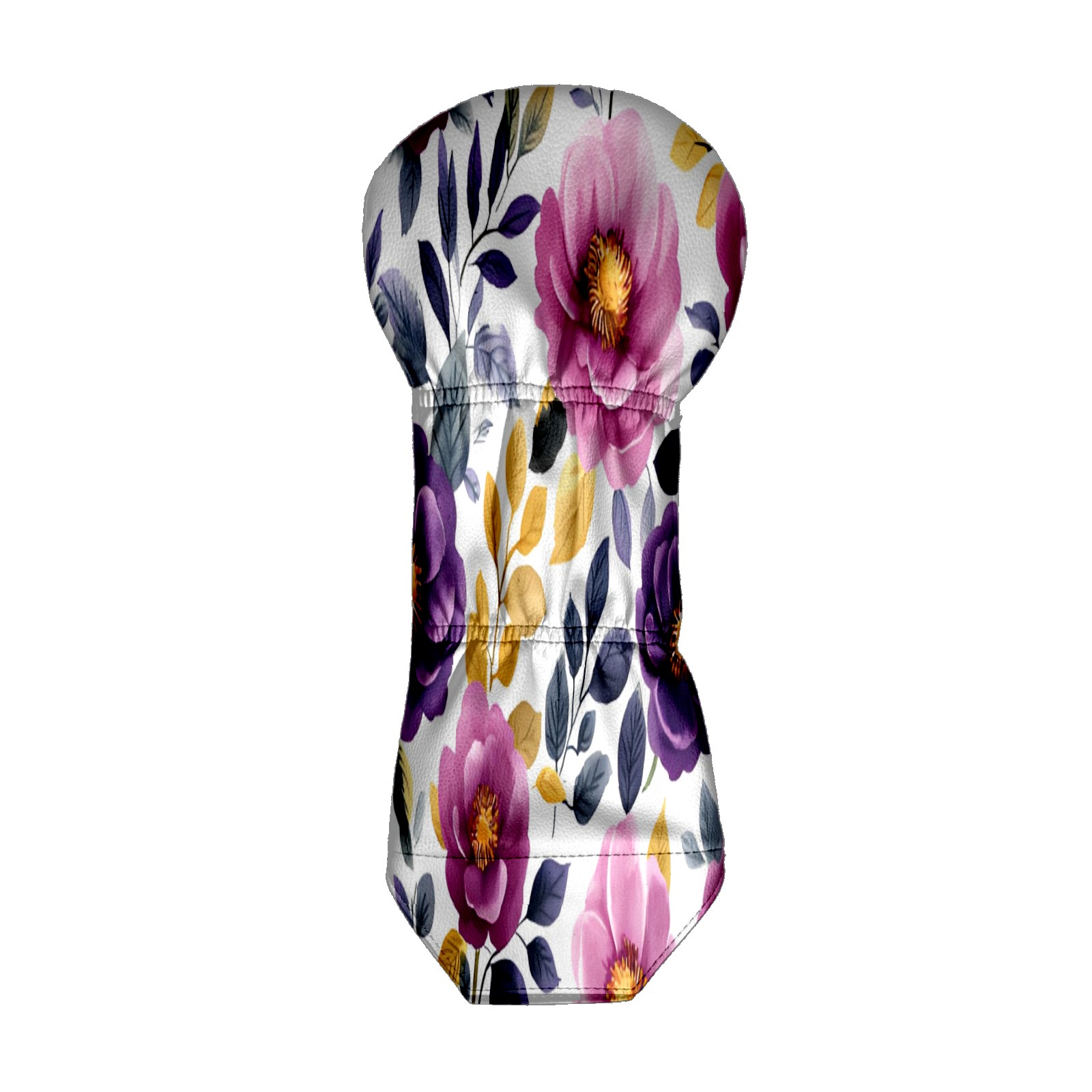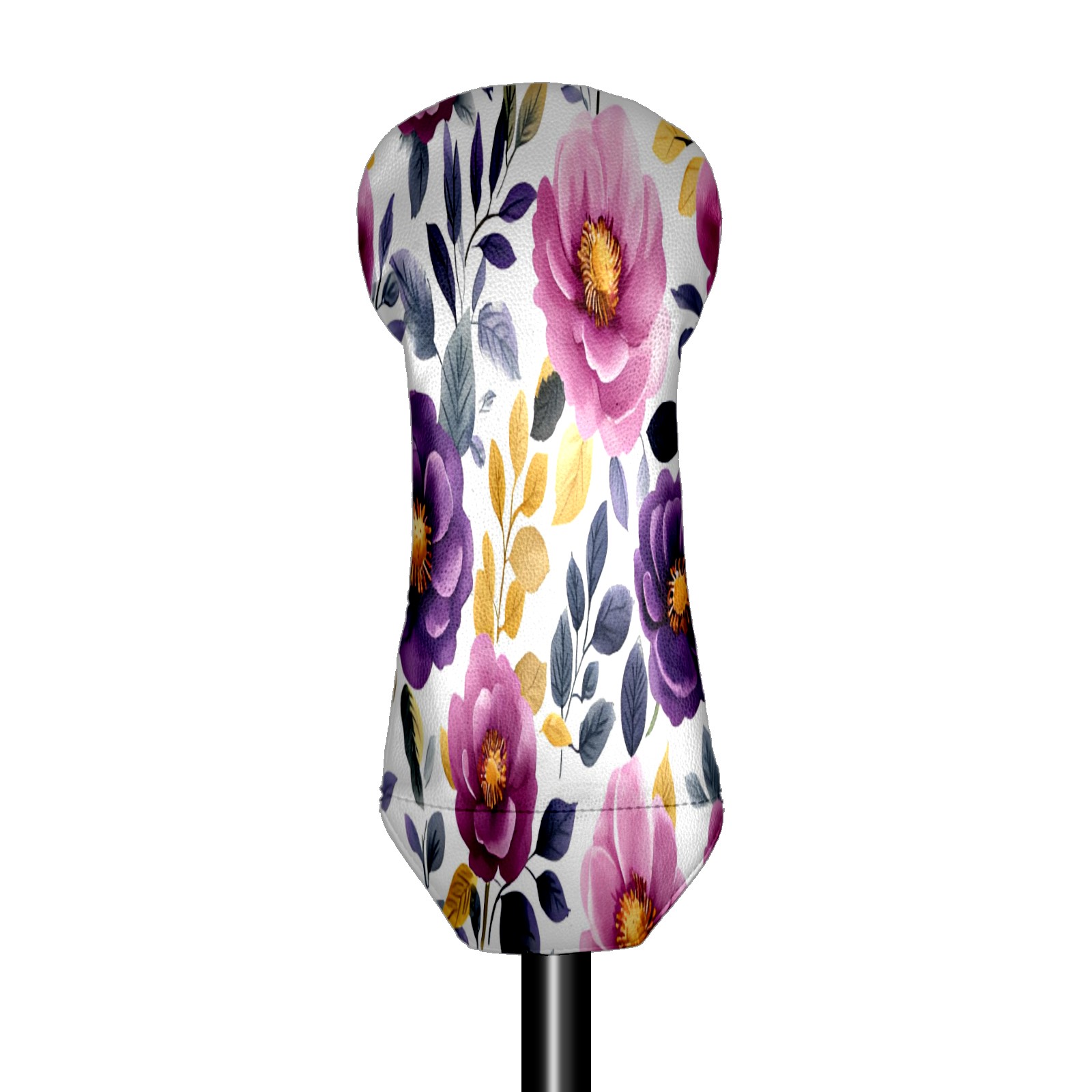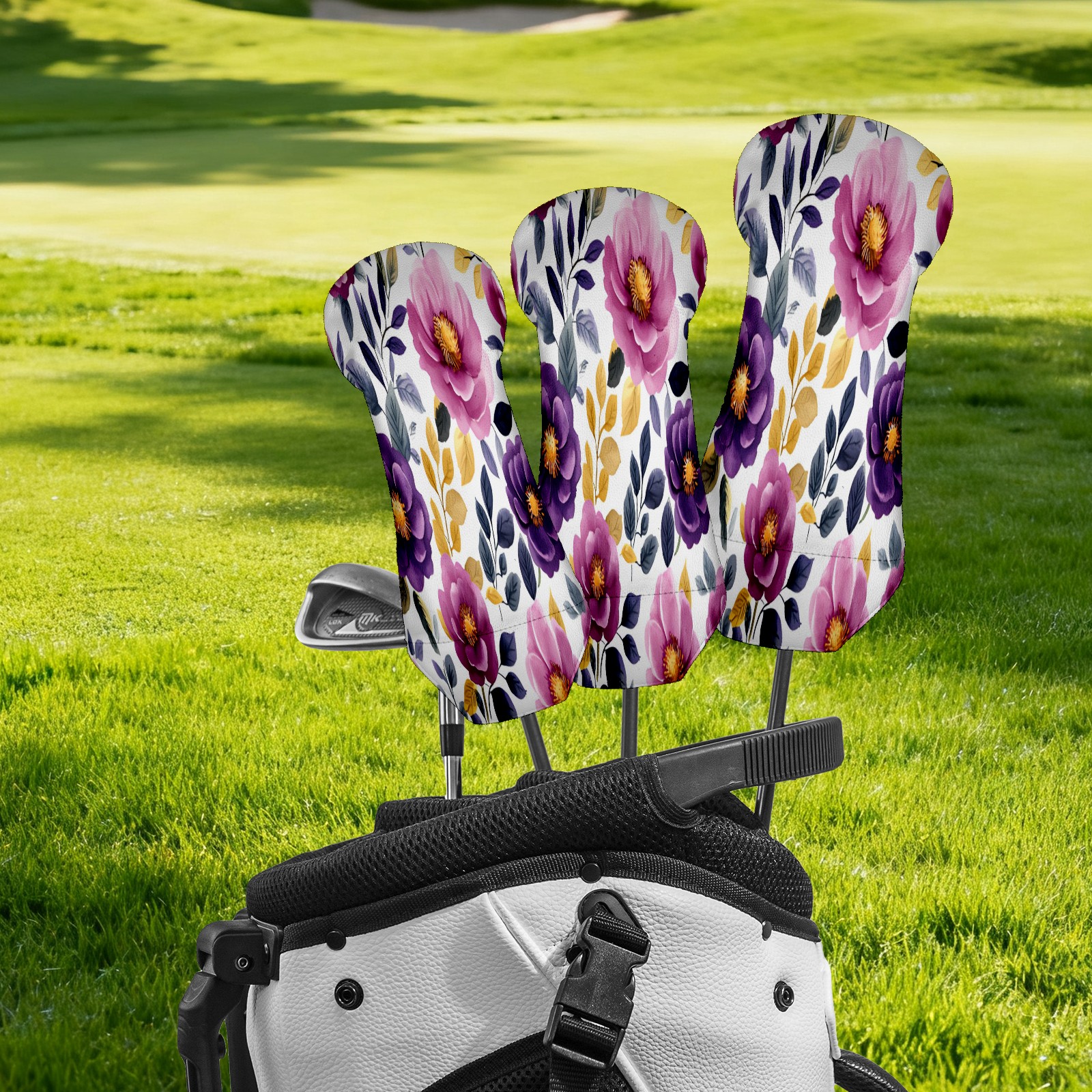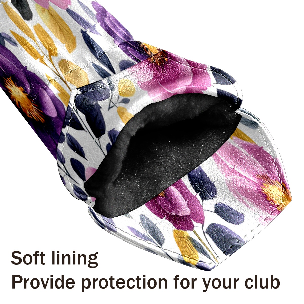 Golf Head Covers 3-Pack Purple Flowers Waterproof PU Leather & Plush Velvet Lining Fits Driver Fairway Hybrid Clubs, Scratch Protection Durable Golf Gift for Men & Women