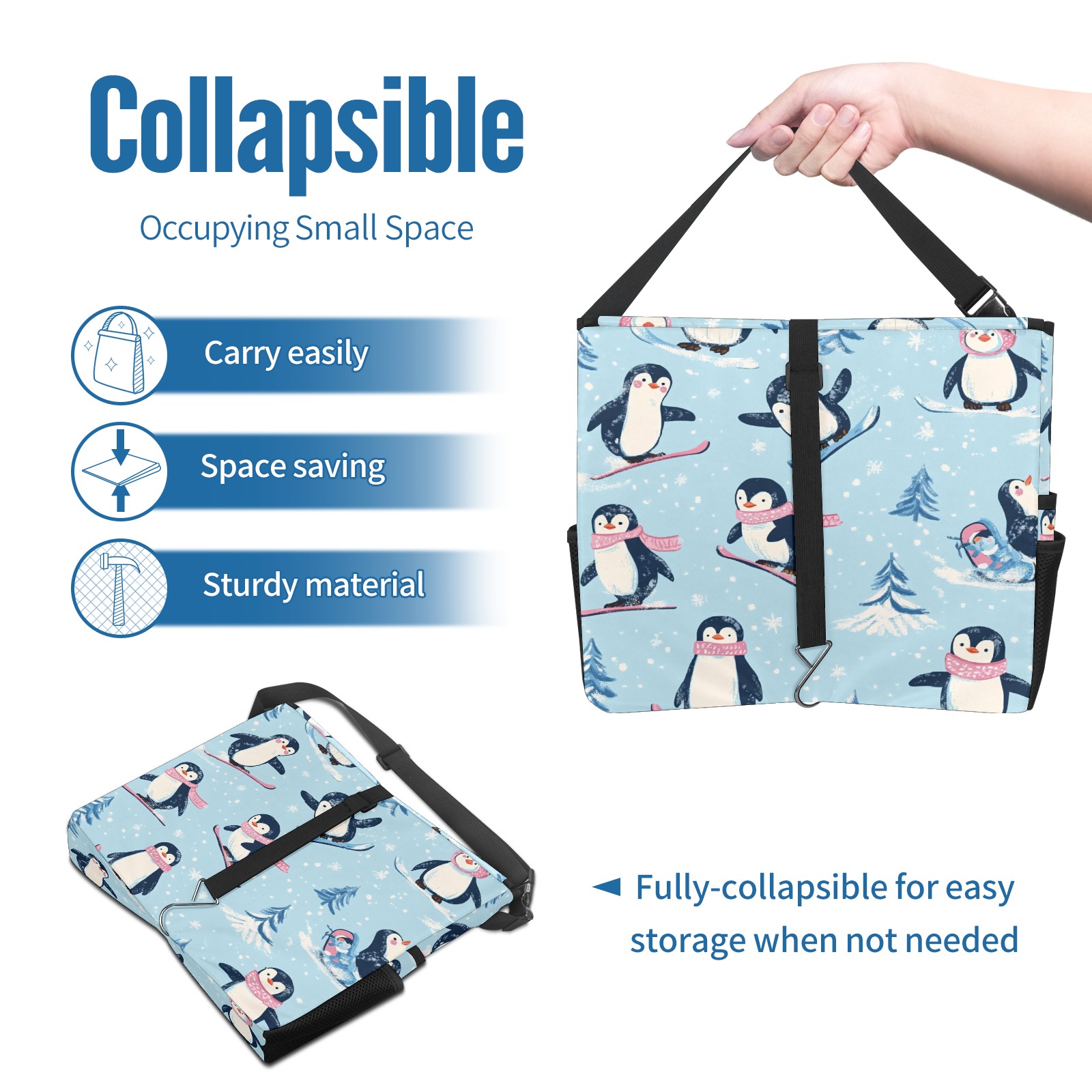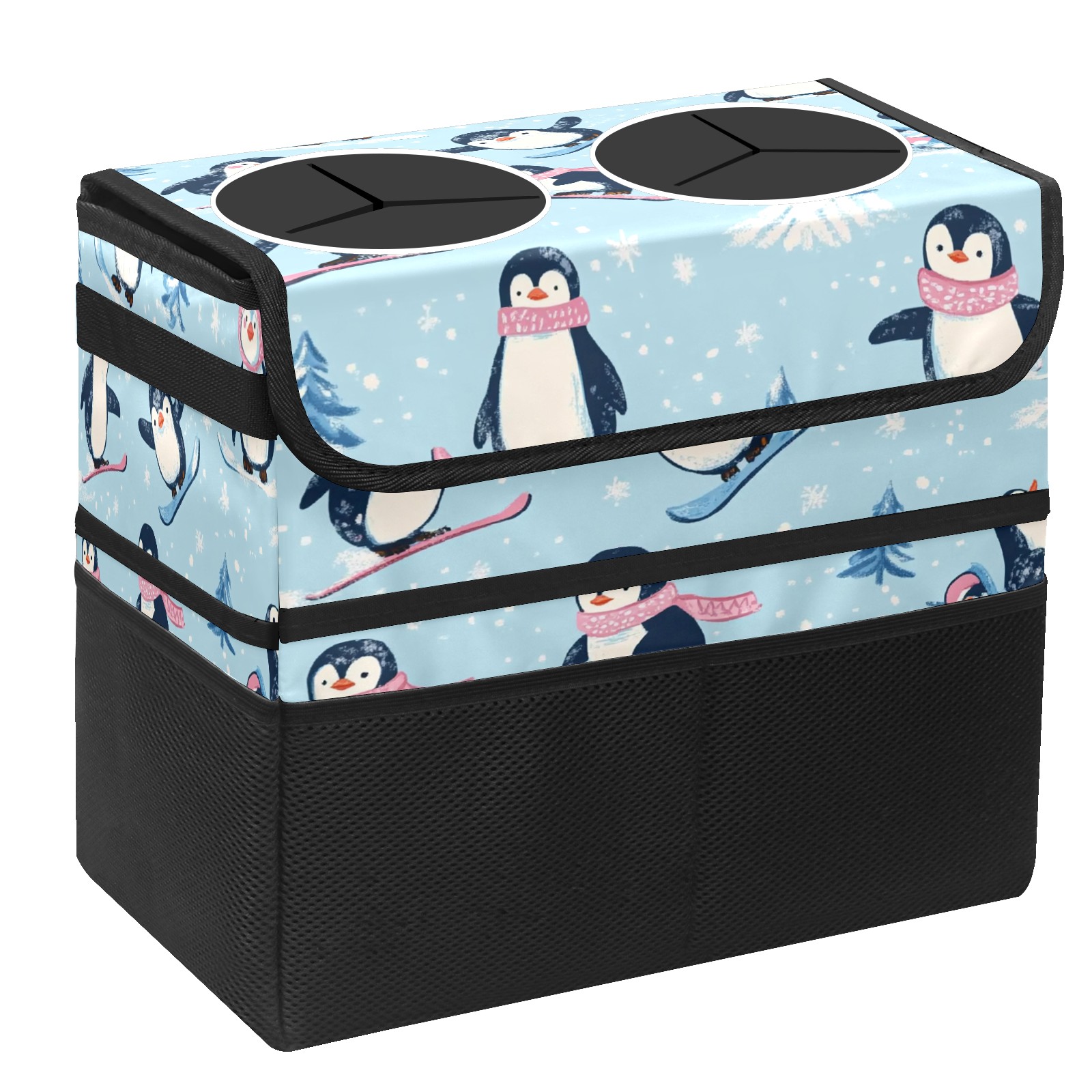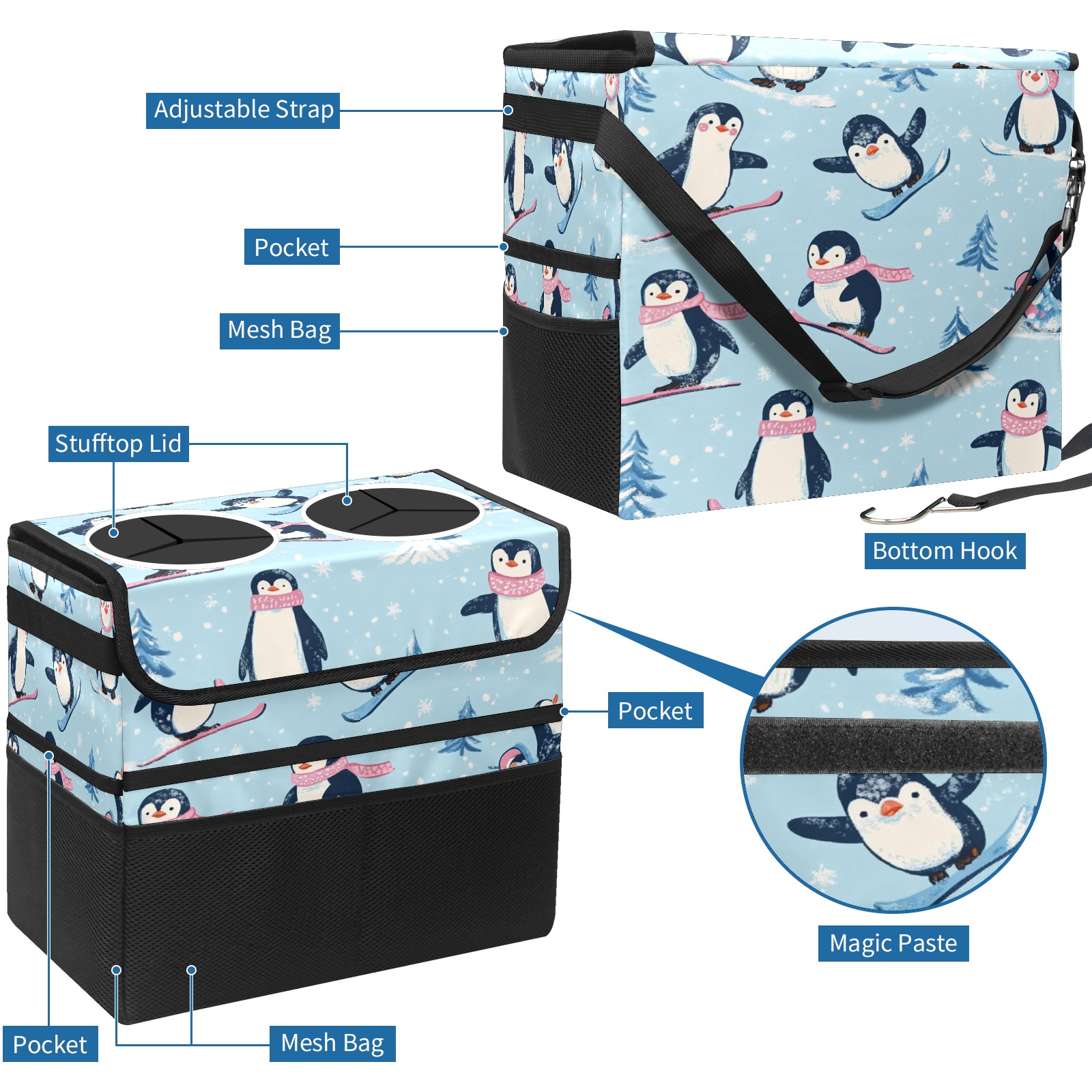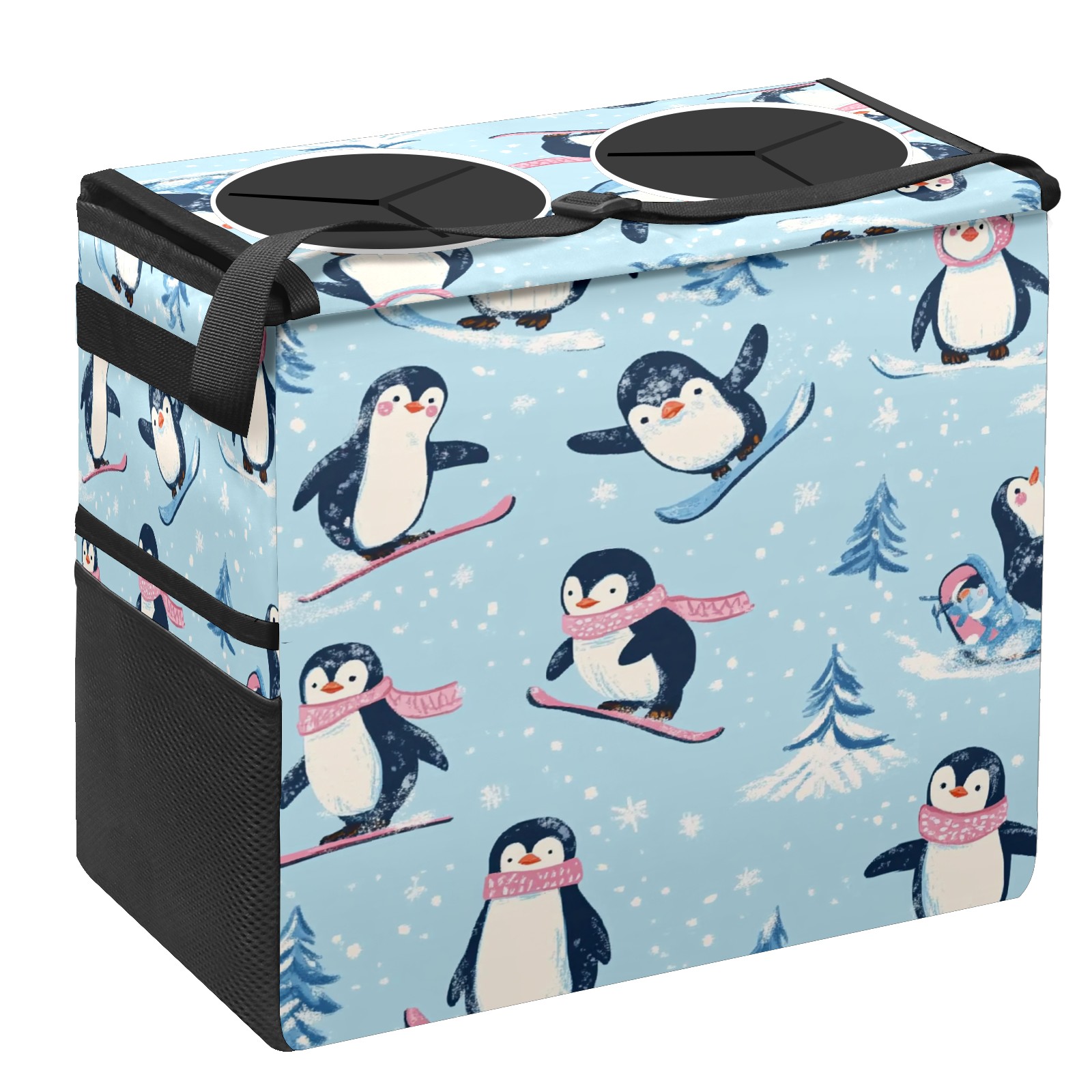 Car Trash Can with Lid, Portable Hanging Automotive Garbage Bin for Vehicles, Leakproof Waste Bag Container for SUV Truck Van Interior Auto Travel Road Trips(Playful Penguins)