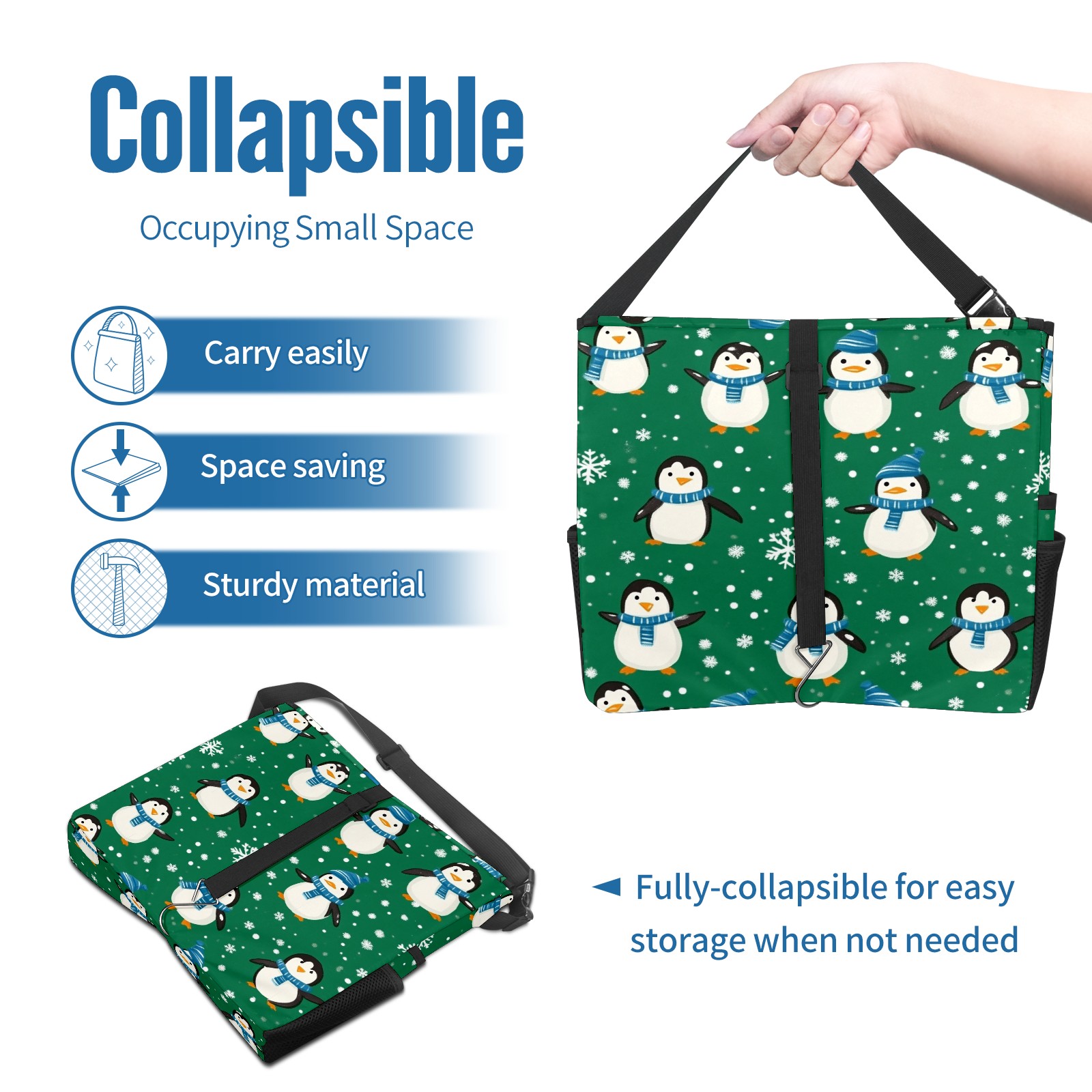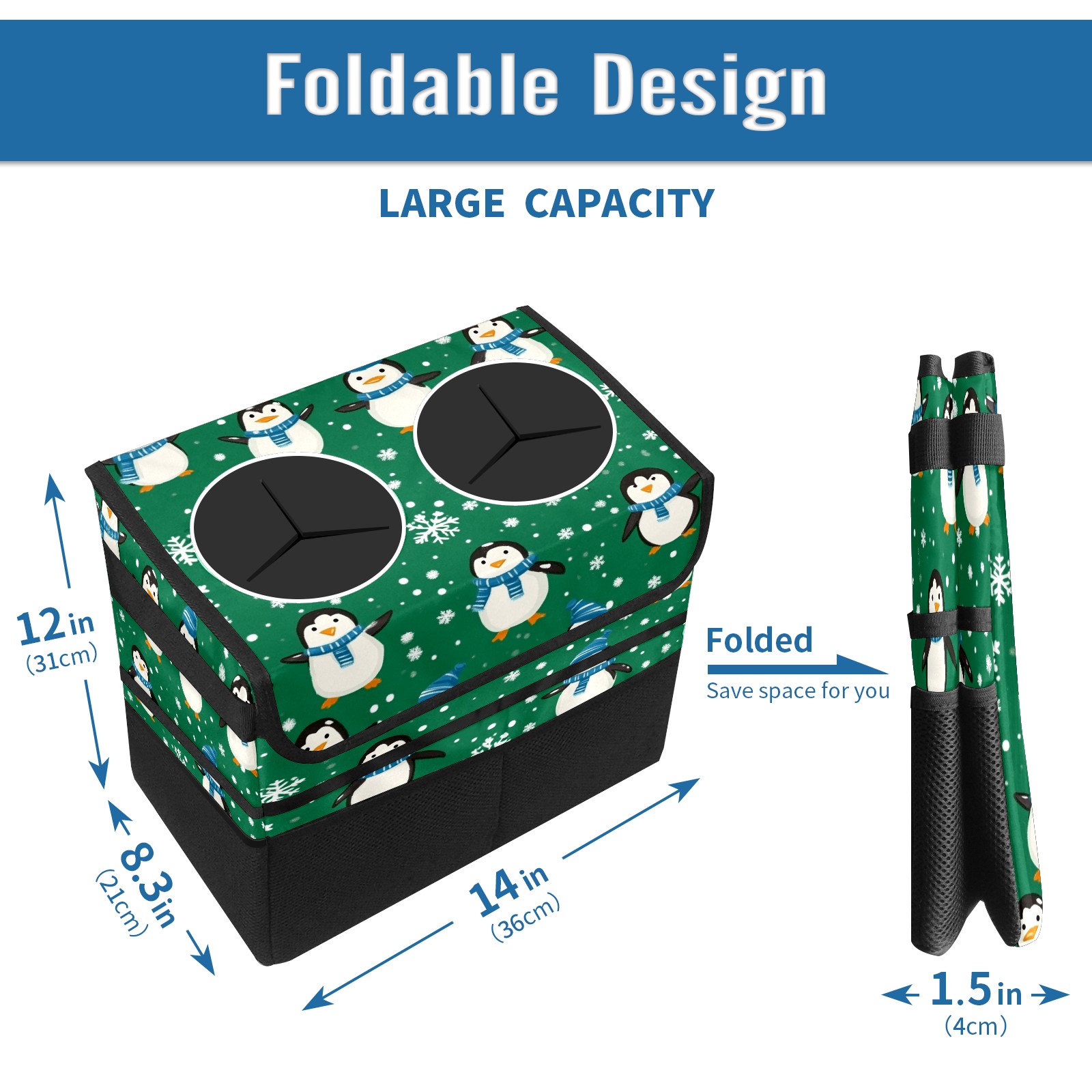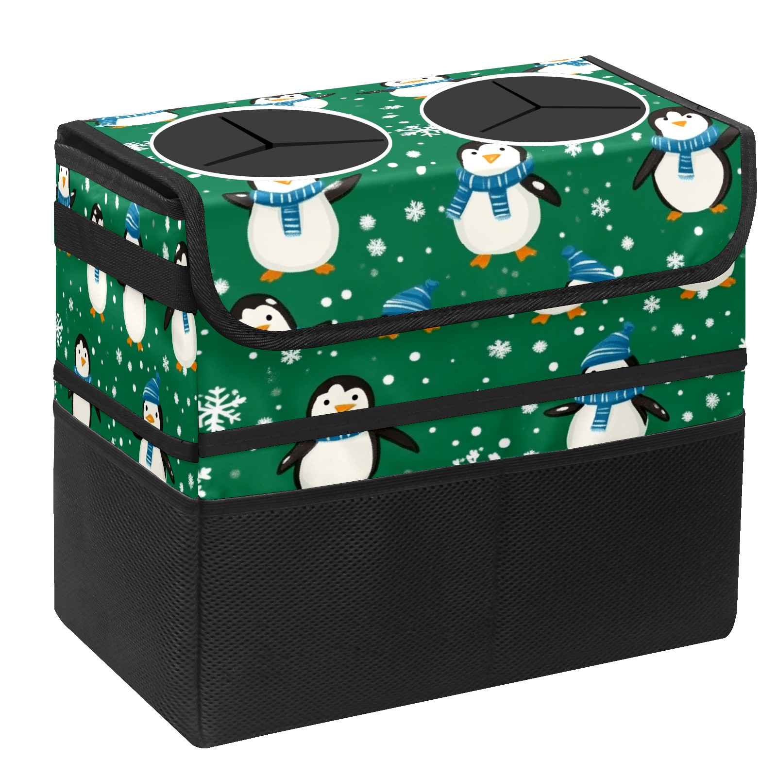 Car Trash Can with Lid, Portable Hanging Automotive Garbage Bin for Vehicles, Leakproof Waste Bag Container for SUV Truck Van Interior Auto Travel Road Trips(Penguins And Snowmen)
