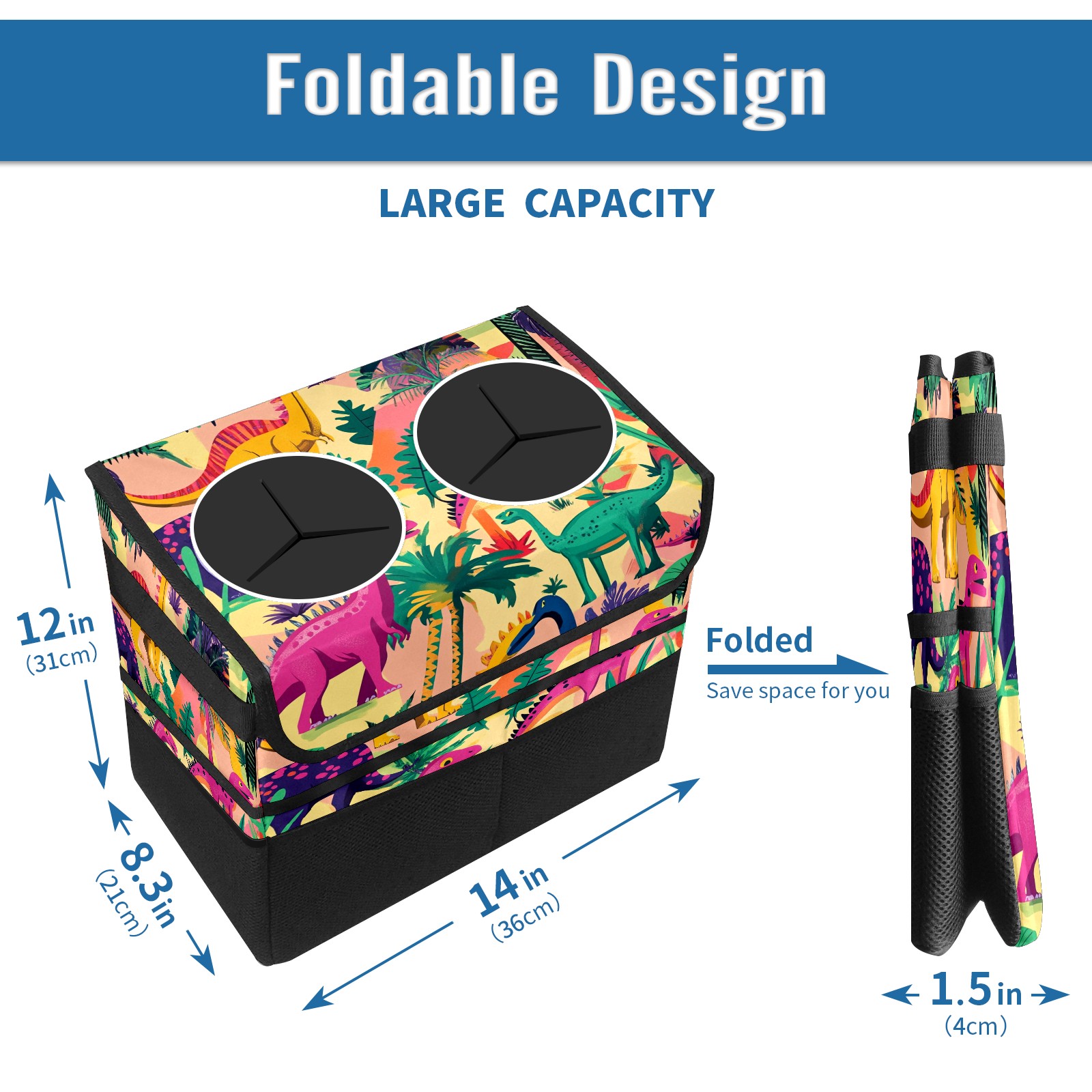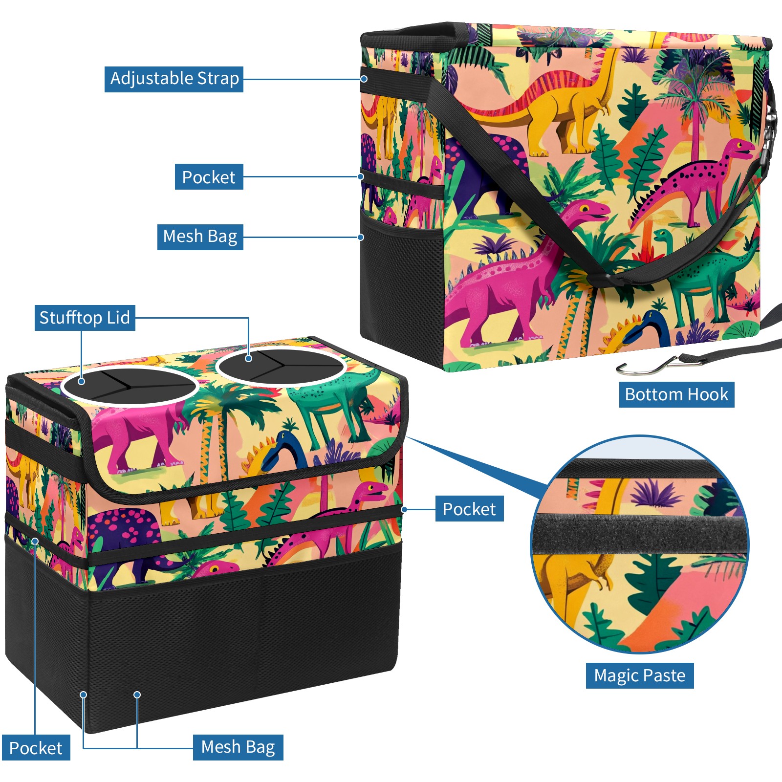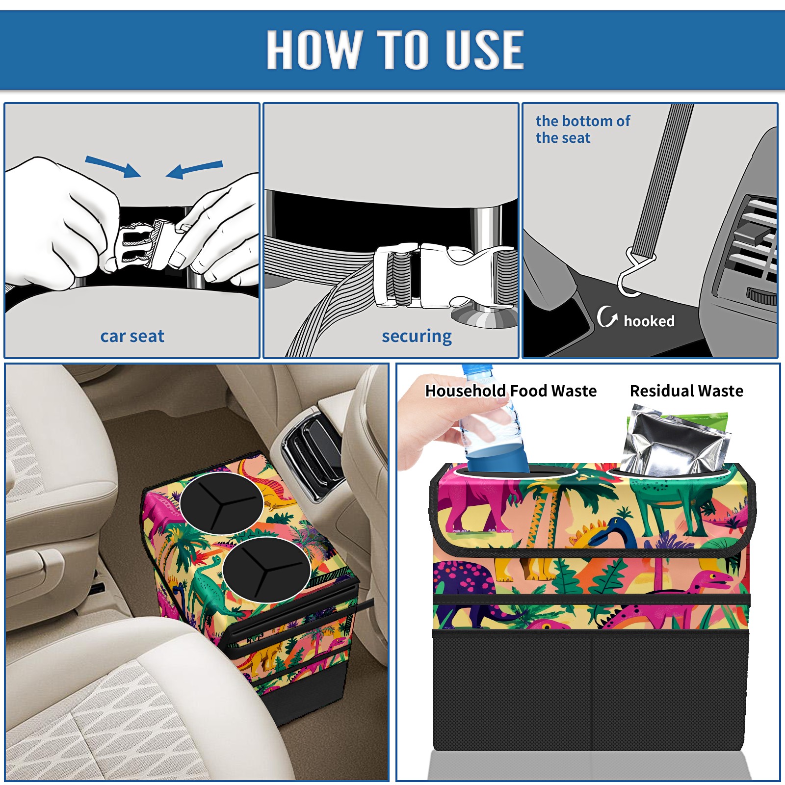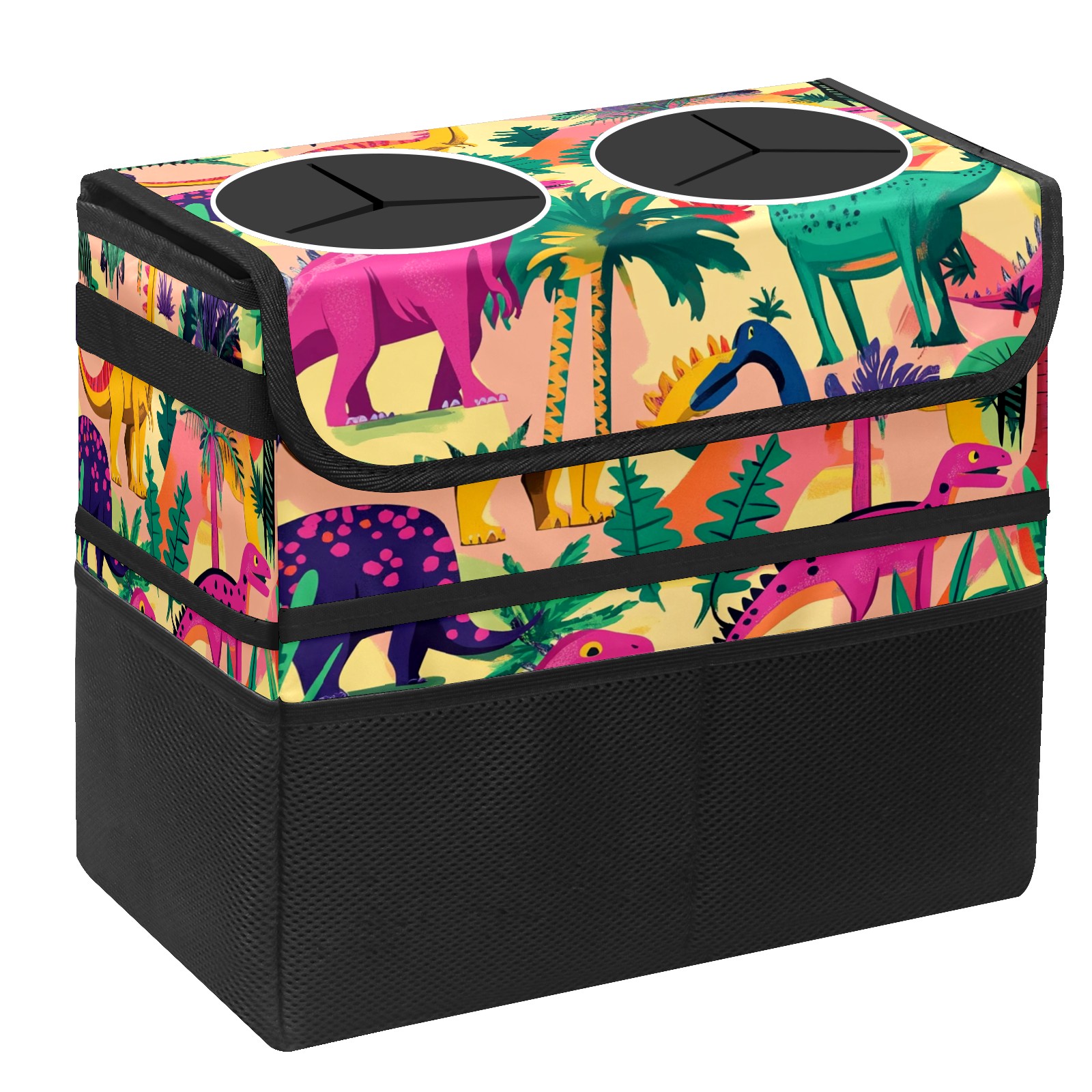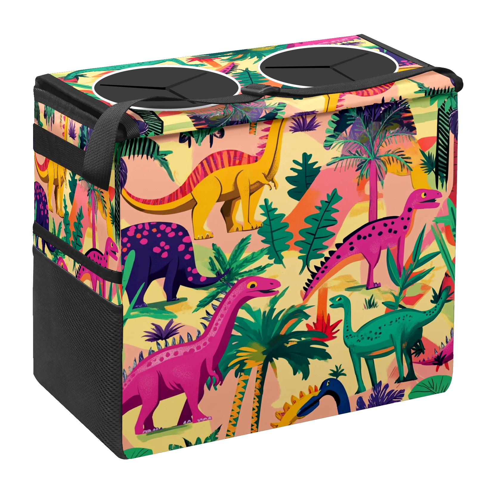 Car Trash Can with Lid, Portable Hanging Automotive Garbage Bin for Vehicles, Leakproof Waste Bag Container for SUV Truck Van Interior Auto Travel Road Trips(Dinosaurs)