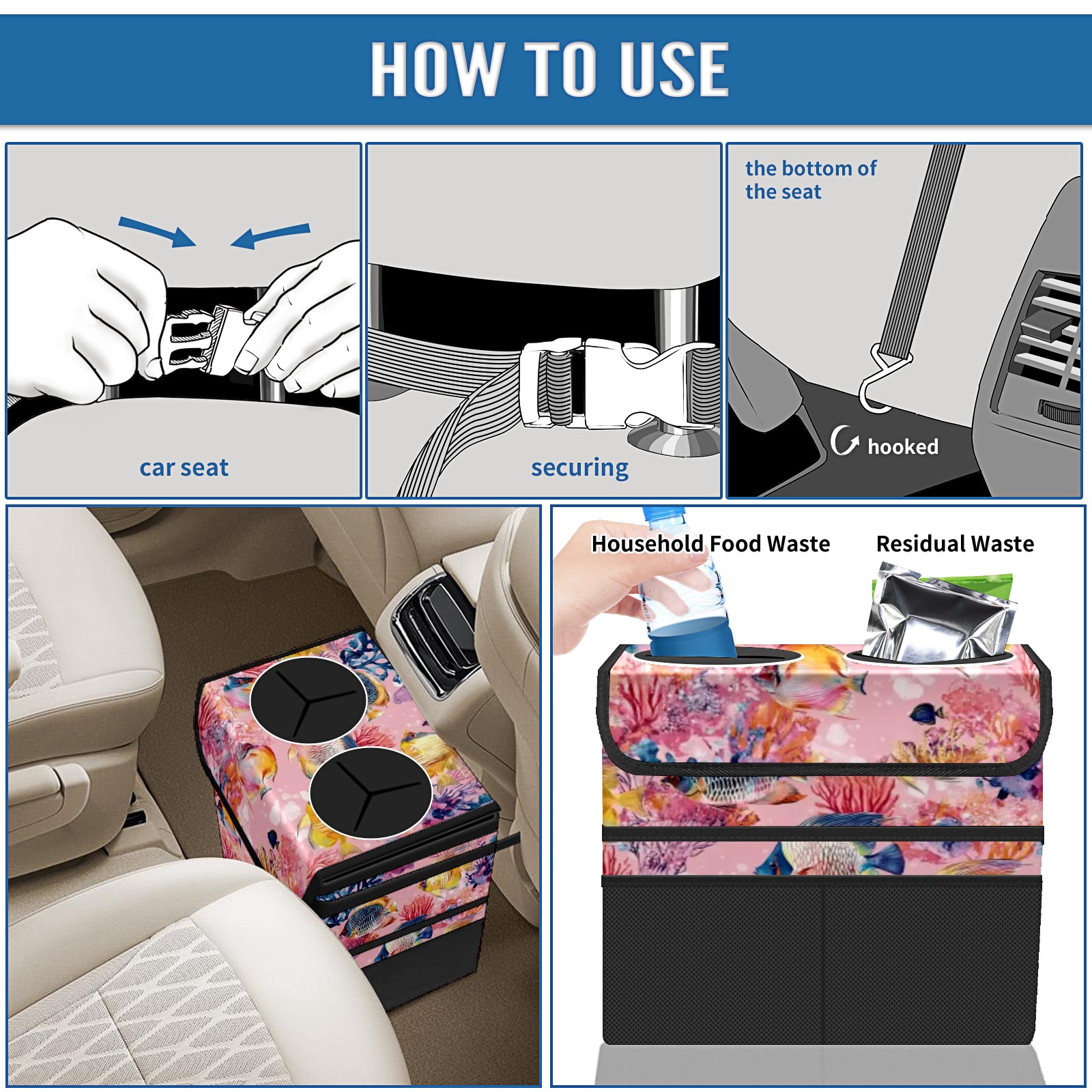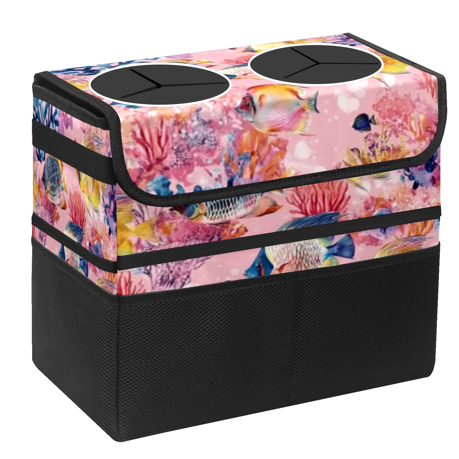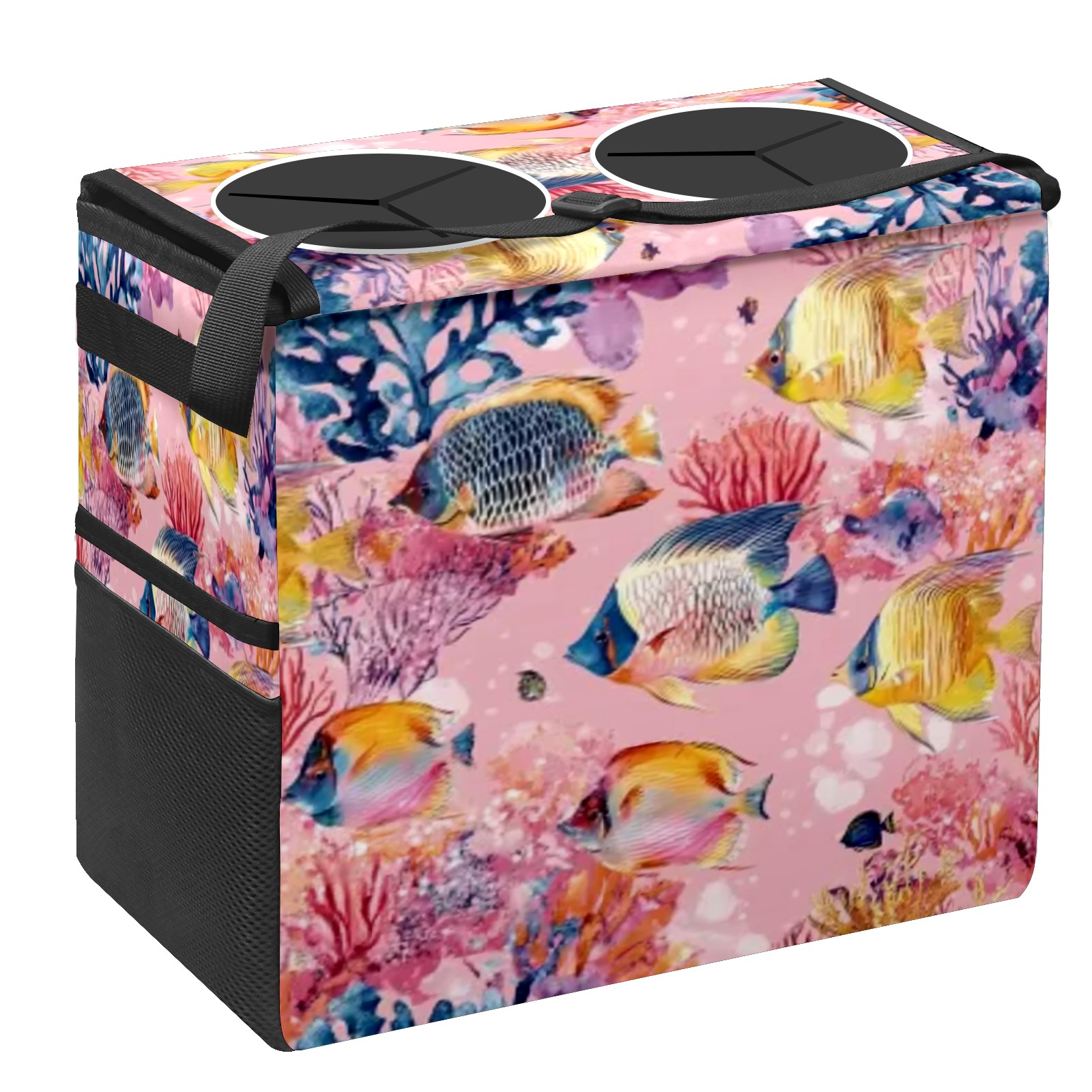 Car Trash Can with Lid, Portable Hanging Automotive Garbage Bin for Vehicles, Leakproof Waste Bag Container for SUV Truck Van Interior Auto Travel Road Trips(Tropical Fish)