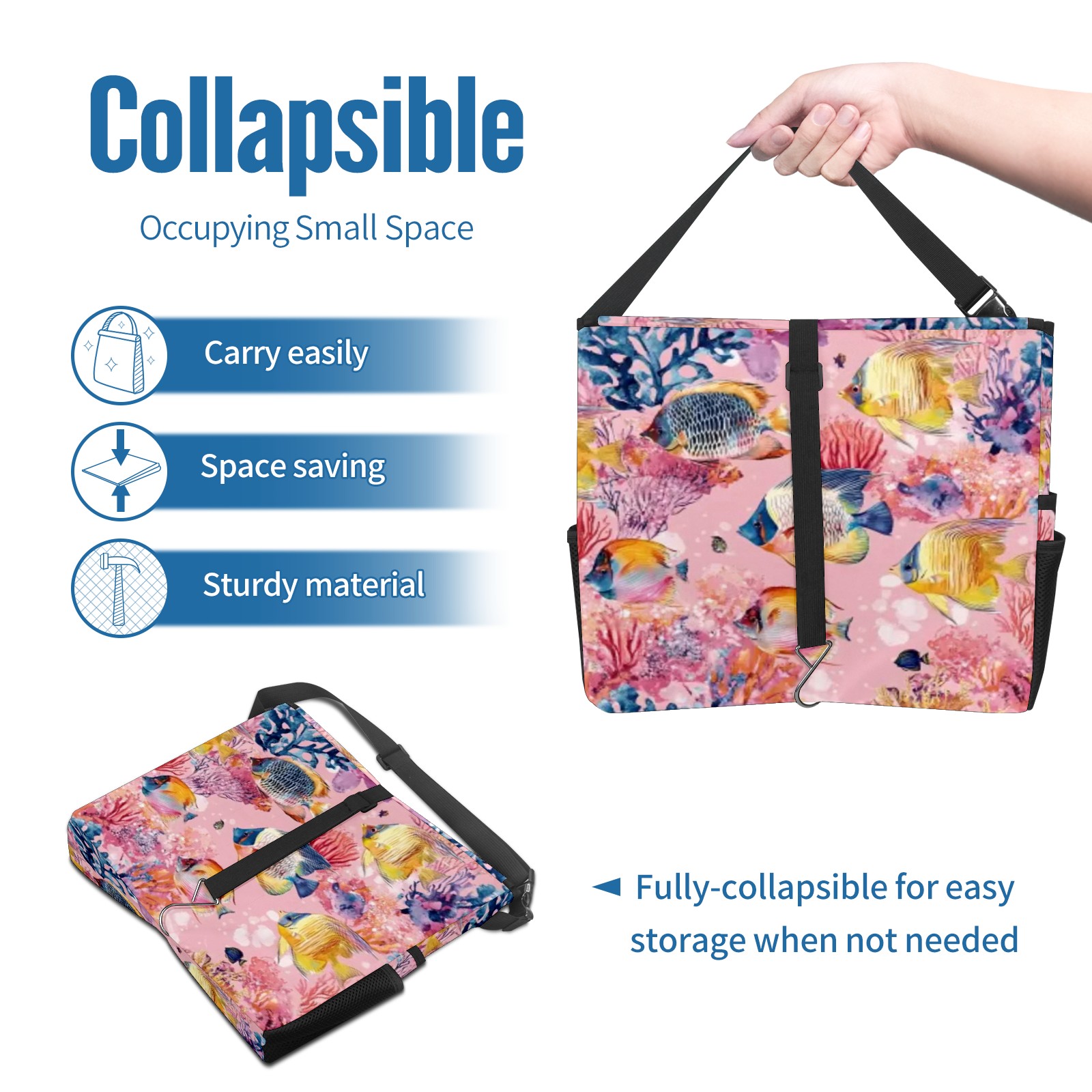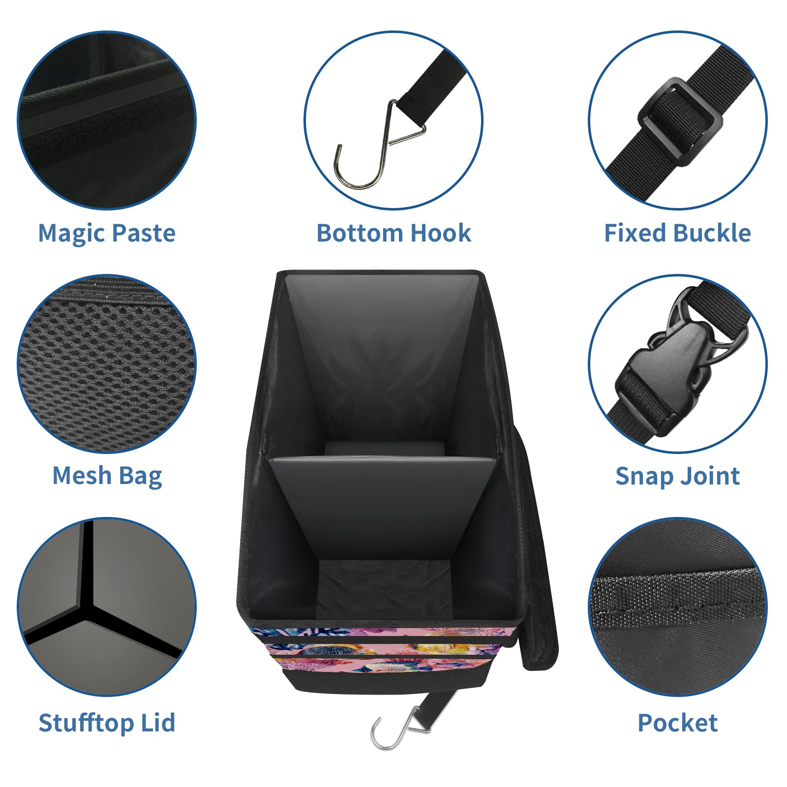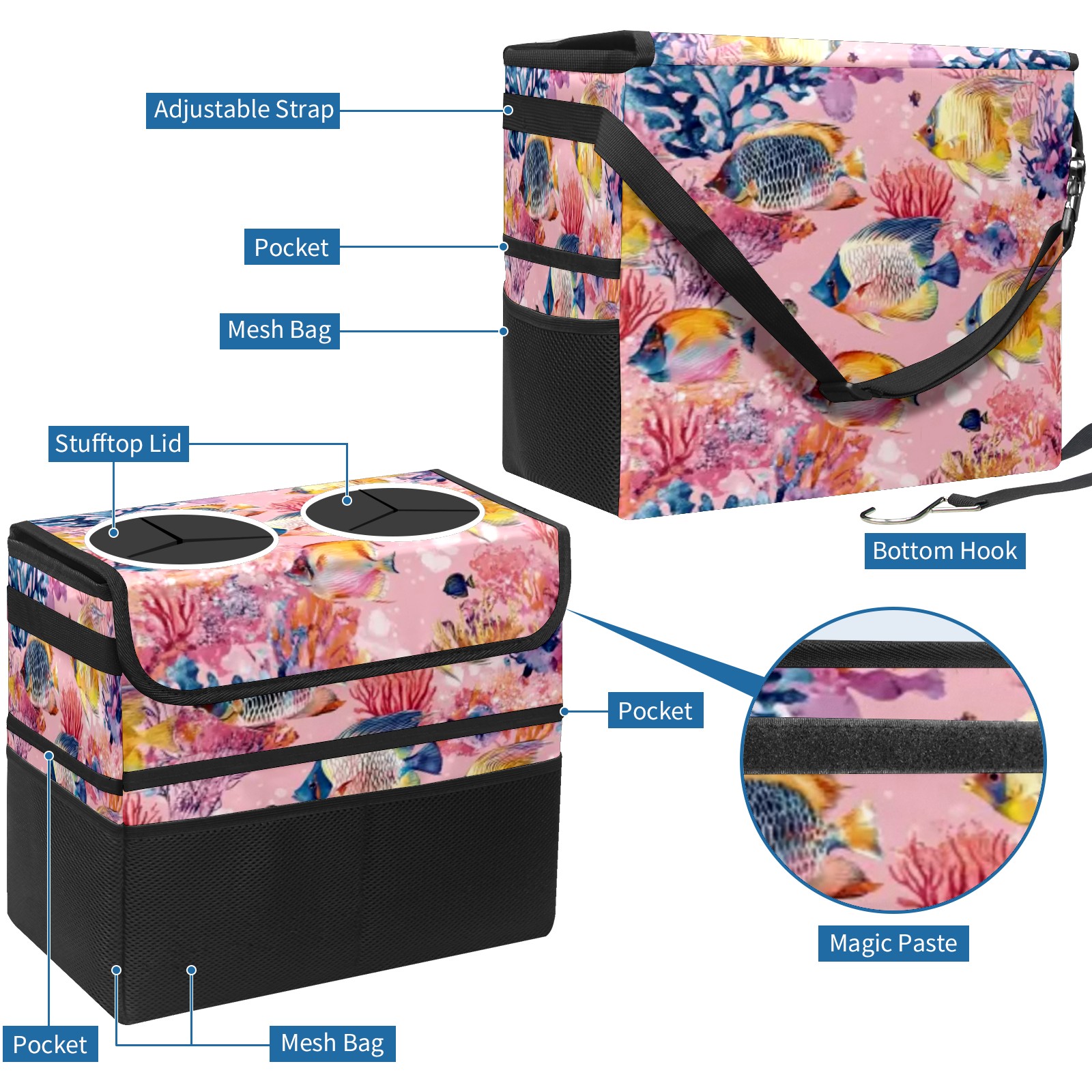 Car Trash Can with Lid, Portable Hanging Automotive Garbage Bin for Vehicles, Leakproof Waste Bag Container for SUV Truck Van Interior Auto Travel Road Trips(Tropical Fish)