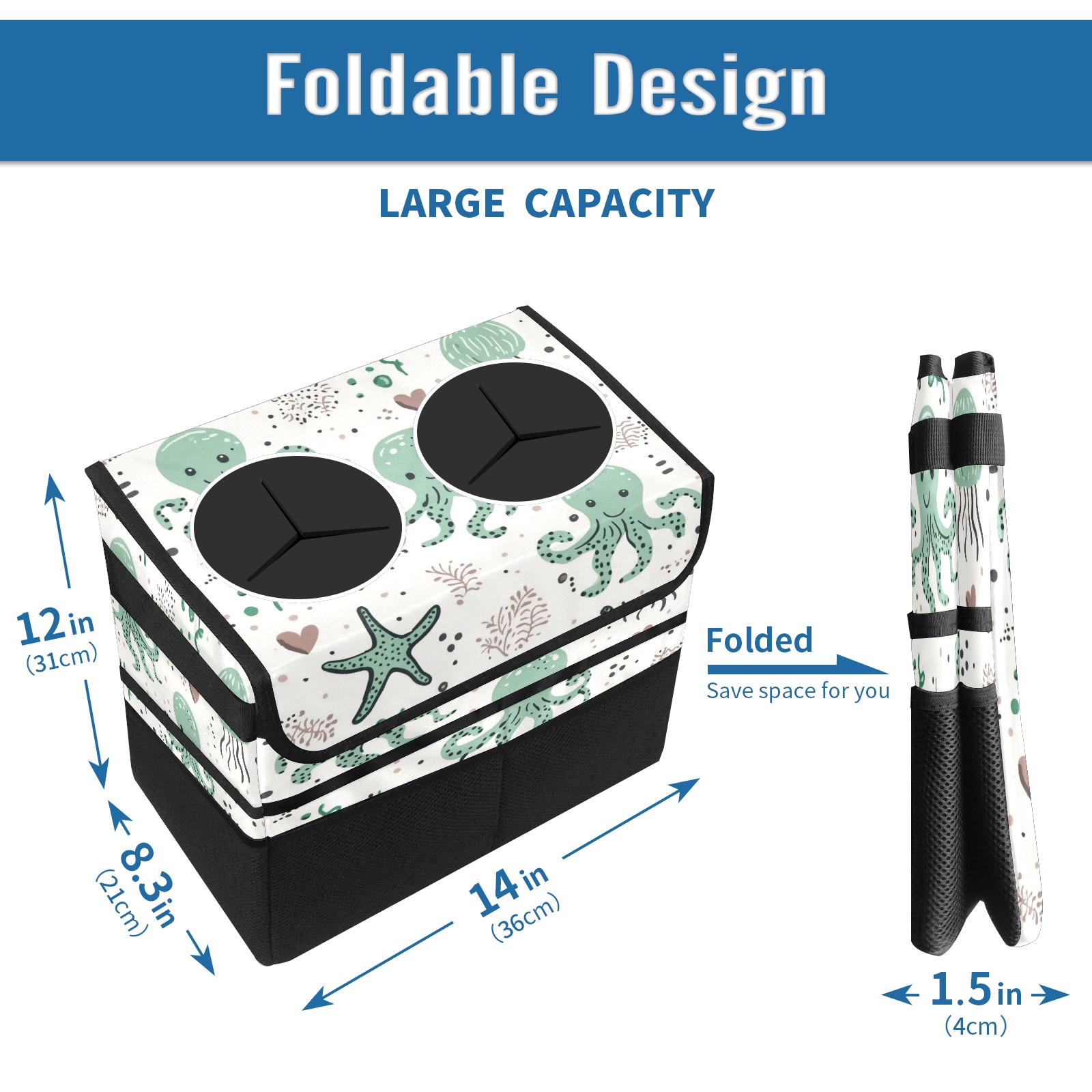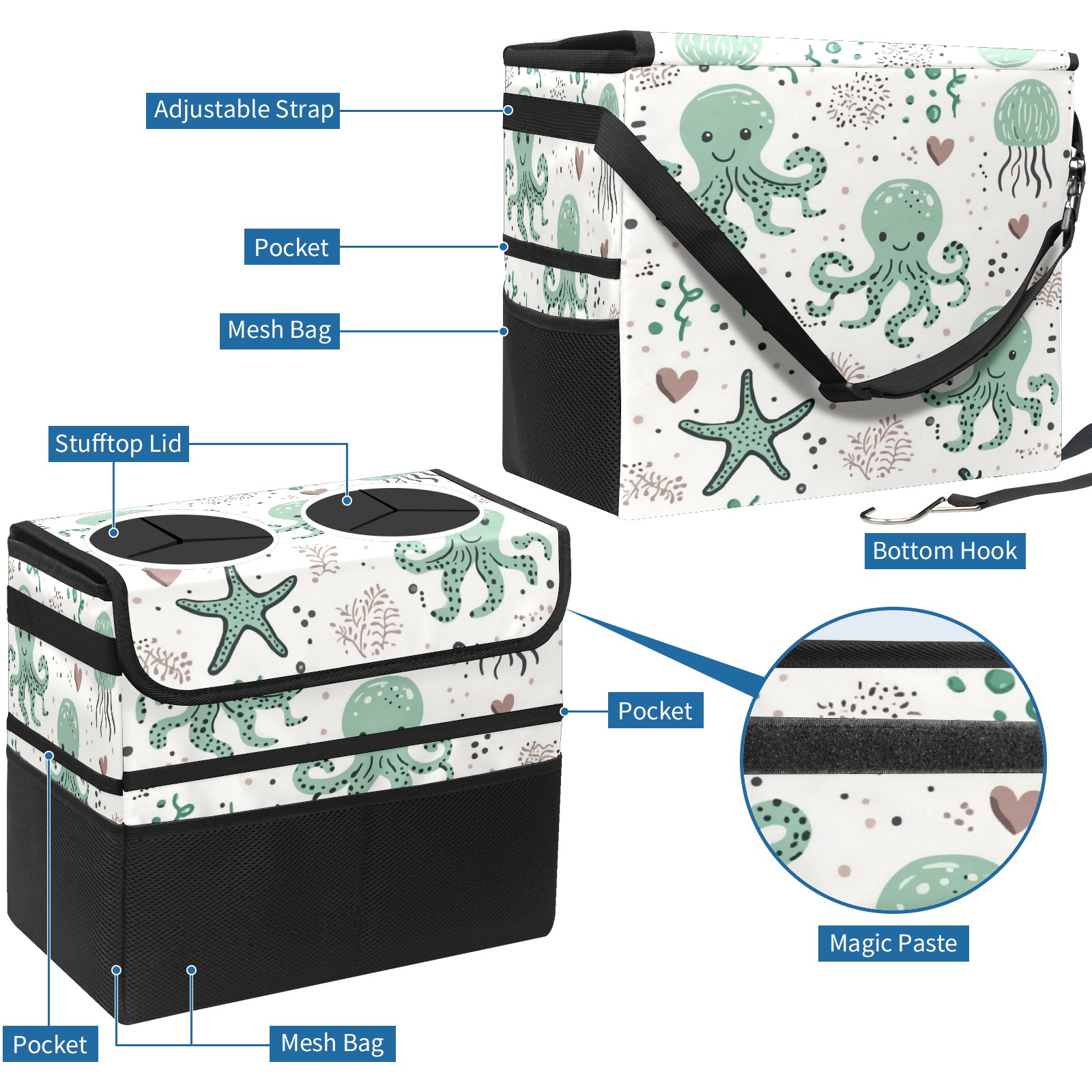 Car Trash Can with Lid, Portable Hanging Automotive Garbage Bin for Vehicles, Leakproof Waste Bag Container for SUV Truck Van Interior Auto Travel Road Trips(Cute Octopuses)