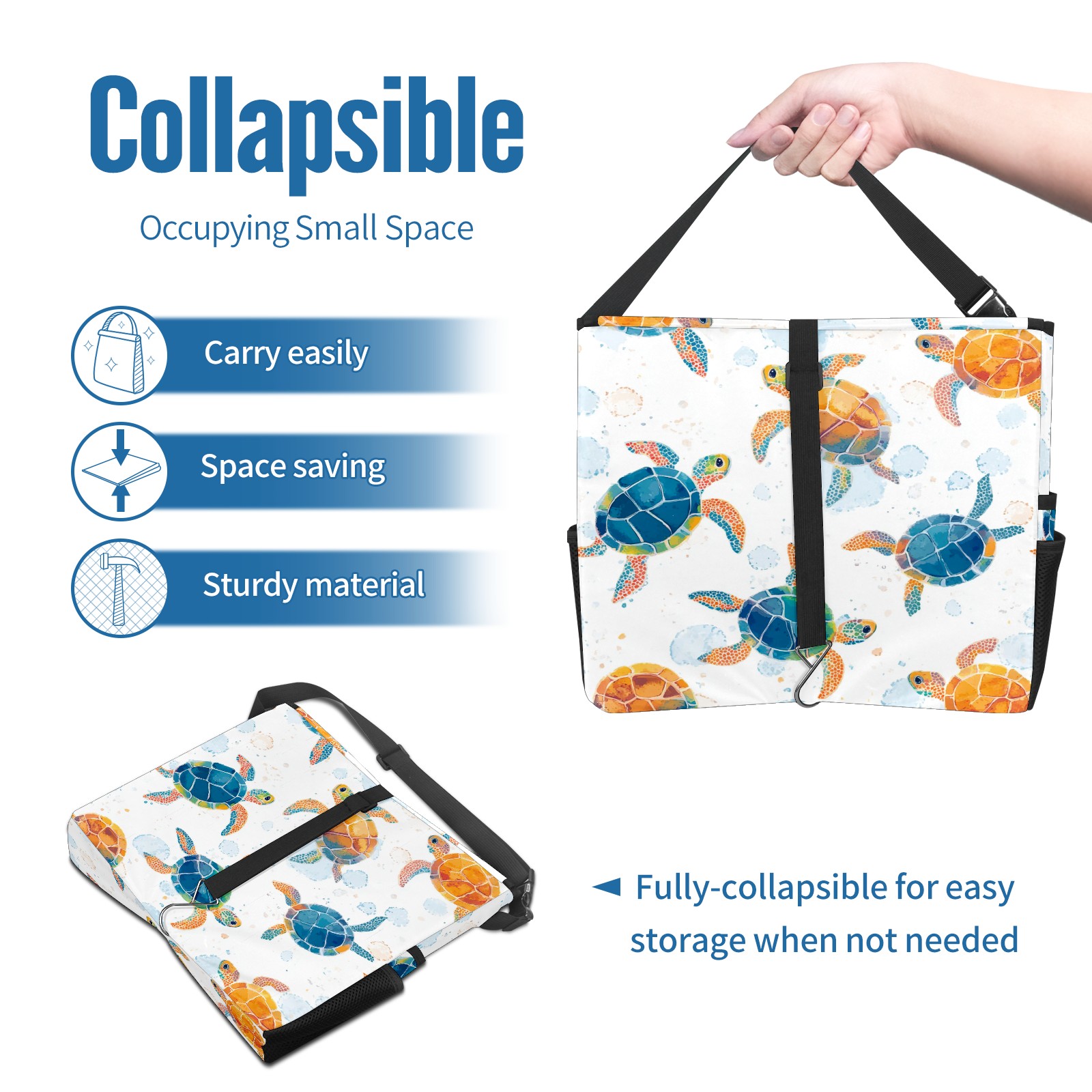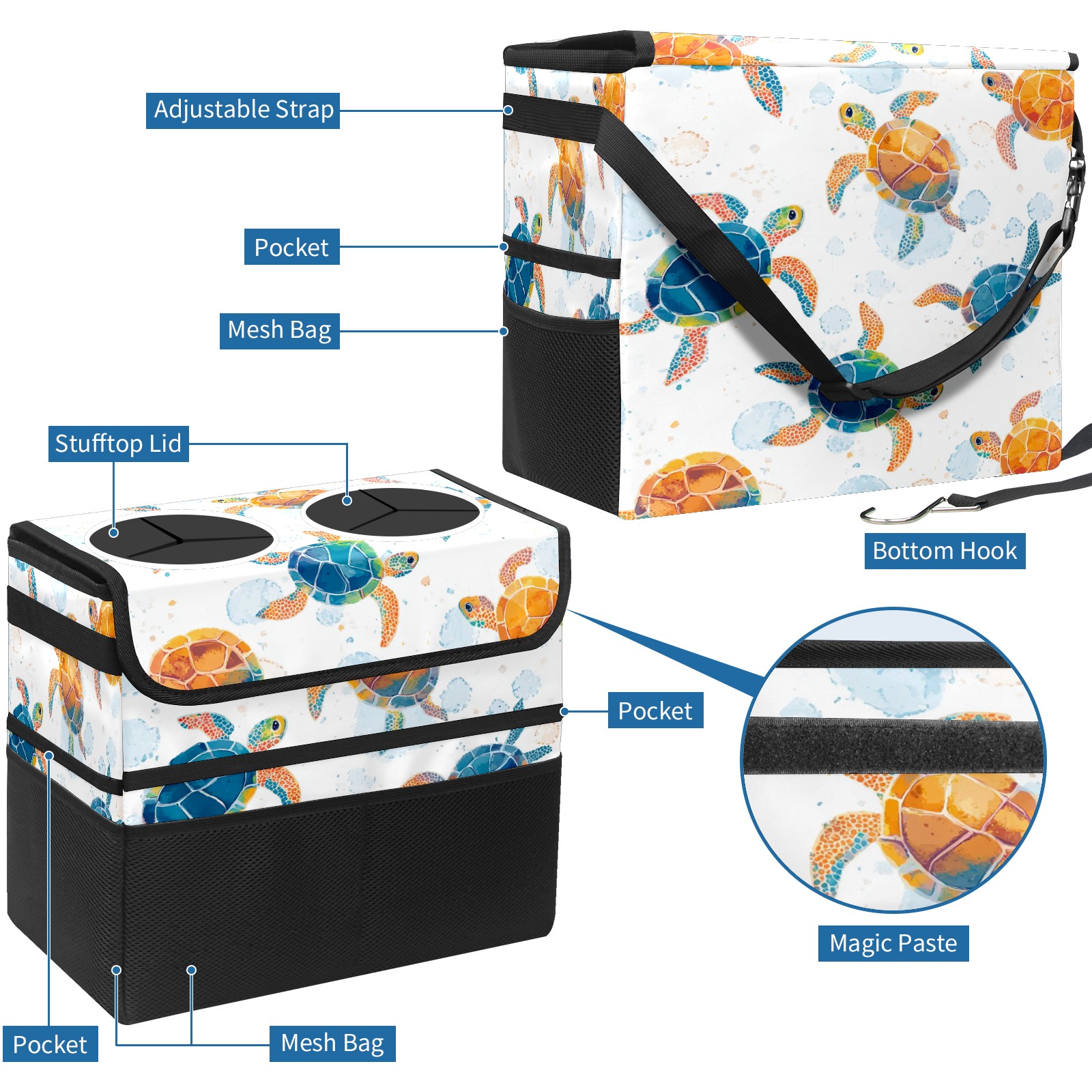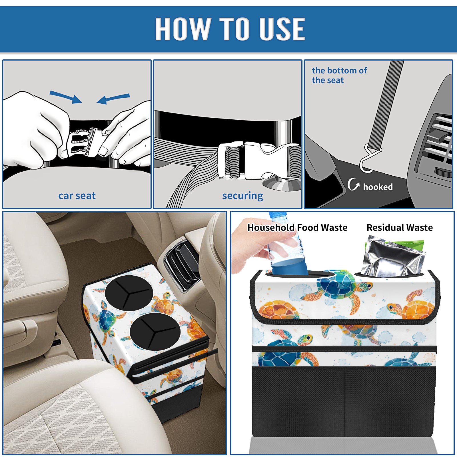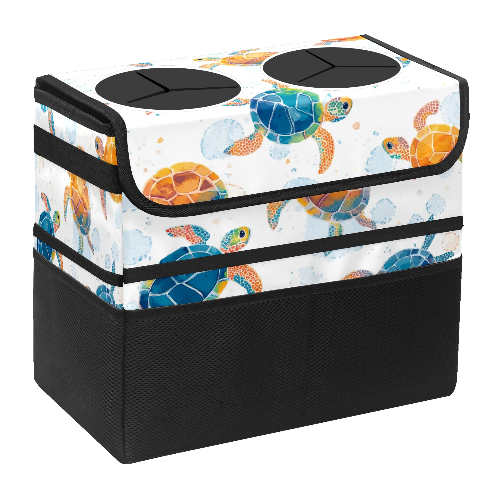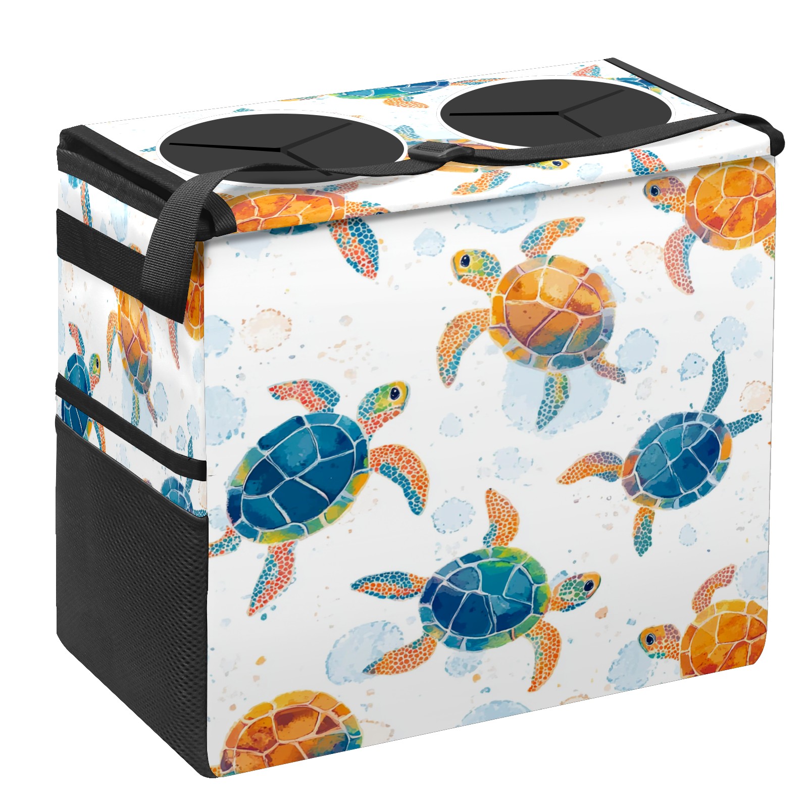 Car Trash Can with Lid, Portable Hanging Automotive Garbage Bin for Vehicles, Leakproof Waste Bag Container for SUV Truck Van Interior Auto Travel Road Trips(Colorful Sea Turtles)