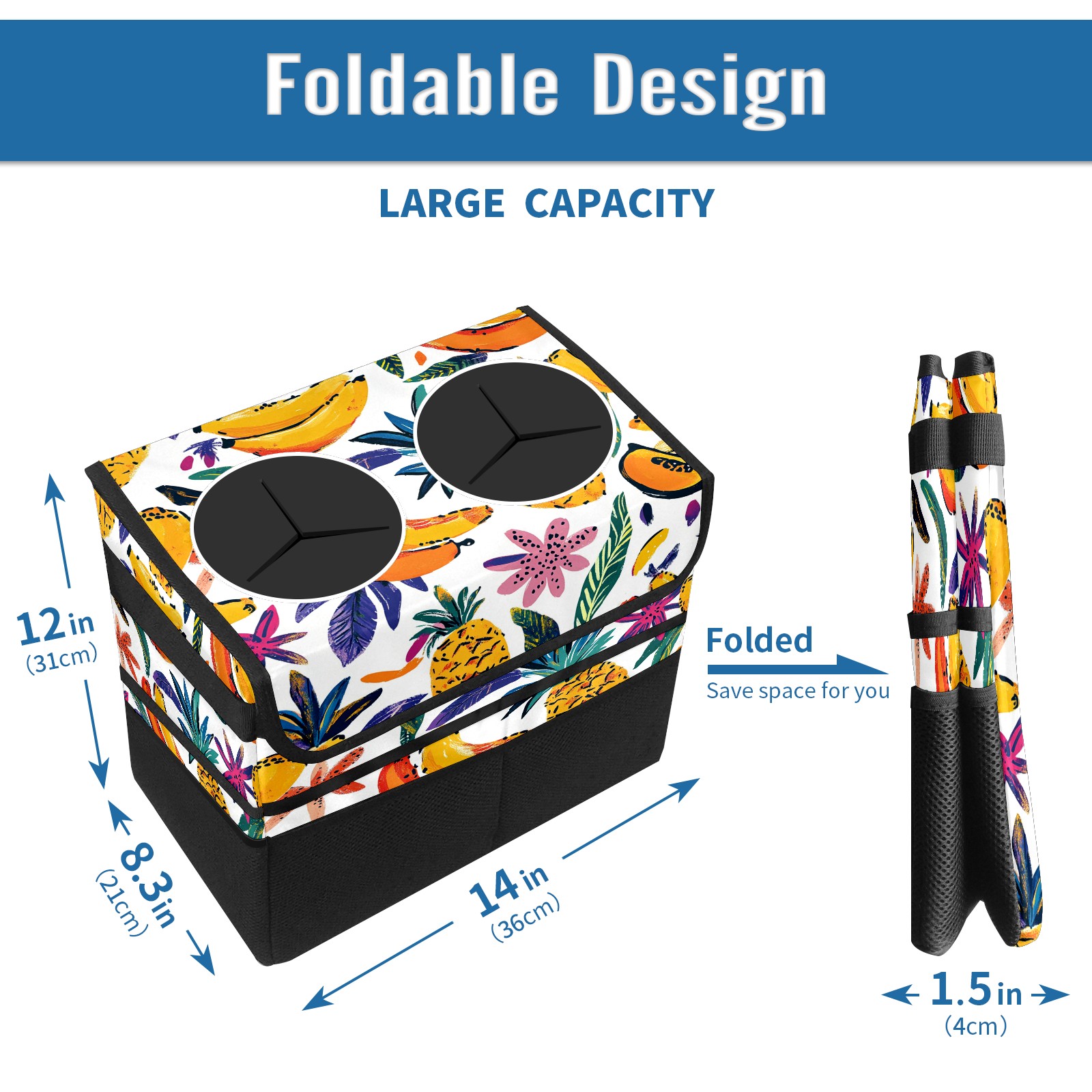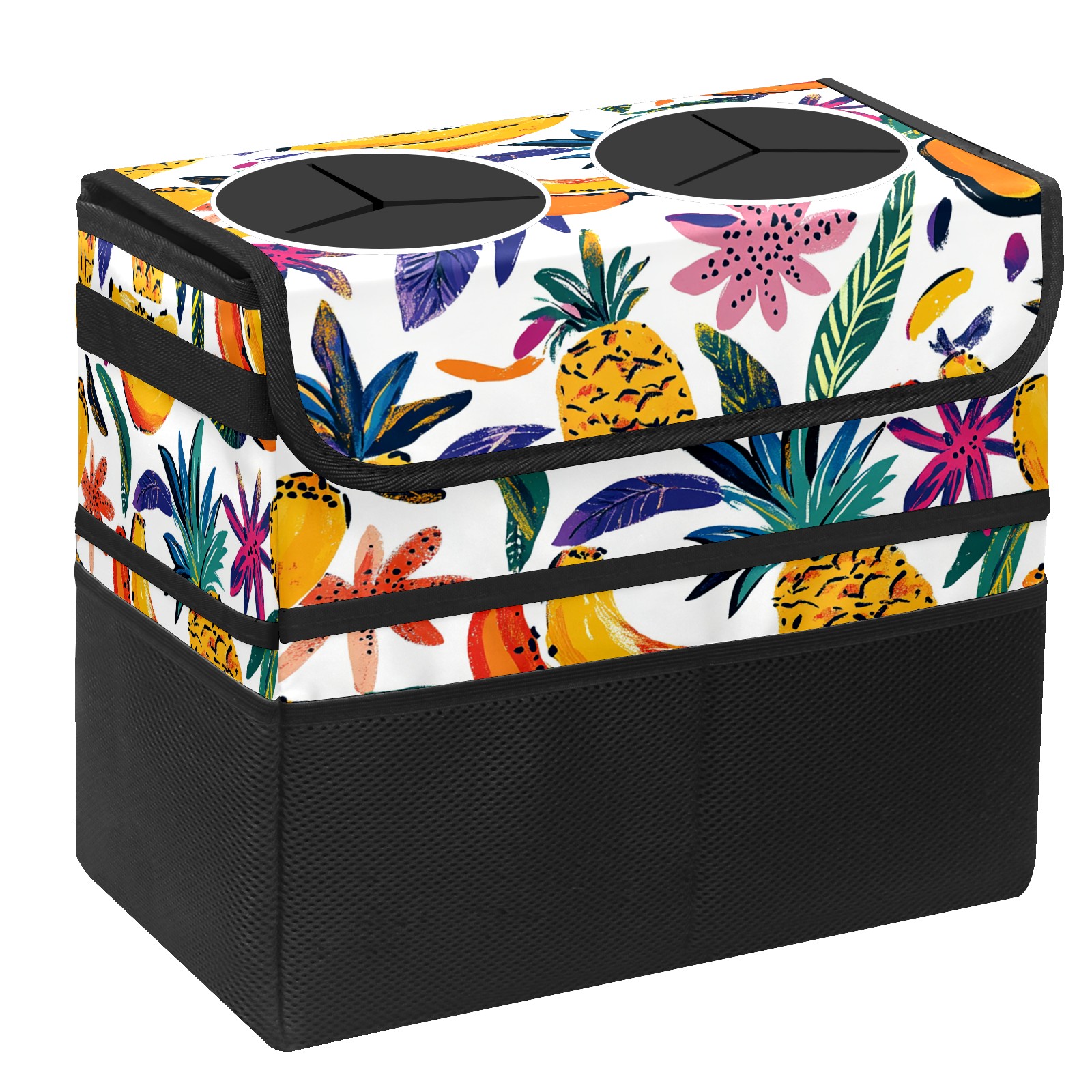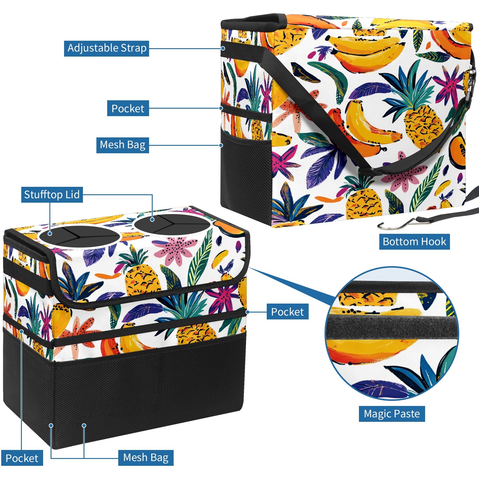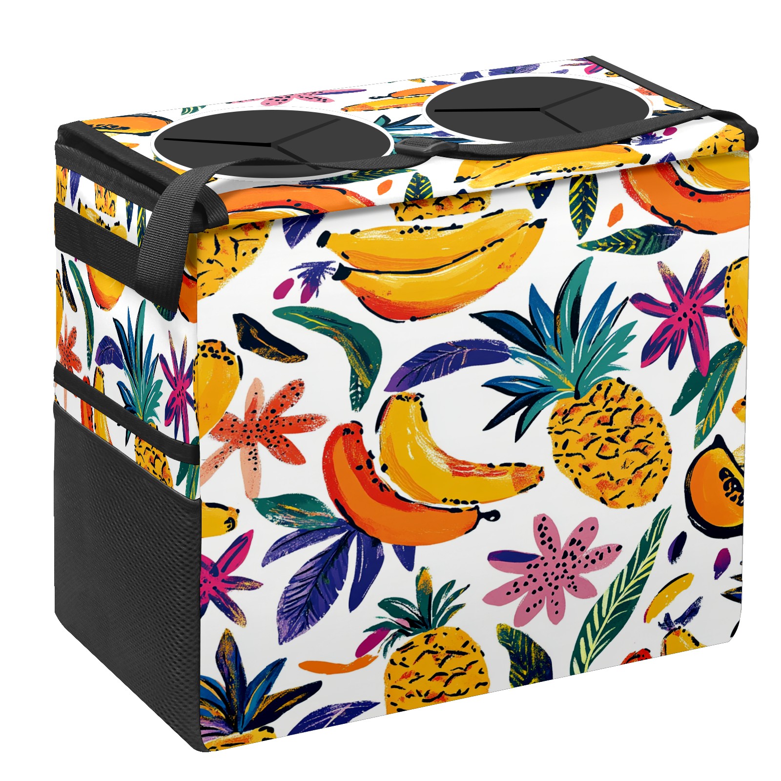 Car Trash Can with Lid, Portable Hanging Automotive Garbage Bin for Vehicles, Leakproof Waste Bag Container for SUV Truck Van Interior Auto Travel Road Trips(Colorful Tropical Pattern)