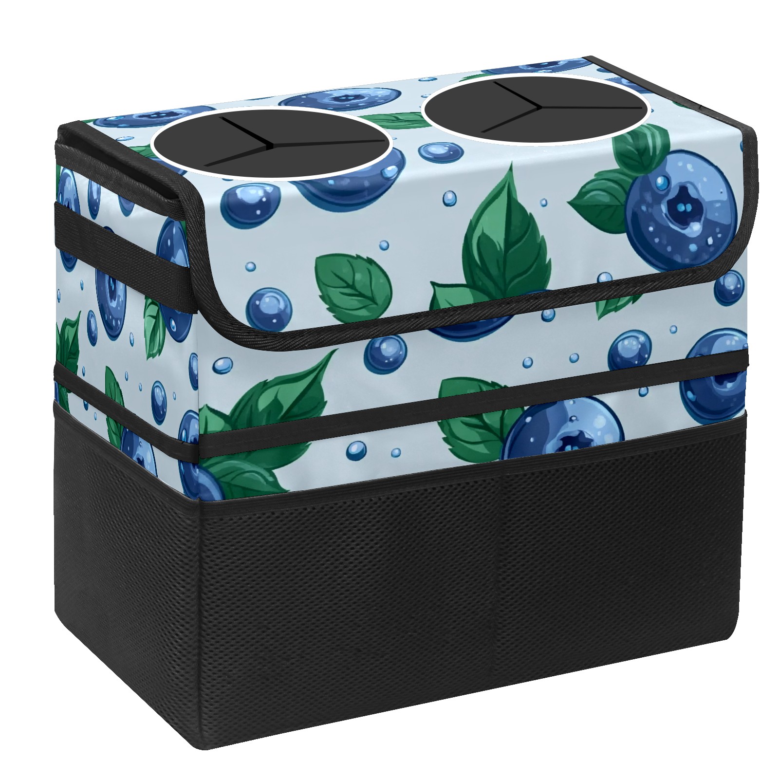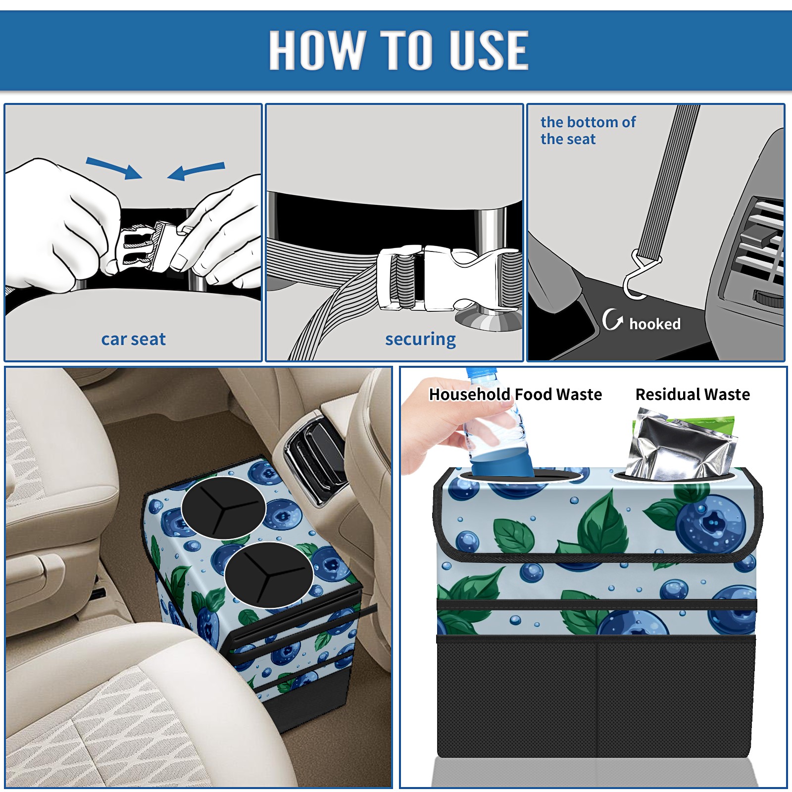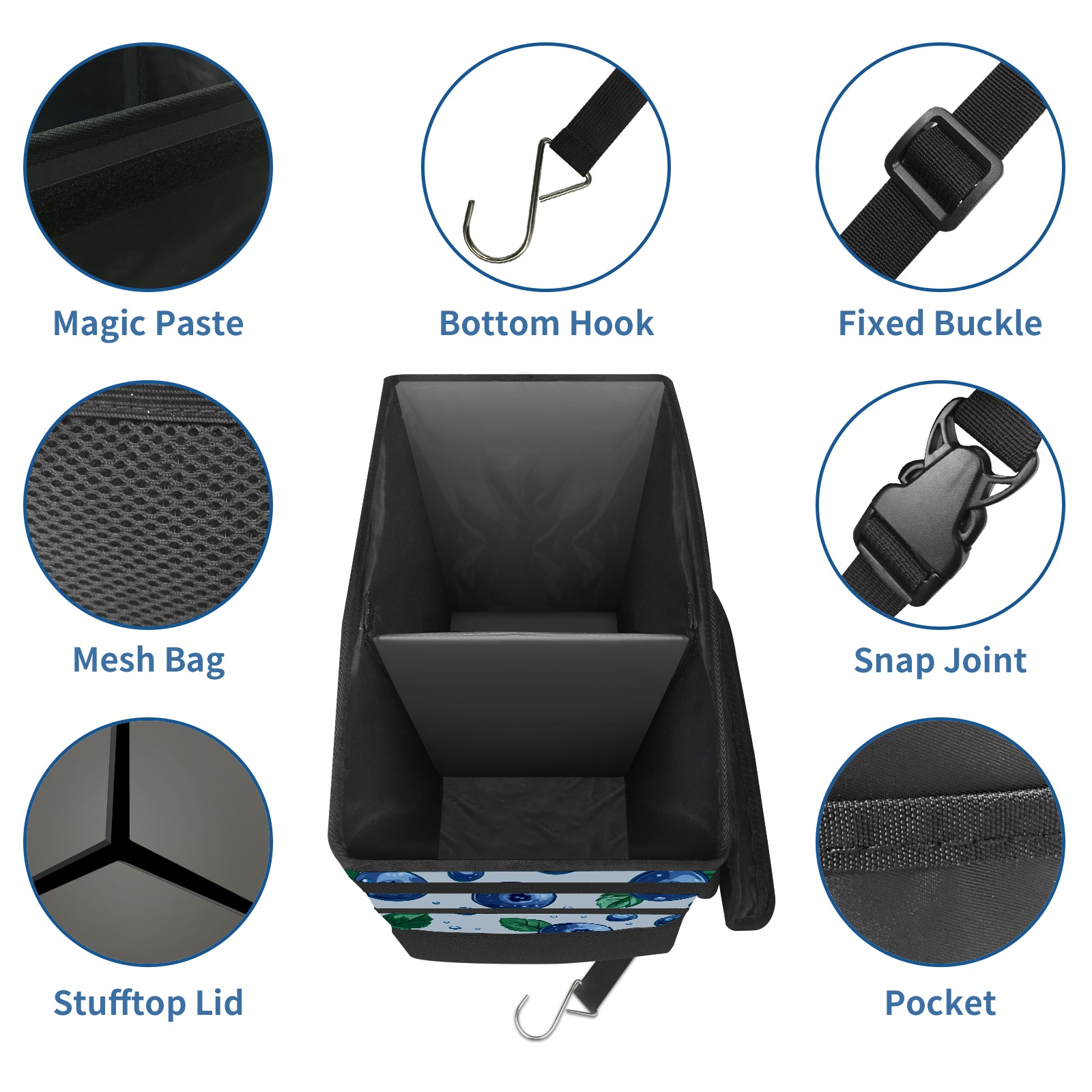 Car Trash Can with Lid, Portable Hanging Automotive Garbage Bin for Vehicles, Leakproof Waste Bag Container for SUV Truck Van Interior Auto Travel Road Trips(Blueberry)