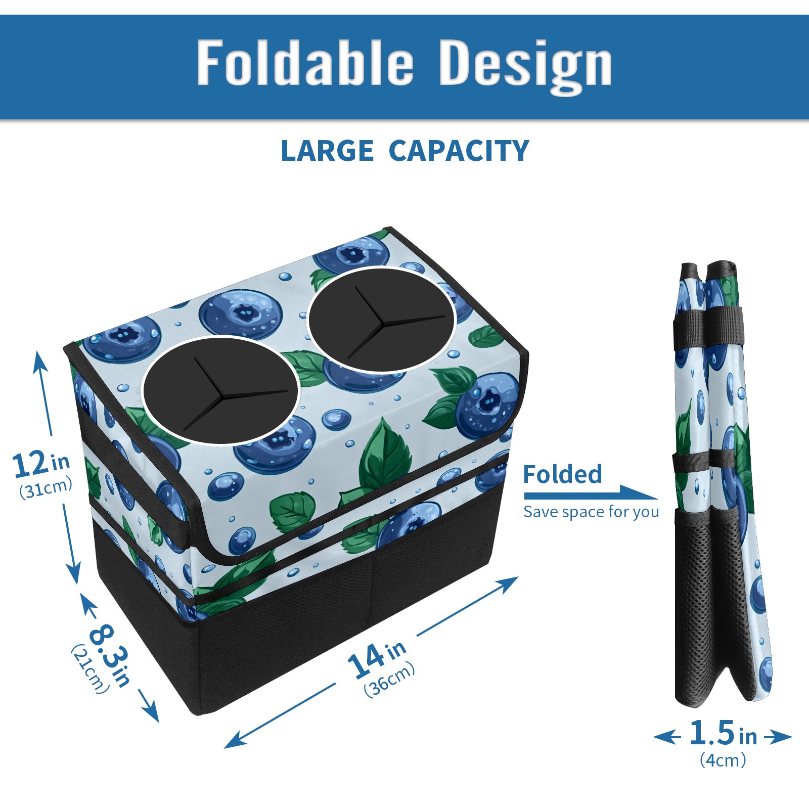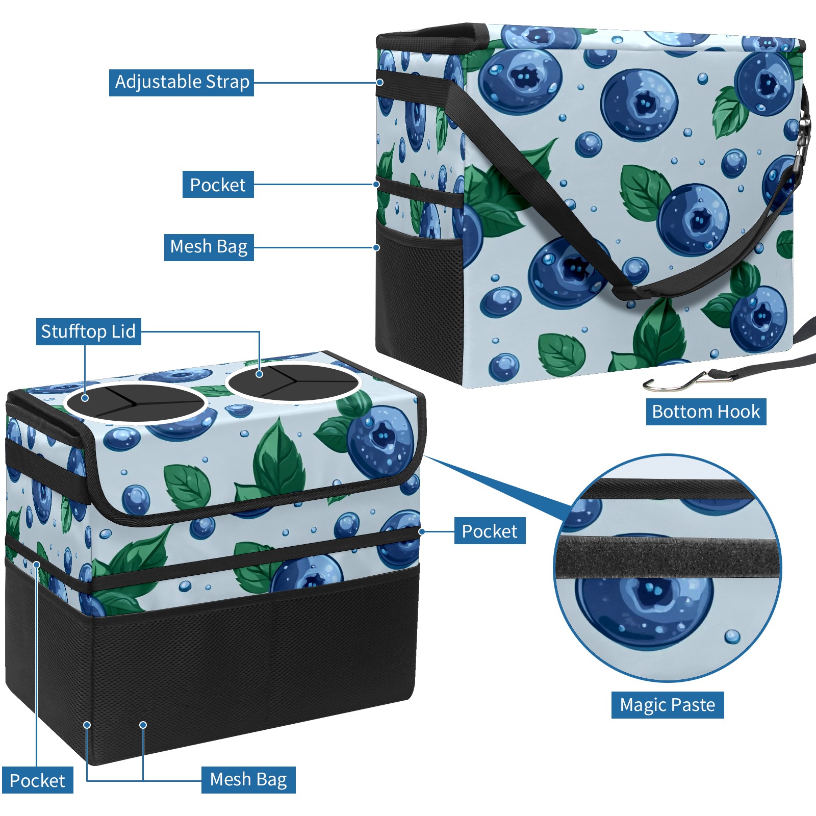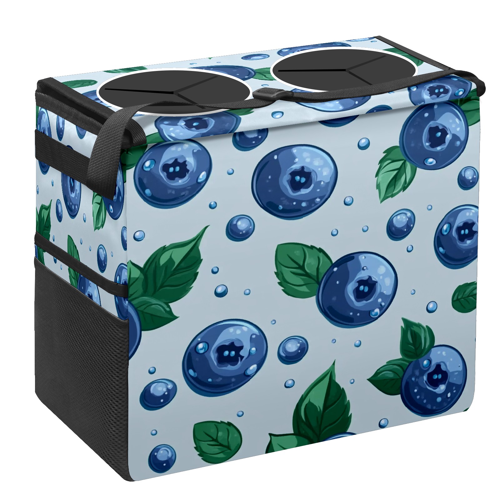 Car Trash Can with Lid, Portable Hanging Automotive Garbage Bin for Vehicles, Leakproof Waste Bag Container for SUV Truck Van Interior Auto Travel Road Trips(Blueberry)