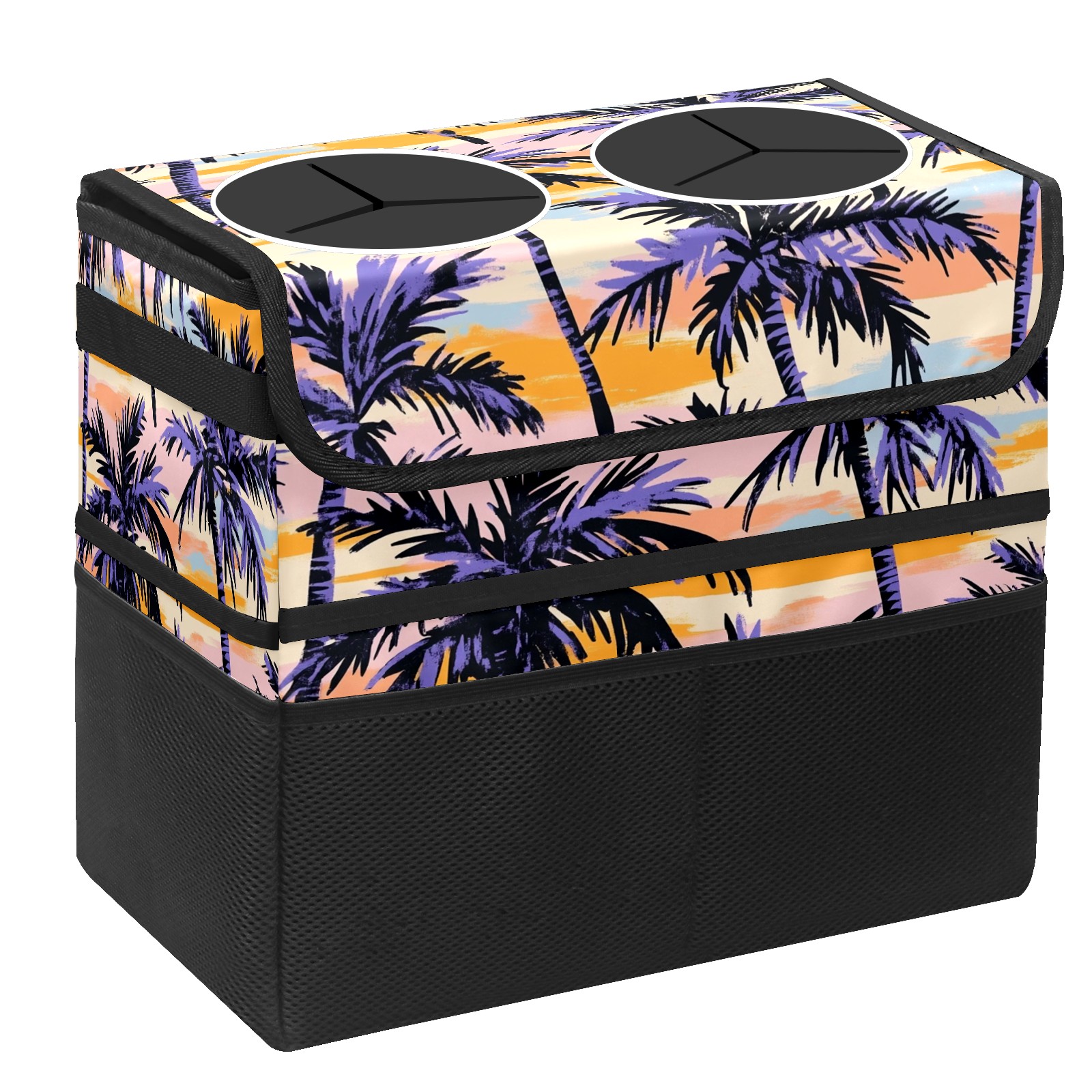 Car Trash Can with Lid, Portable Hanging Automotive Garbage Bin for Vehicles, Leakproof Waste Bag Container for SUV Truck Van Interior Auto Travel Road Trips(Retro Pattern)