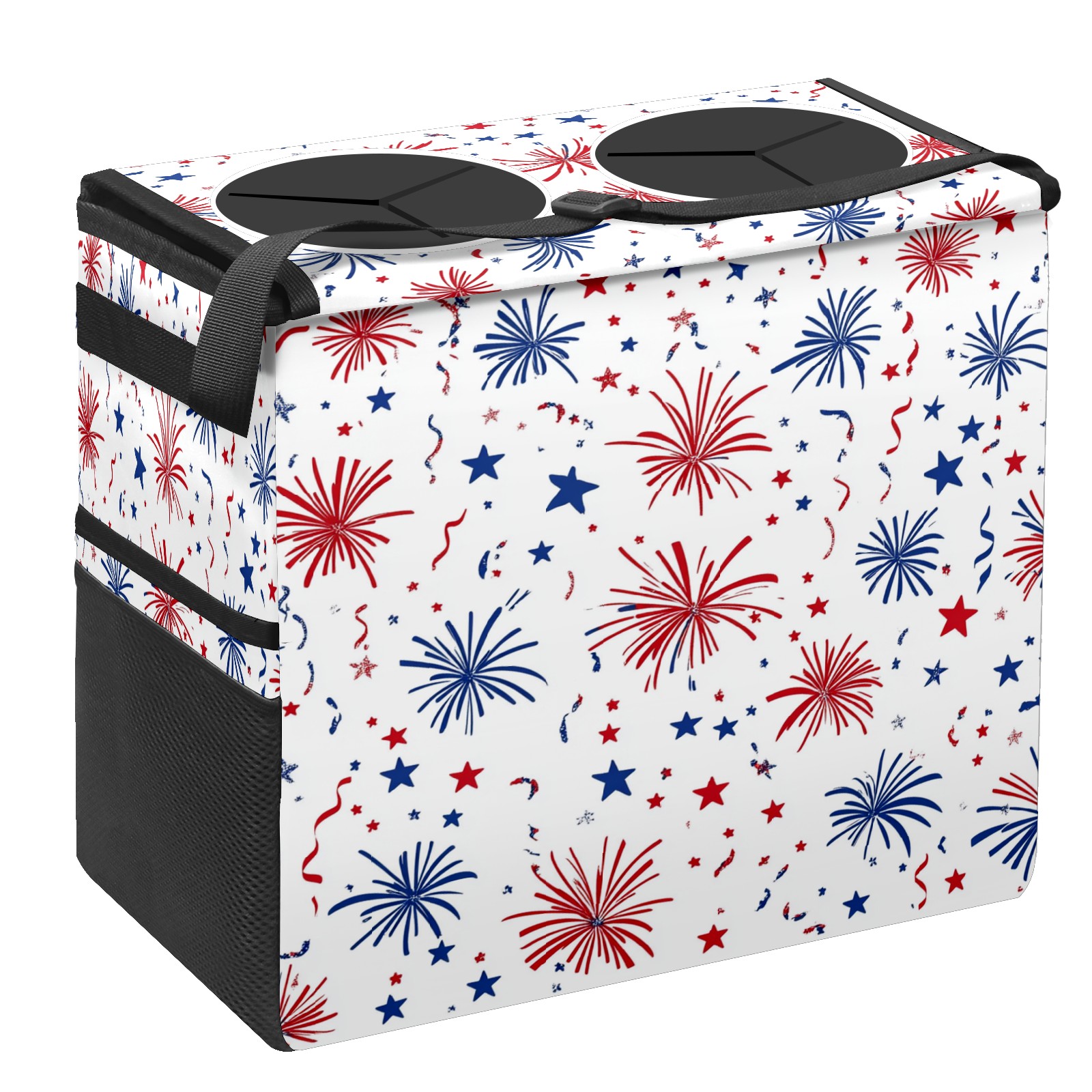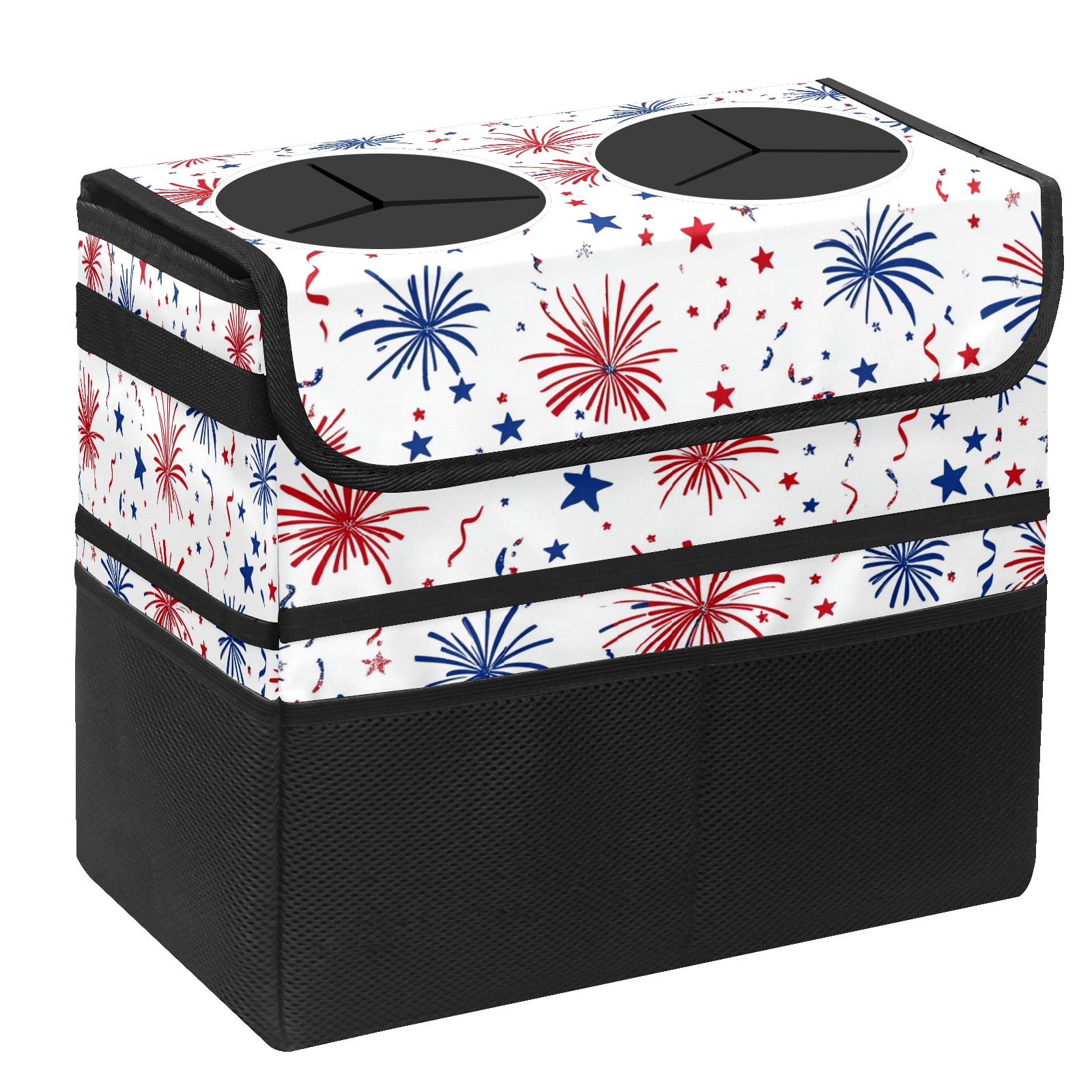 Car Trash Can with Lid, Portable Hanging Automotive Garbage Bin for Vehicles, Leakproof Waste Bag Container for SUV Truck Van Interior Auto Travel Road Trips(Red And Blue Firework)