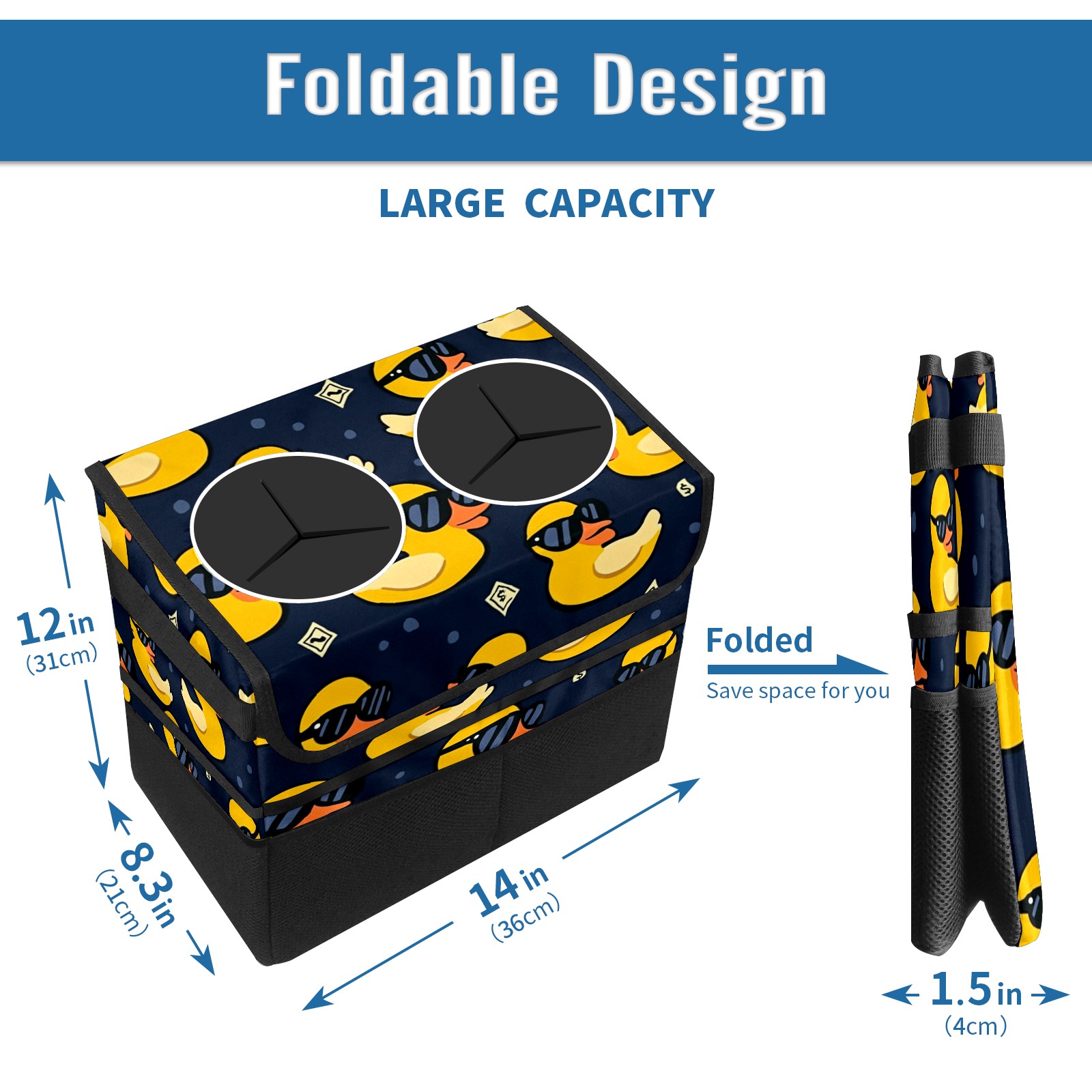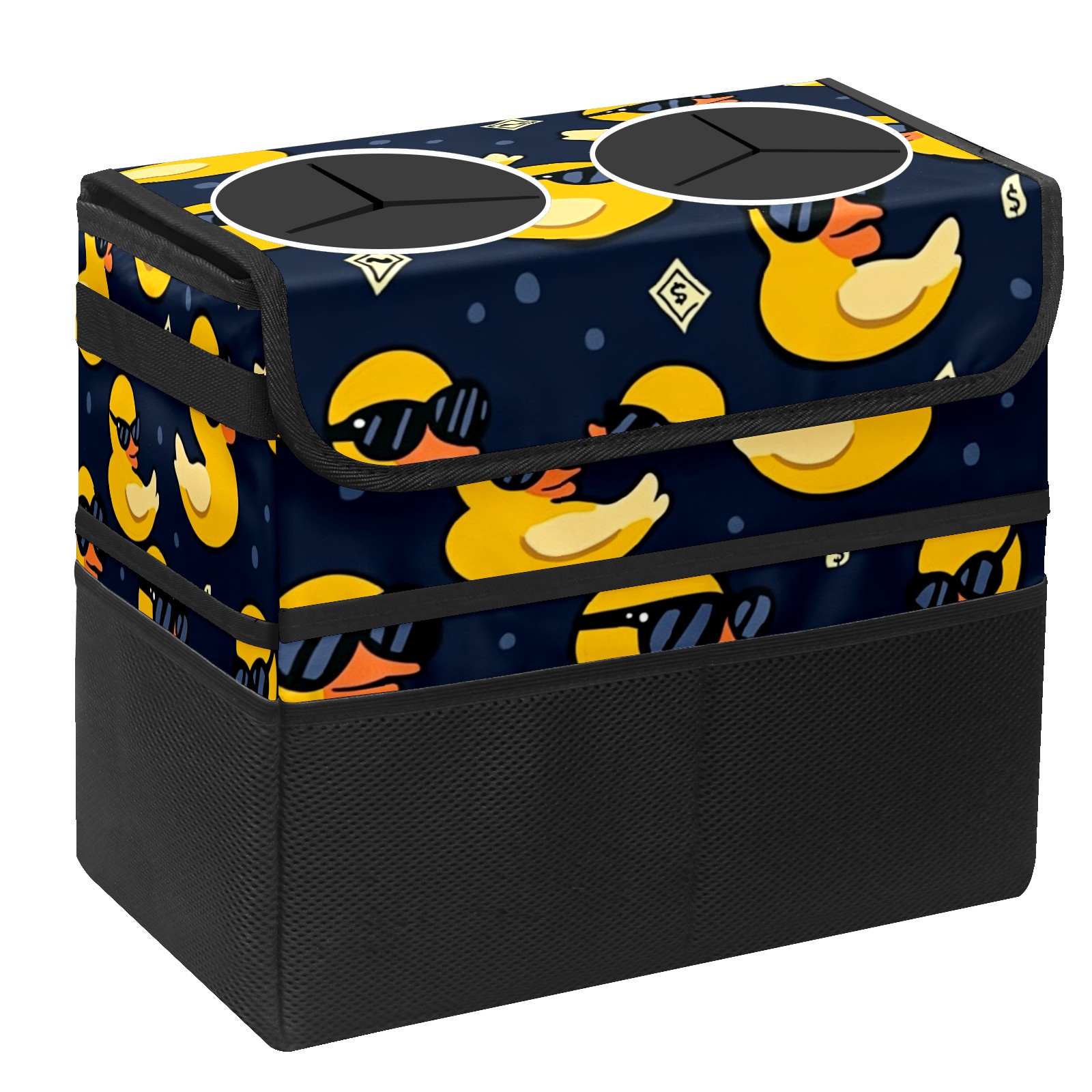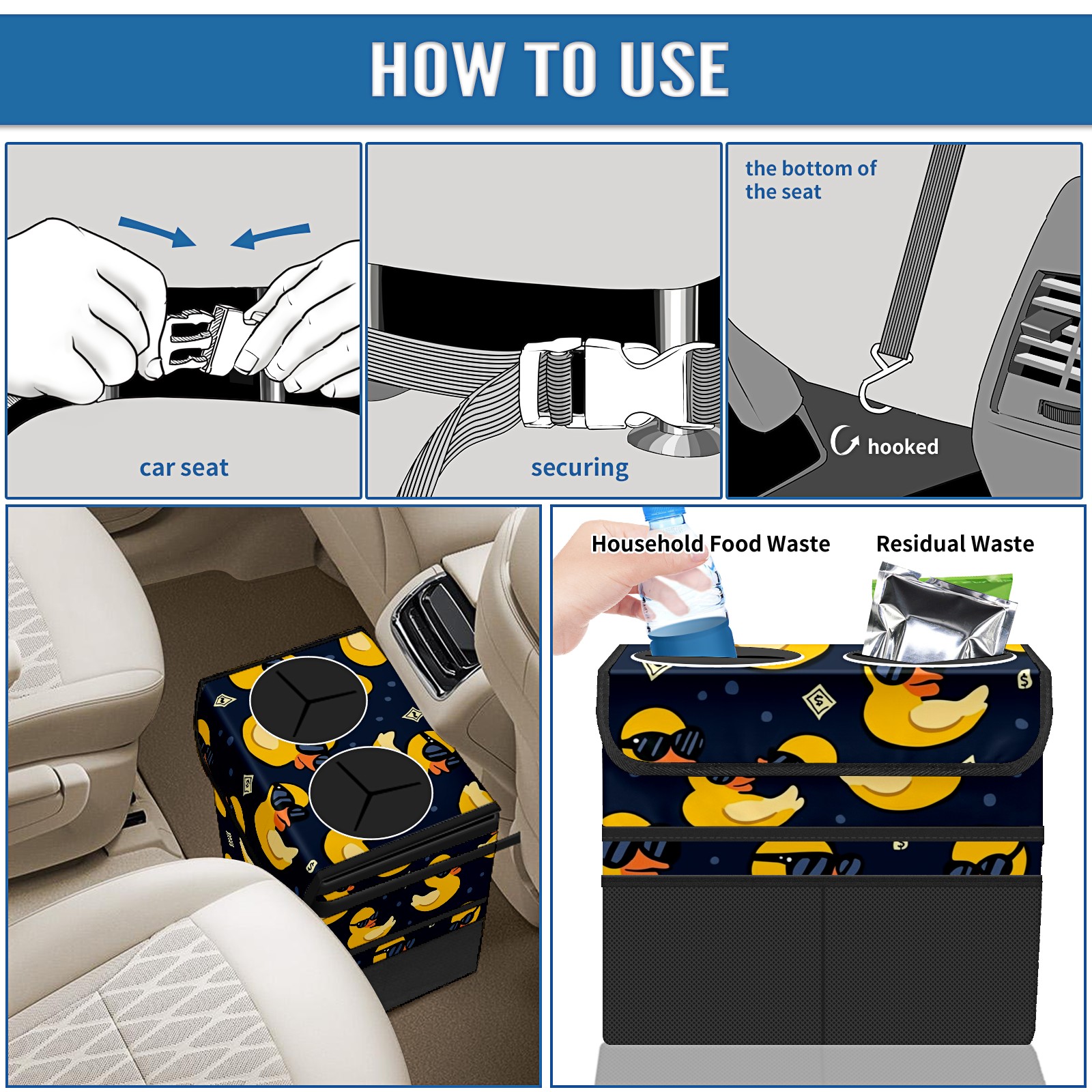 Car Trash Can with Lid, Portable Hanging Automotive Garbage Bin for Vehicles, Leakproof Waste Bag Container for SUV Truck Van Interior Auto Travel Road Trips(Yellow Ducks)