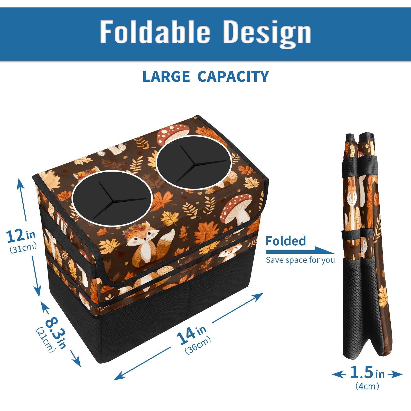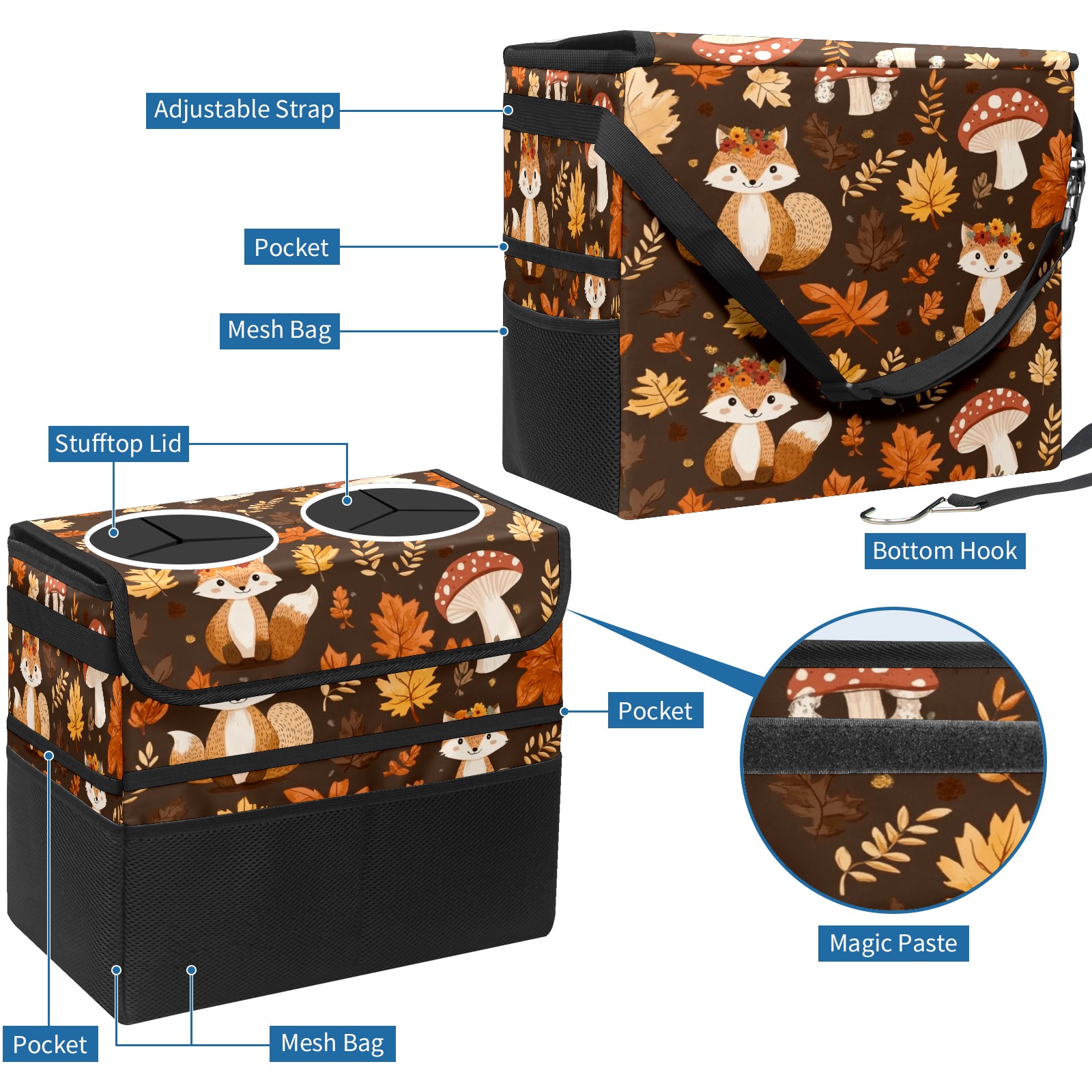 Car Trash Can with Lid, Portable Hanging Automotive Garbage Bin for Vehicles, Leakproof Waste Bag Container for SUV Truck Van Interior Auto Travel Road Trips(Woodland Animal)