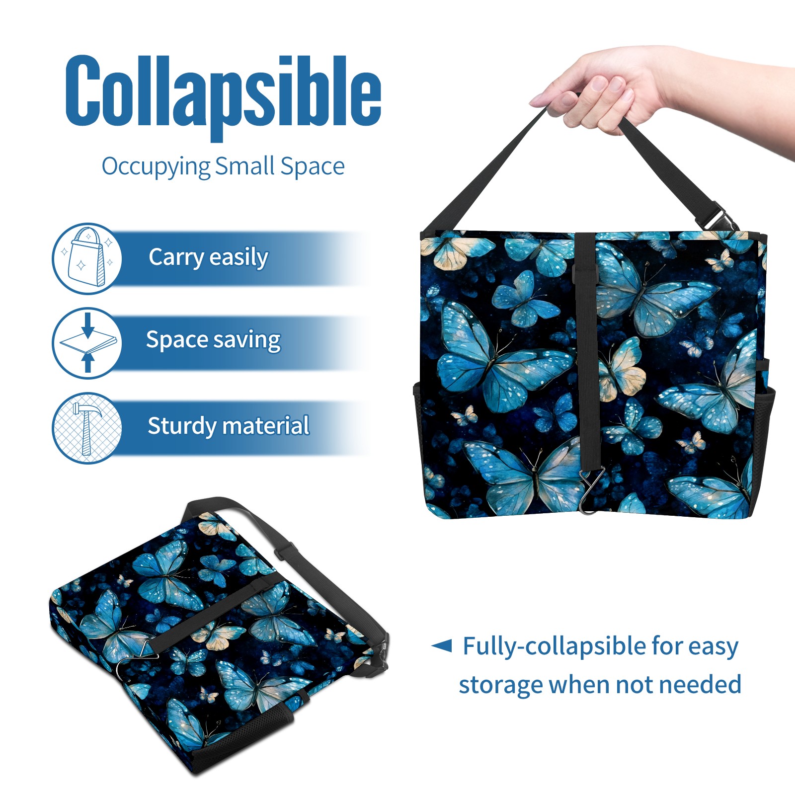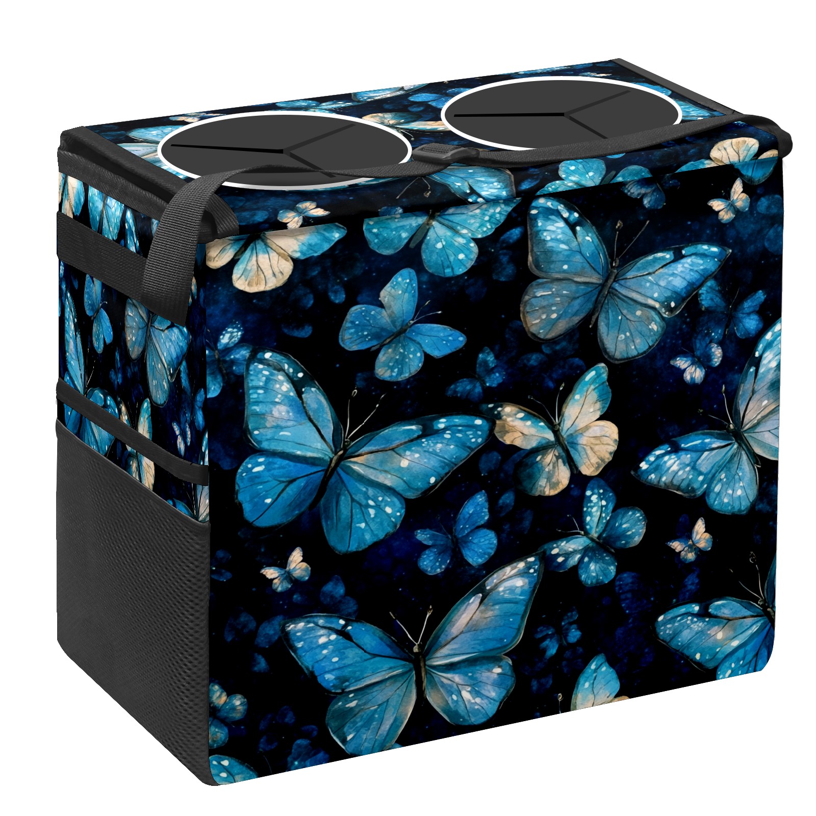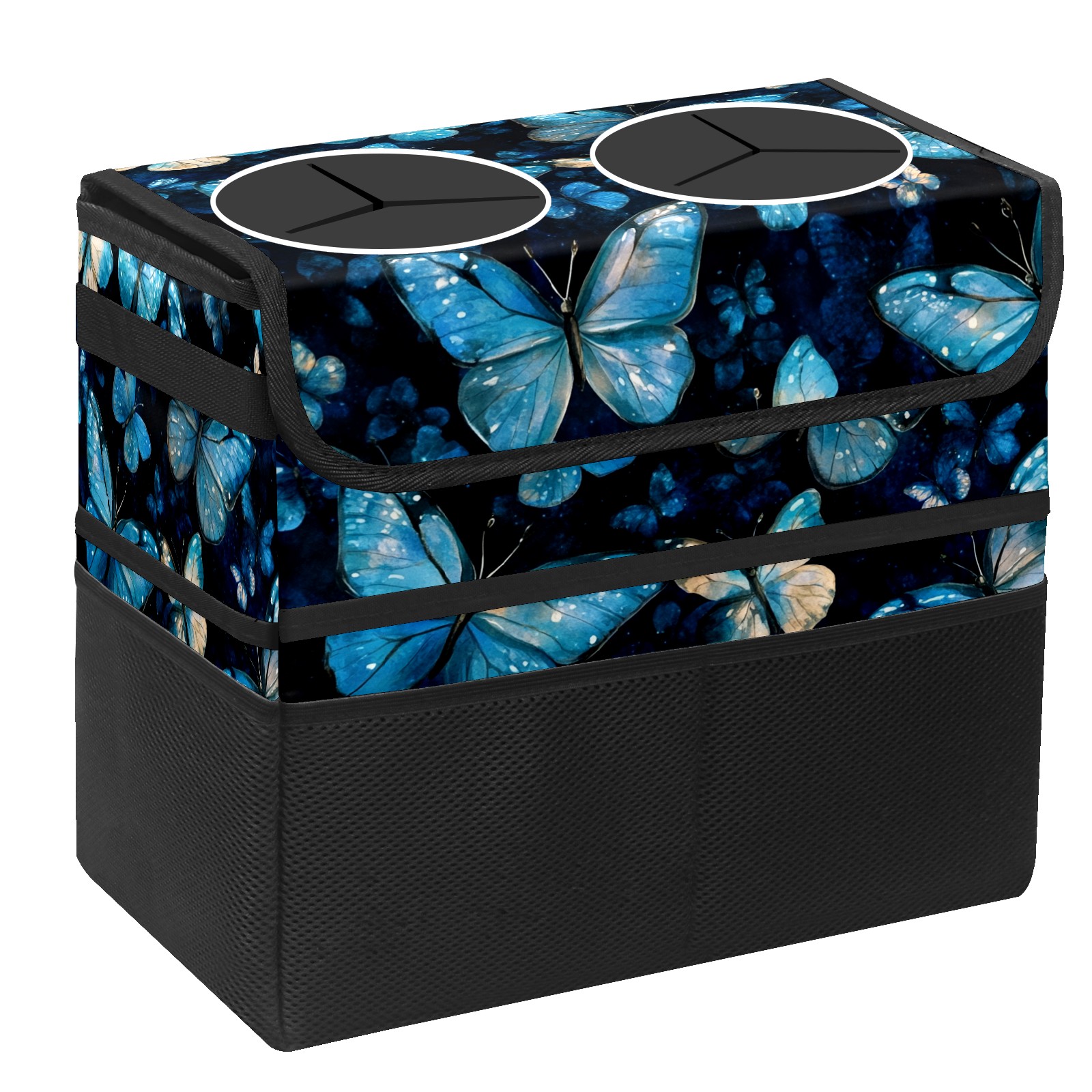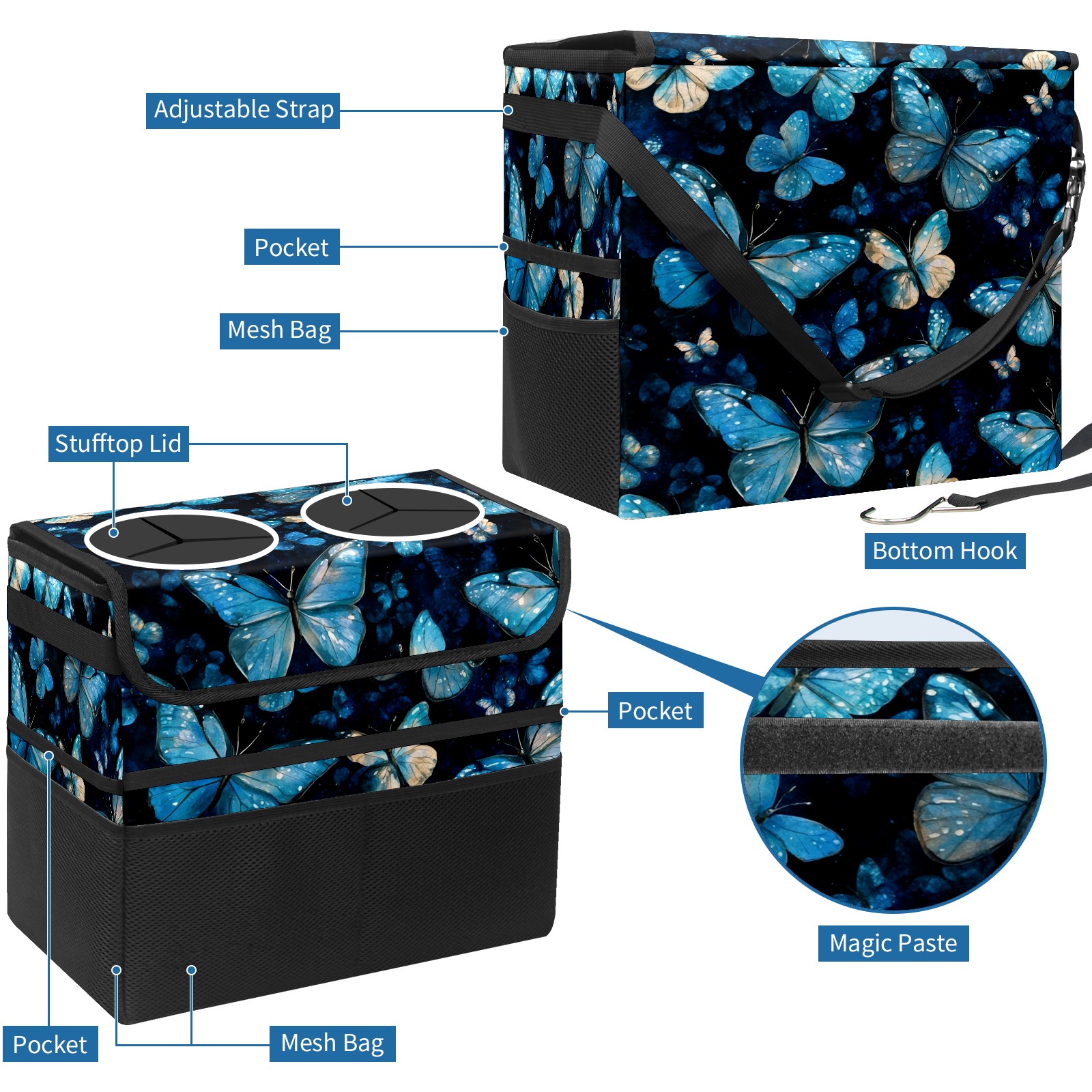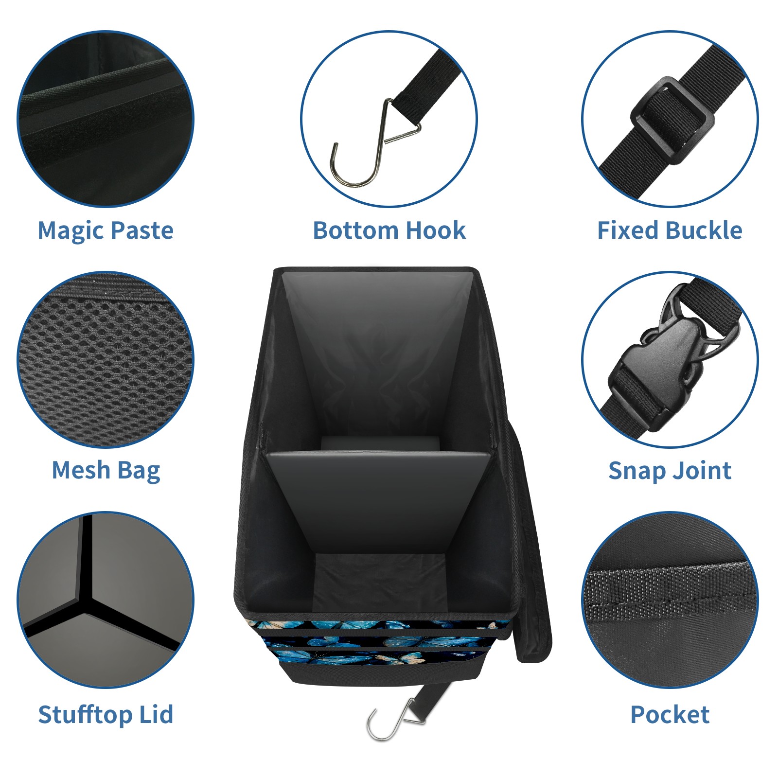 Car Trash Can with Lid, Portable Hanging Automotive Garbage Bin for Vehicles, Leakproof Waste Bag Container for SUV Truck Van Interior Auto Travel Road Trips(Turquoise And Blue Butterflies)