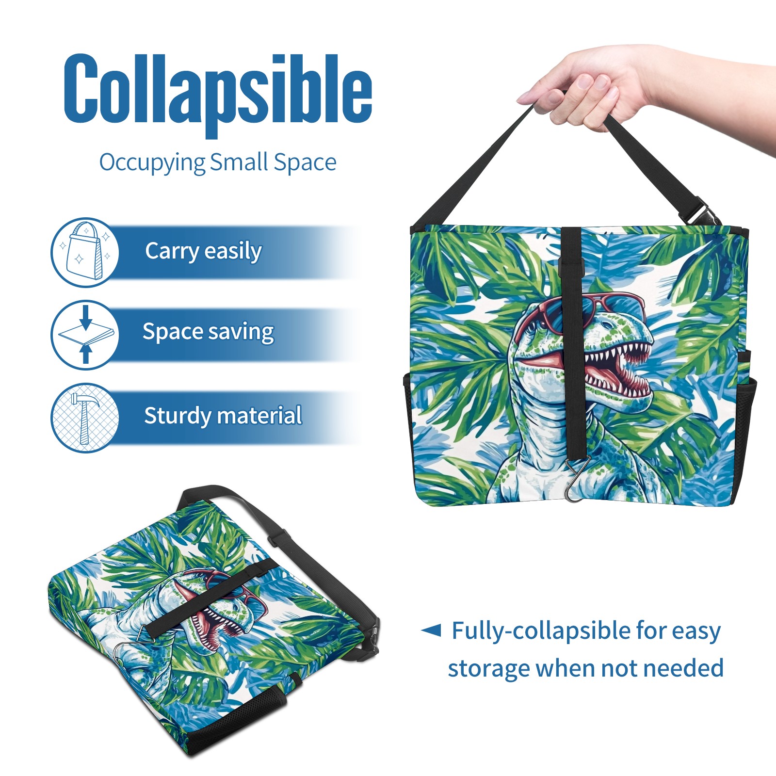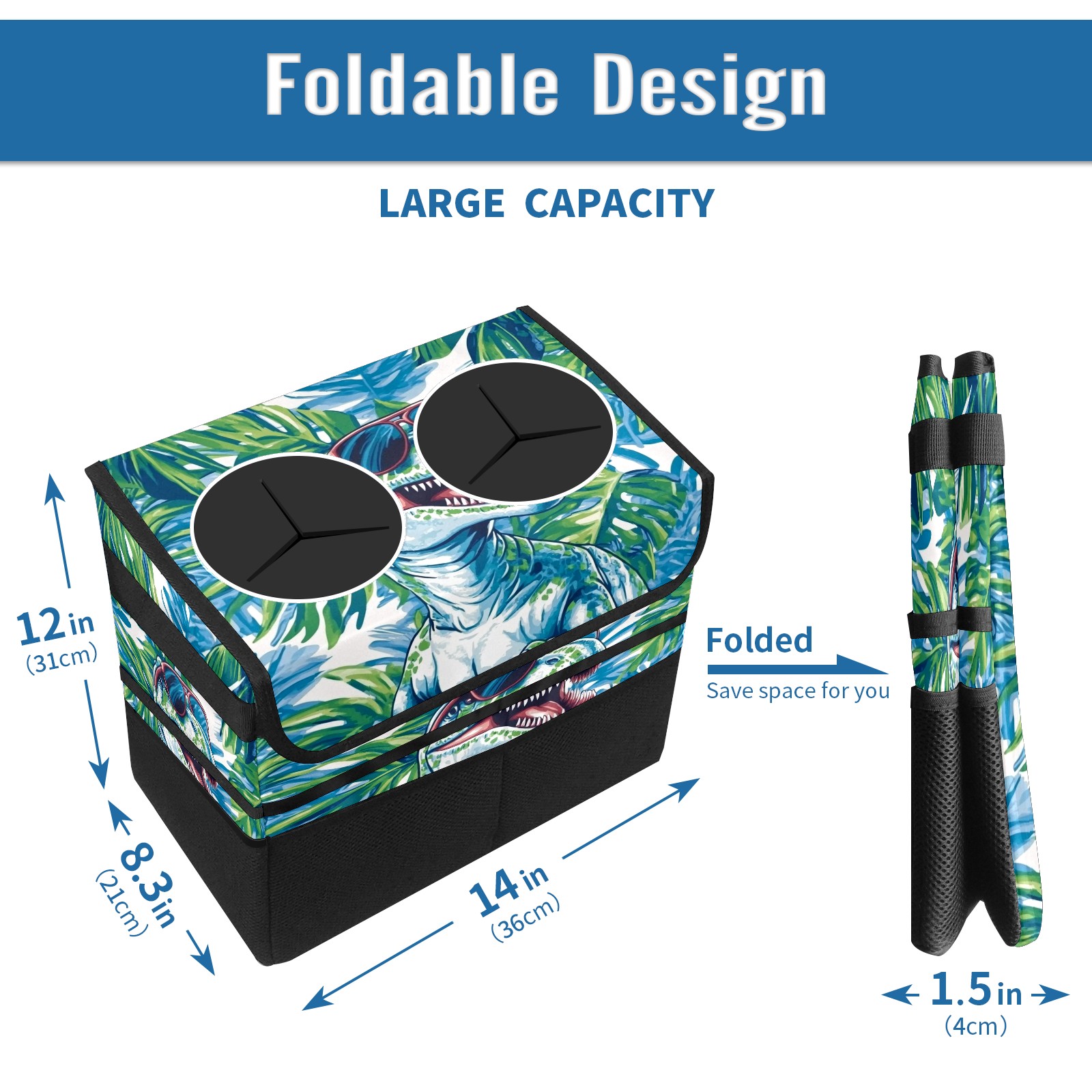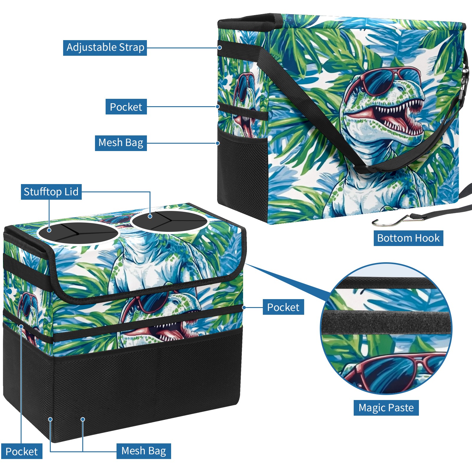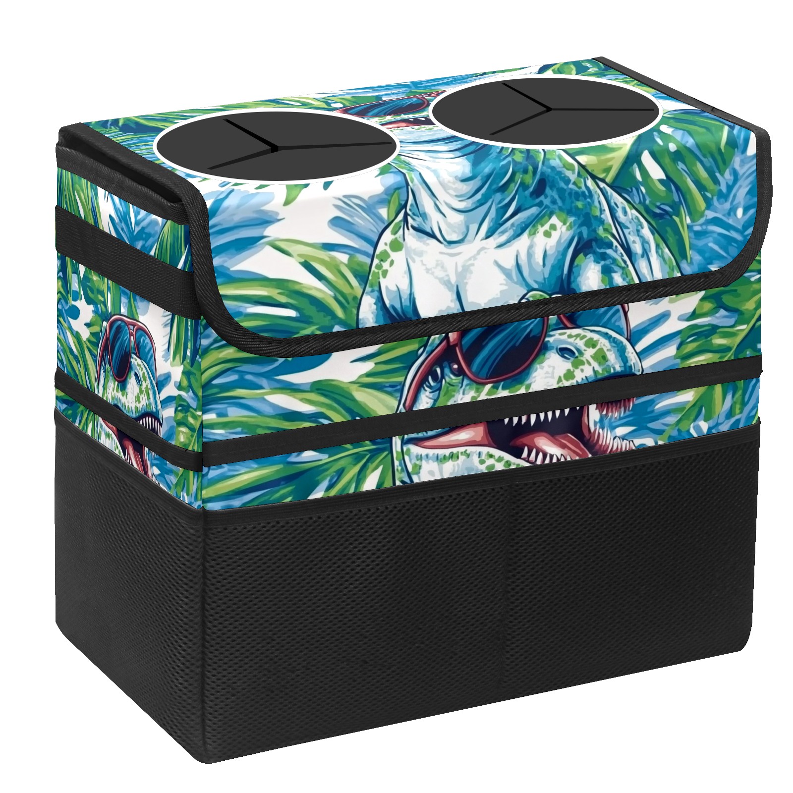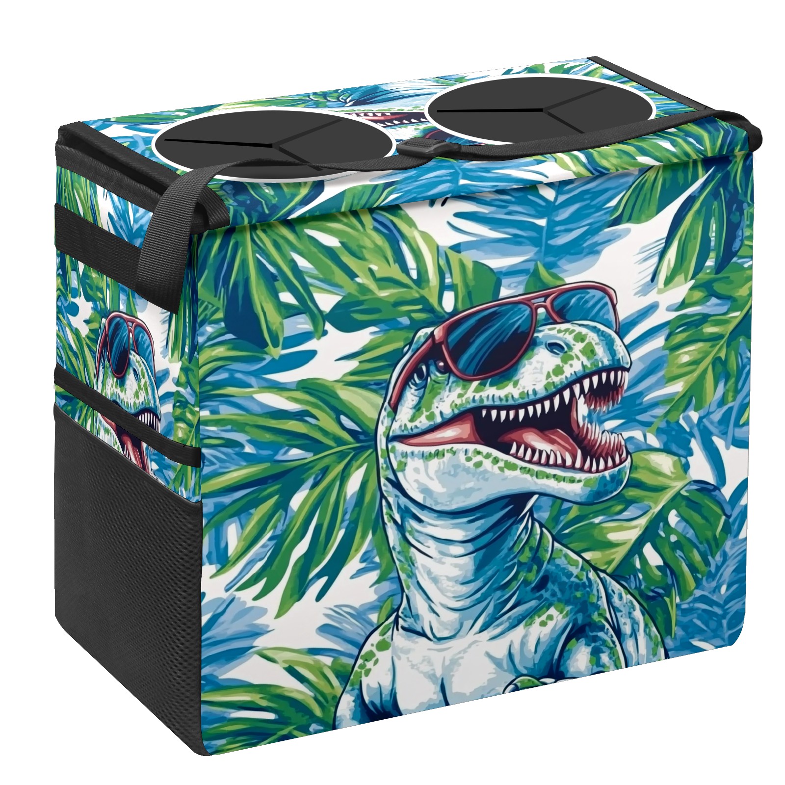 Car Trash Can with Lid, Portable Hanging Automotive Garbage Bin for Vehicles, Leakproof Waste Bag Container for SUV Truck Van Interior Auto Travel Road Trips(T-rex Wearing Sunglasses)