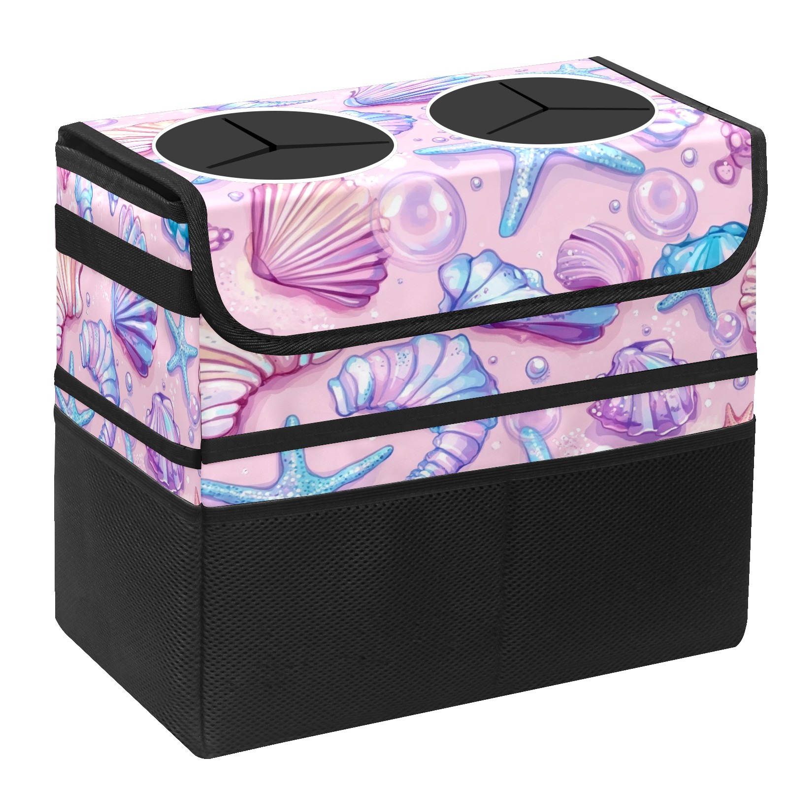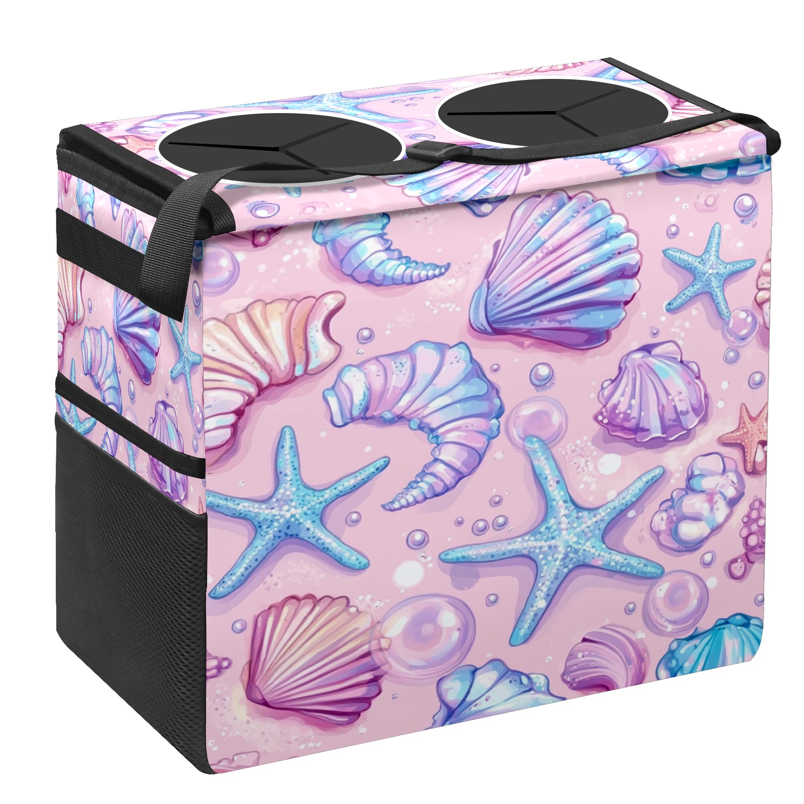 Car Trash Can with Lid, Portable Hanging Automotive Garbage Bin for Vehicles, Leakproof Waste Bag Container for SUV Truck Van Interior Auto Travel Road Trips(Starfish)