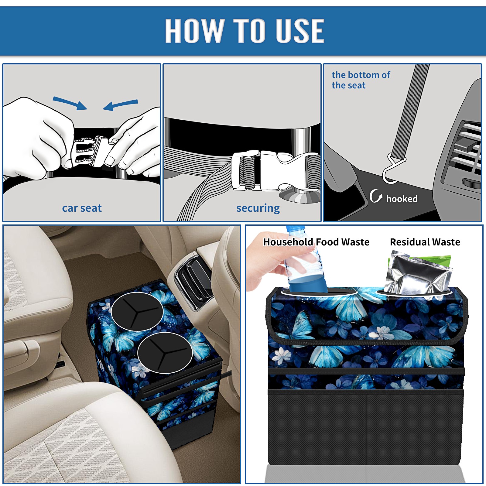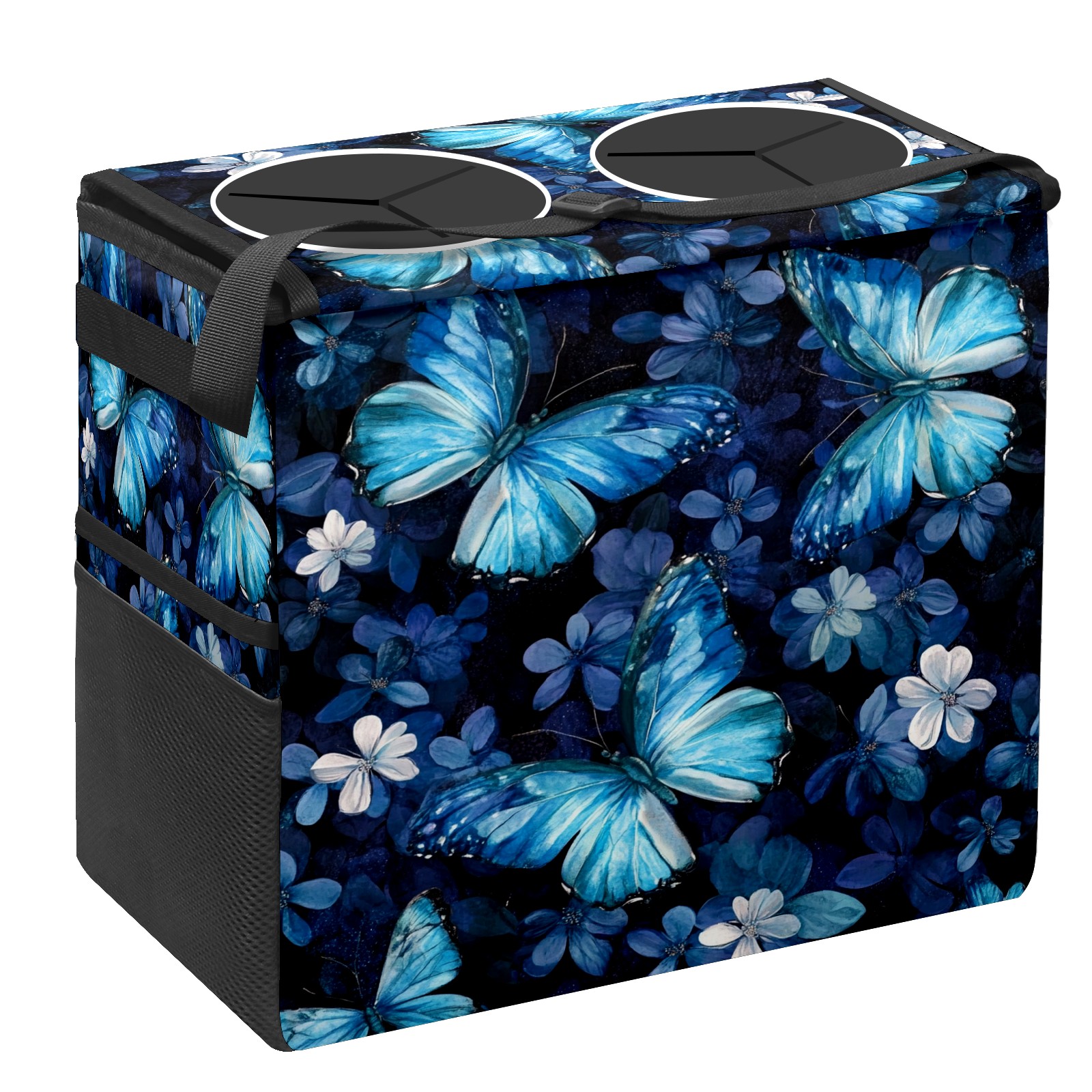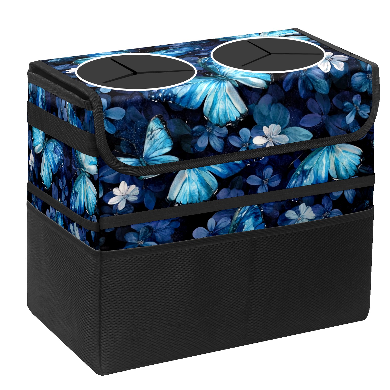 Car Trash Can with Lid, Portable Hanging Automotive Garbage Bin for Vehicles, Leakproof Waste Bag Container for SUV Truck Van Interior Auto Travel Road Trips(Turquoise Butterflies)