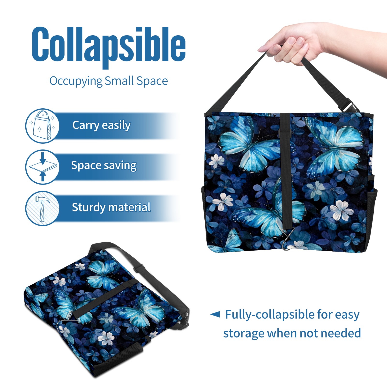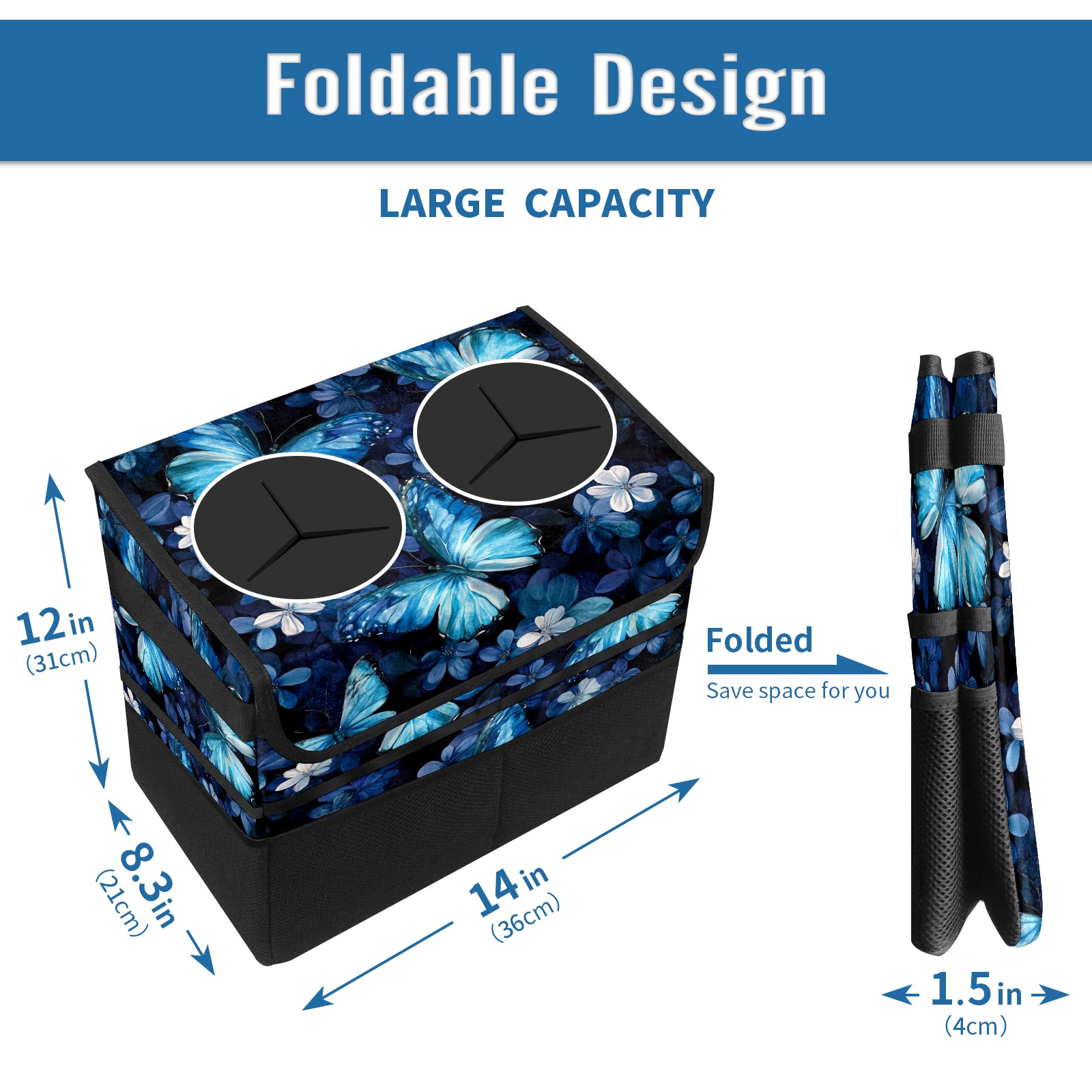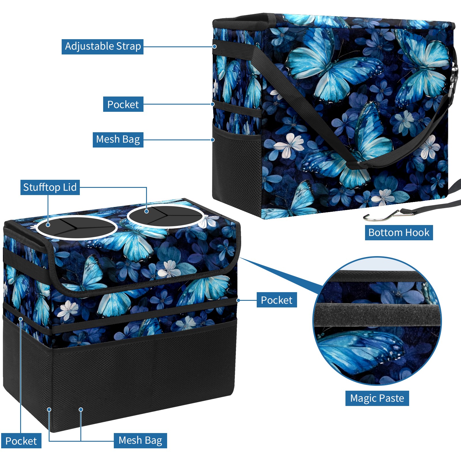 Car Trash Can with Lid, Portable Hanging Automotive Garbage Bin for Vehicles, Leakproof Waste Bag Container for SUV Truck Van Interior Auto Travel Road Trips(Turquoise Butterflies)