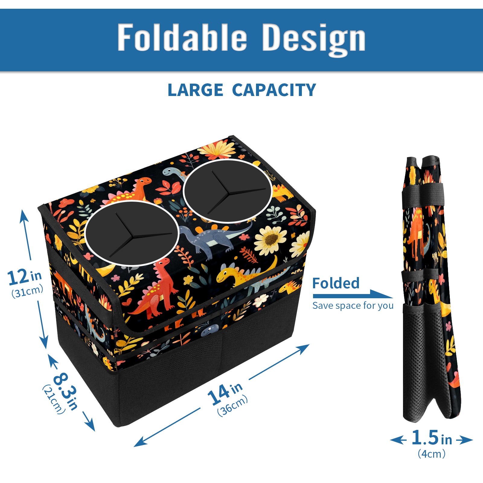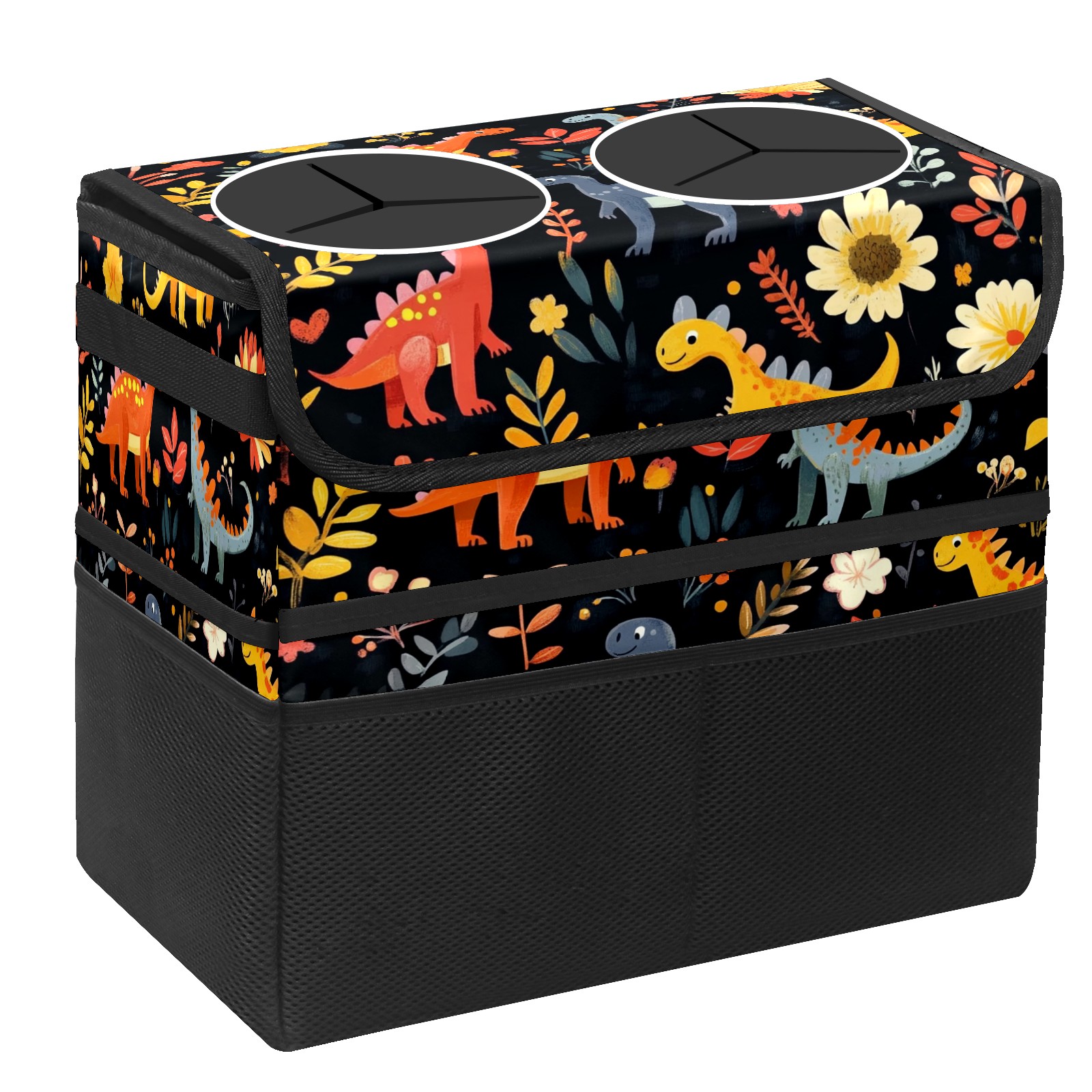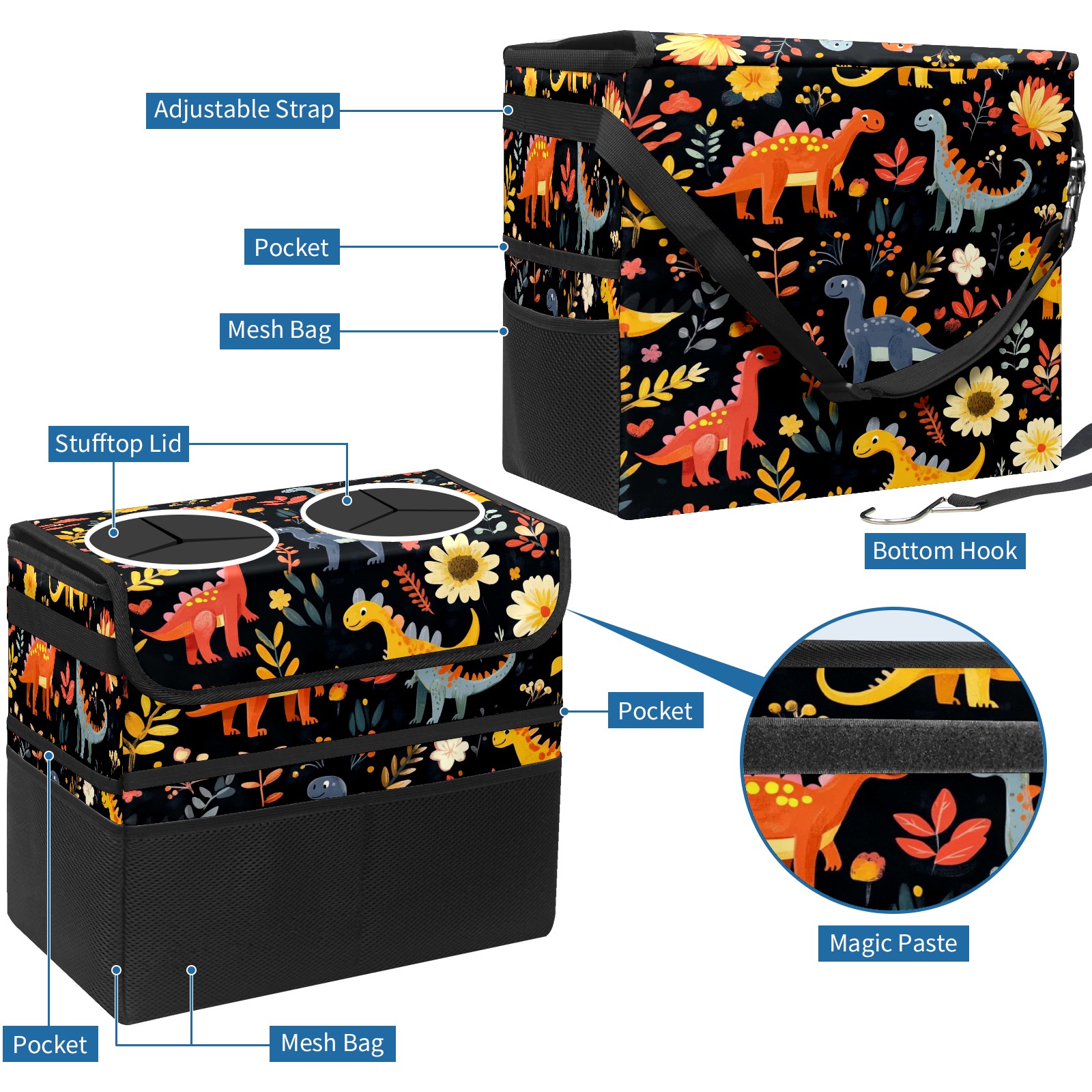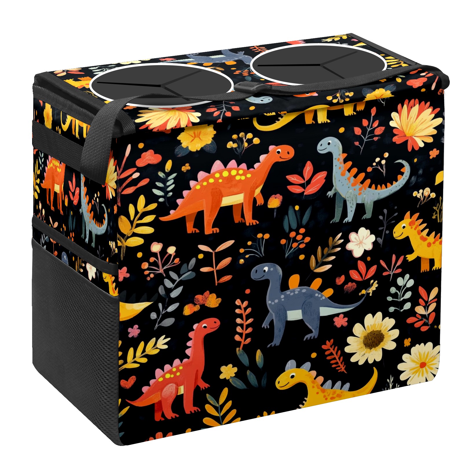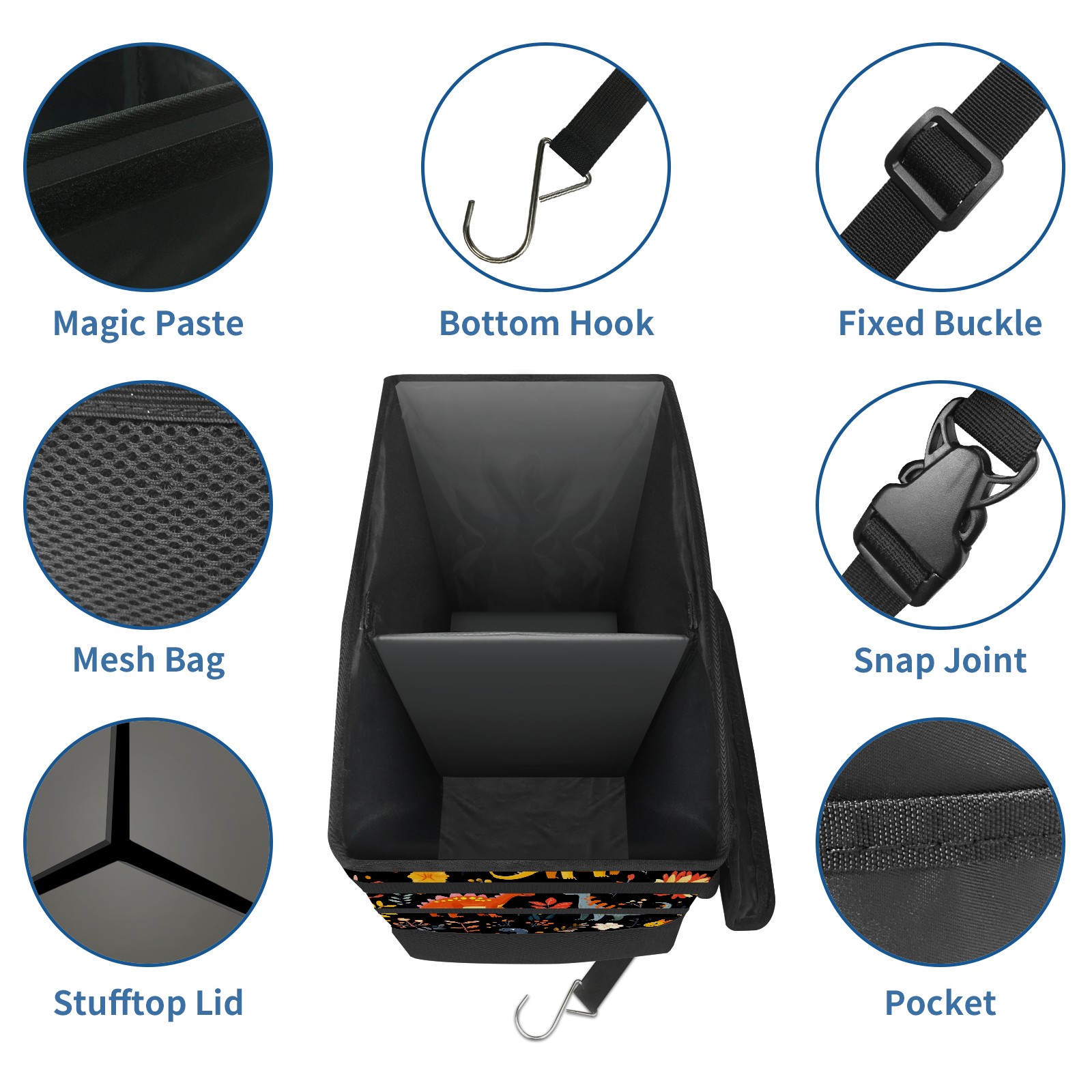 Car Trash Can with Lid, Portable Hanging Automotive Garbage Bin for Vehicles, Leakproof Waste Bag Container for SUV Truck Van Interior Auto Travel Road Trips(Playful Dinosaurs Pattern)