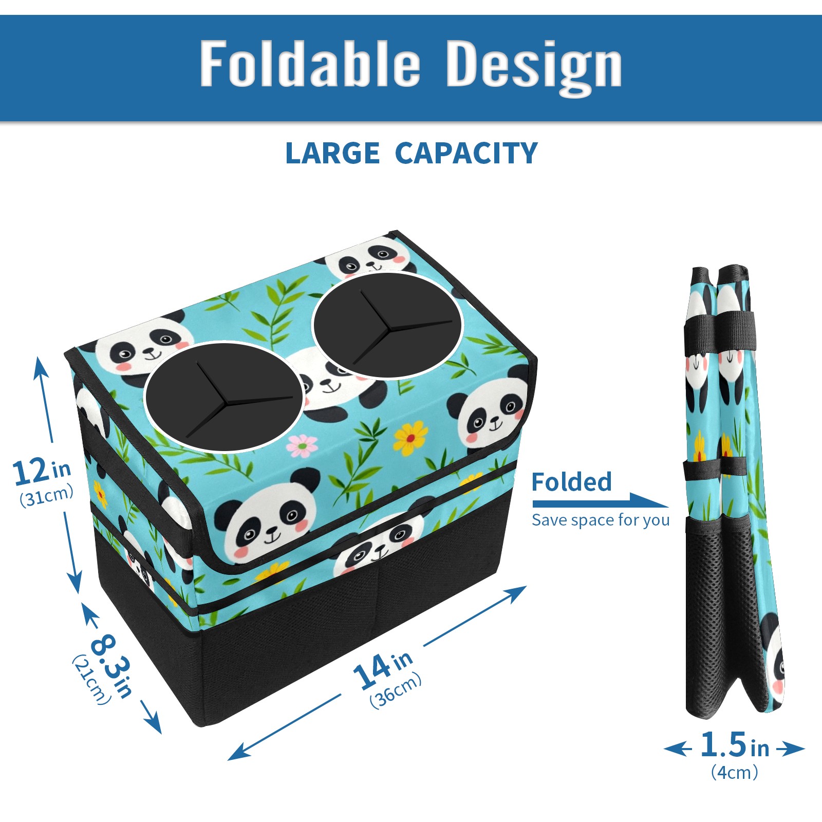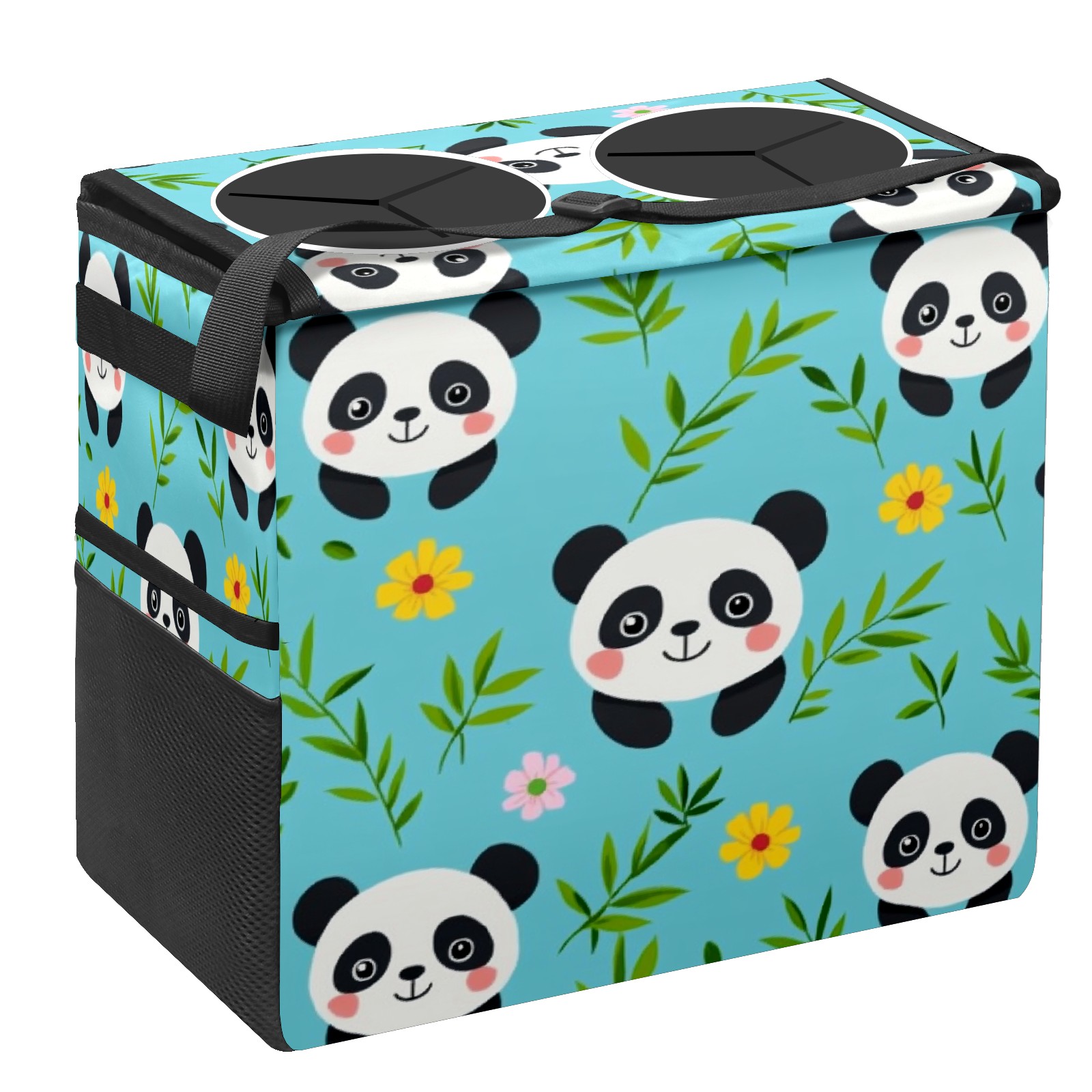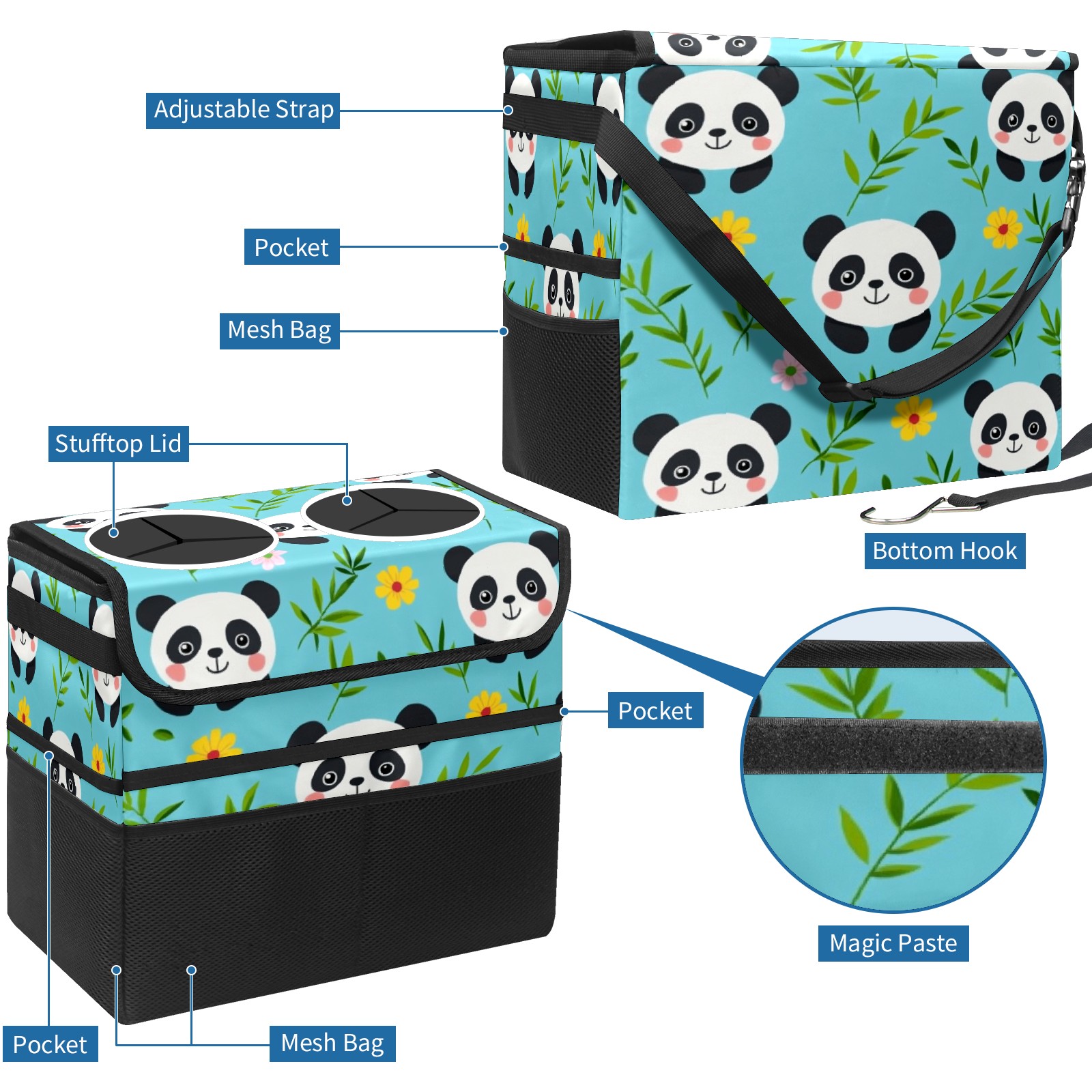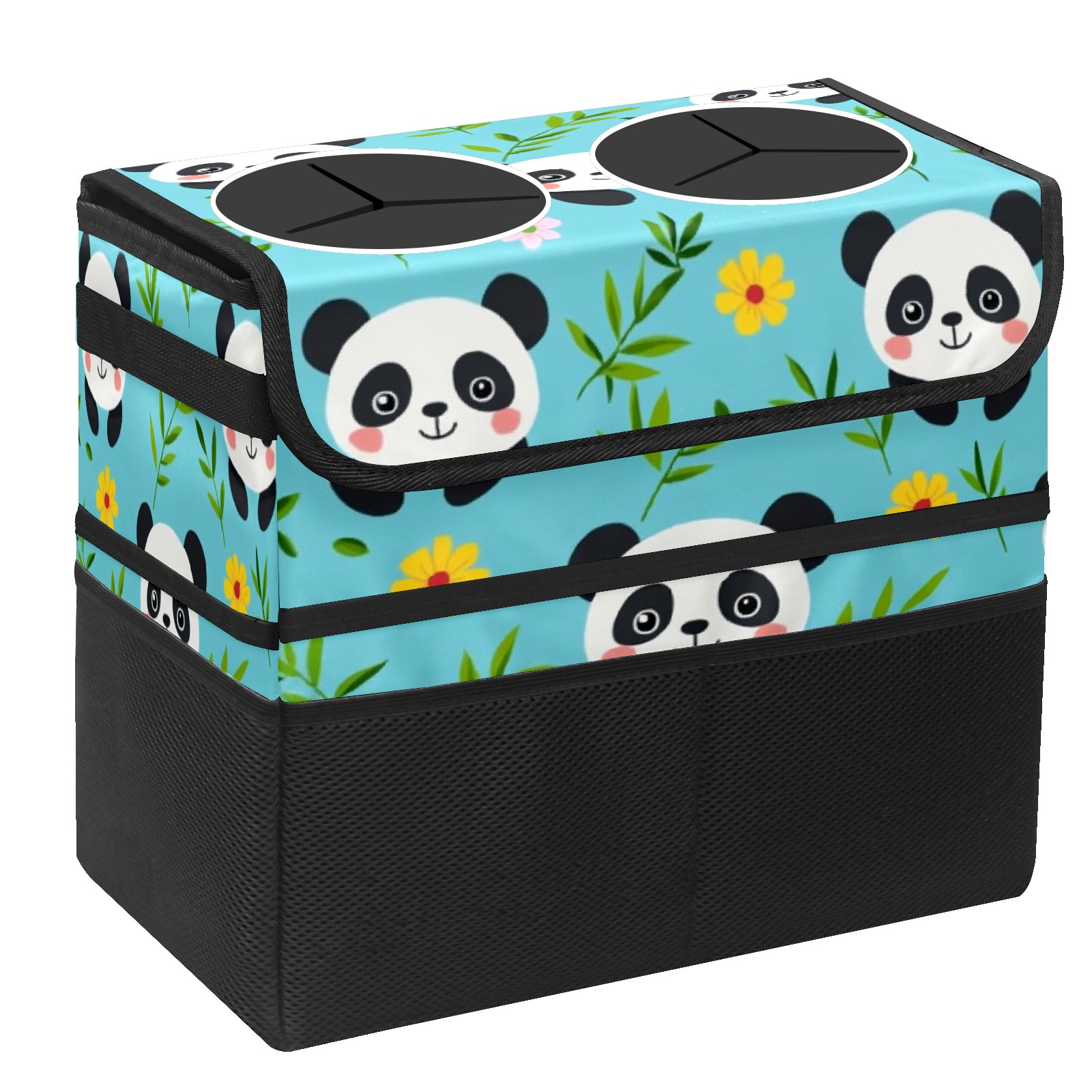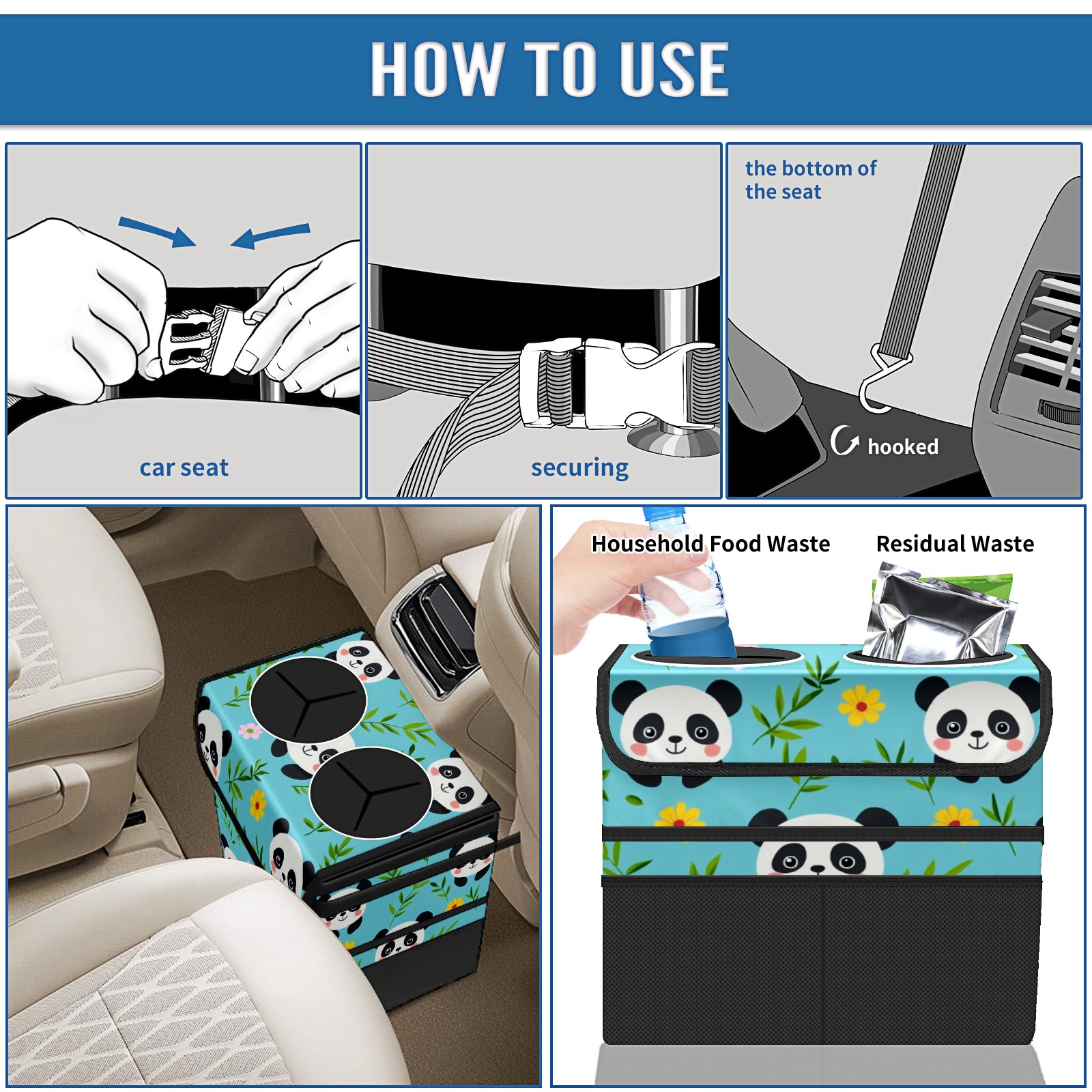 Car Trash Can with Lid, Portable Hanging Automotive Garbage Bin for Vehicles, Leakproof Waste Bag Container for SUV Truck Van Interior Auto Travel Road Trips(Panda And Bamboo Leaves)
