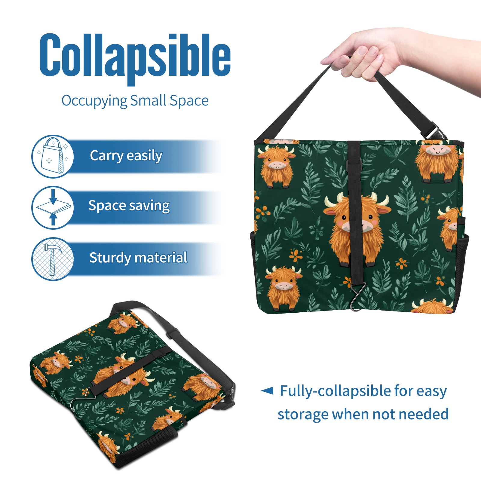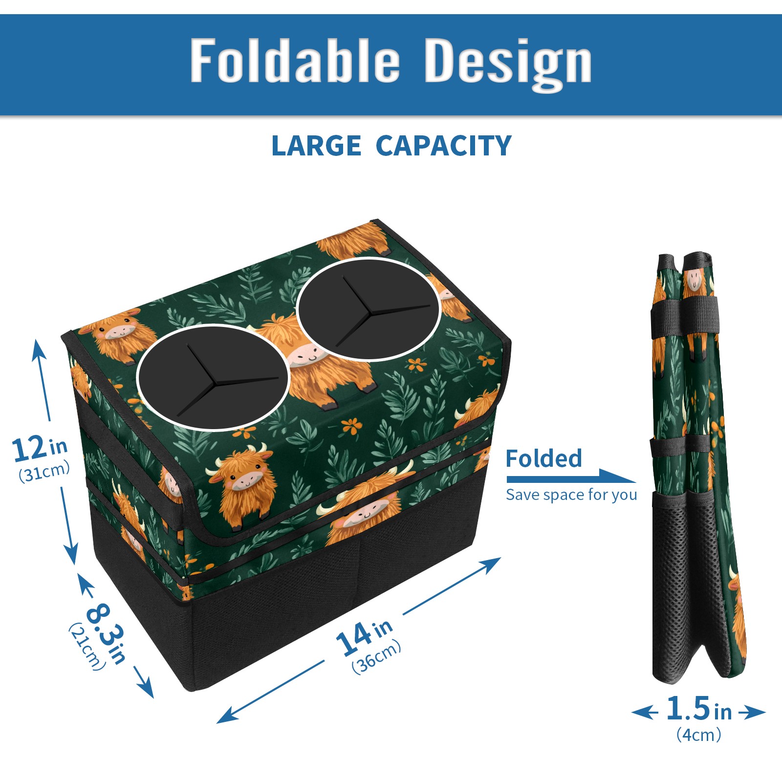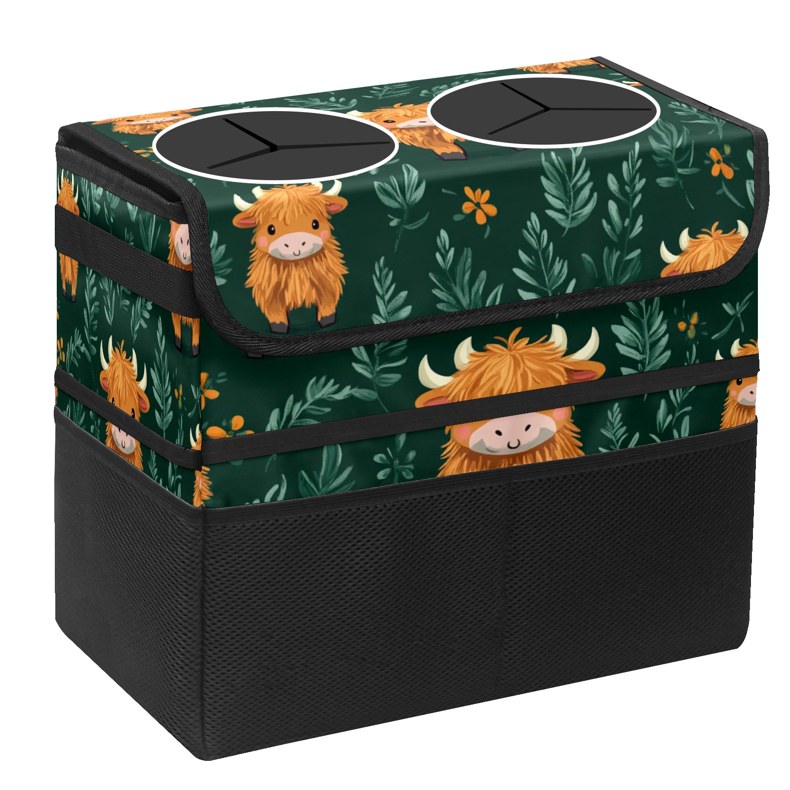 Car Trash Can with Lid, Portable Hanging Automotive Garbage Bin for Vehicles, Leakproof Waste Bag Container for SUV Truck Van Interior Auto Travel Road Trips(Highland Cow)