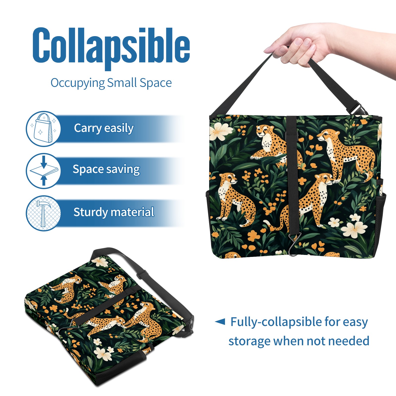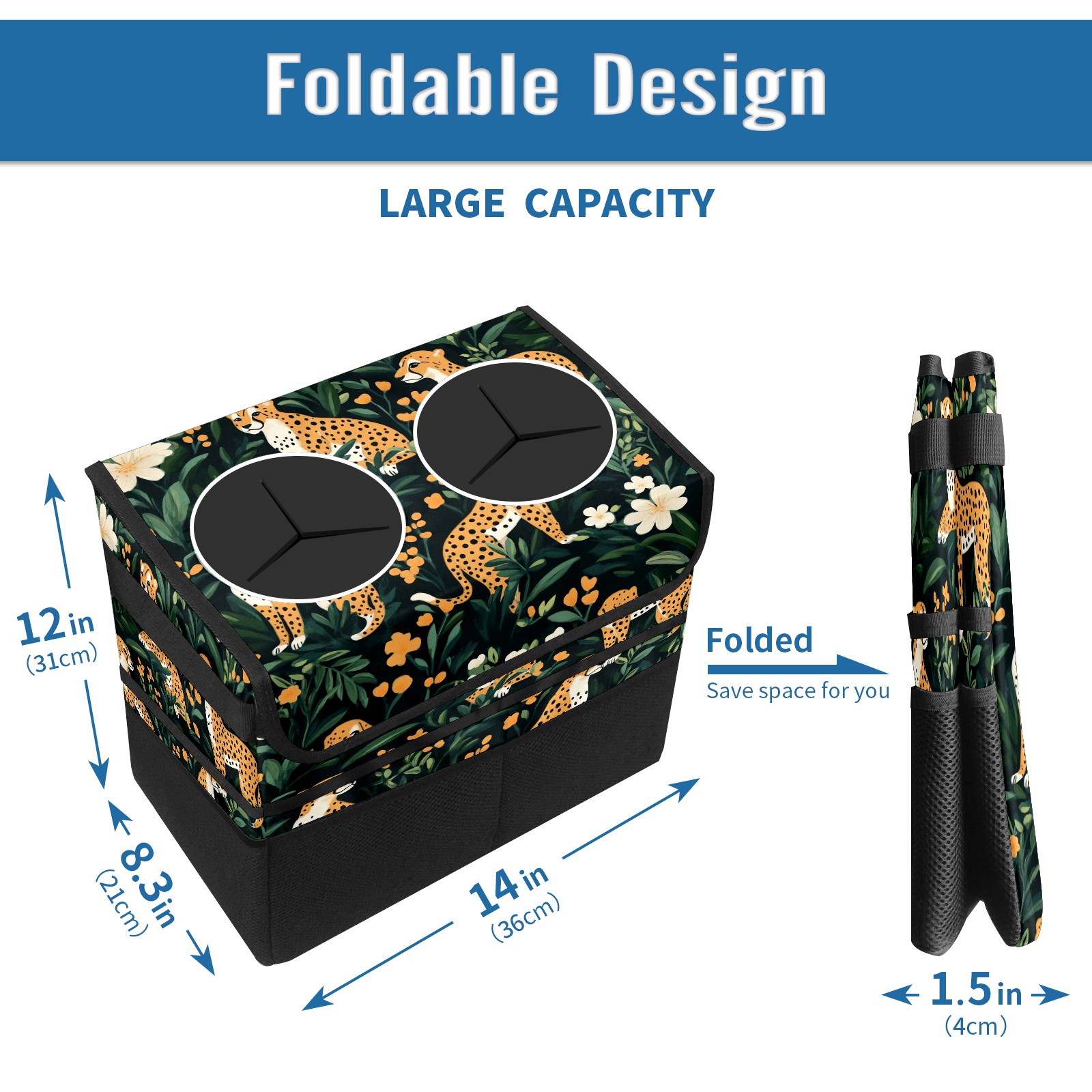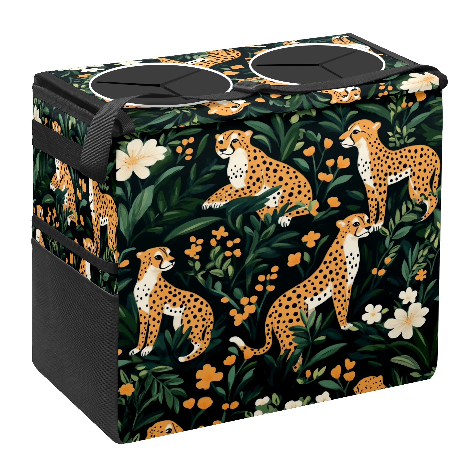Car Trash Can with Lid, Portable Hanging Automotive Garbage Bin for Vehicles, Leakproof Waste Bag Container for SUV Truck Van Interior Auto Travel Road Trips(Cheetahs)