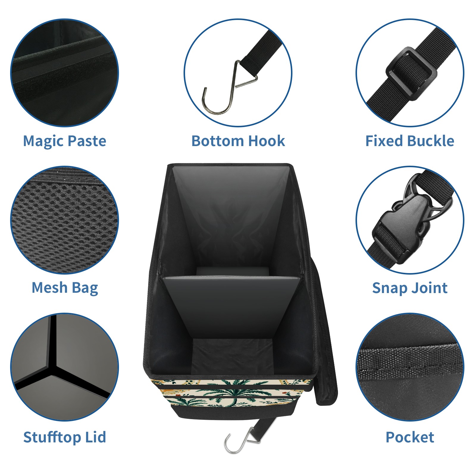 Car Trash Can with Lid, Portable Hanging Automotive Garbage Bin for Vehicles, Leakproof Waste Bag Container for SUV Truck Van Interior Auto Travel Road Trips(Enchanting Pattern)
