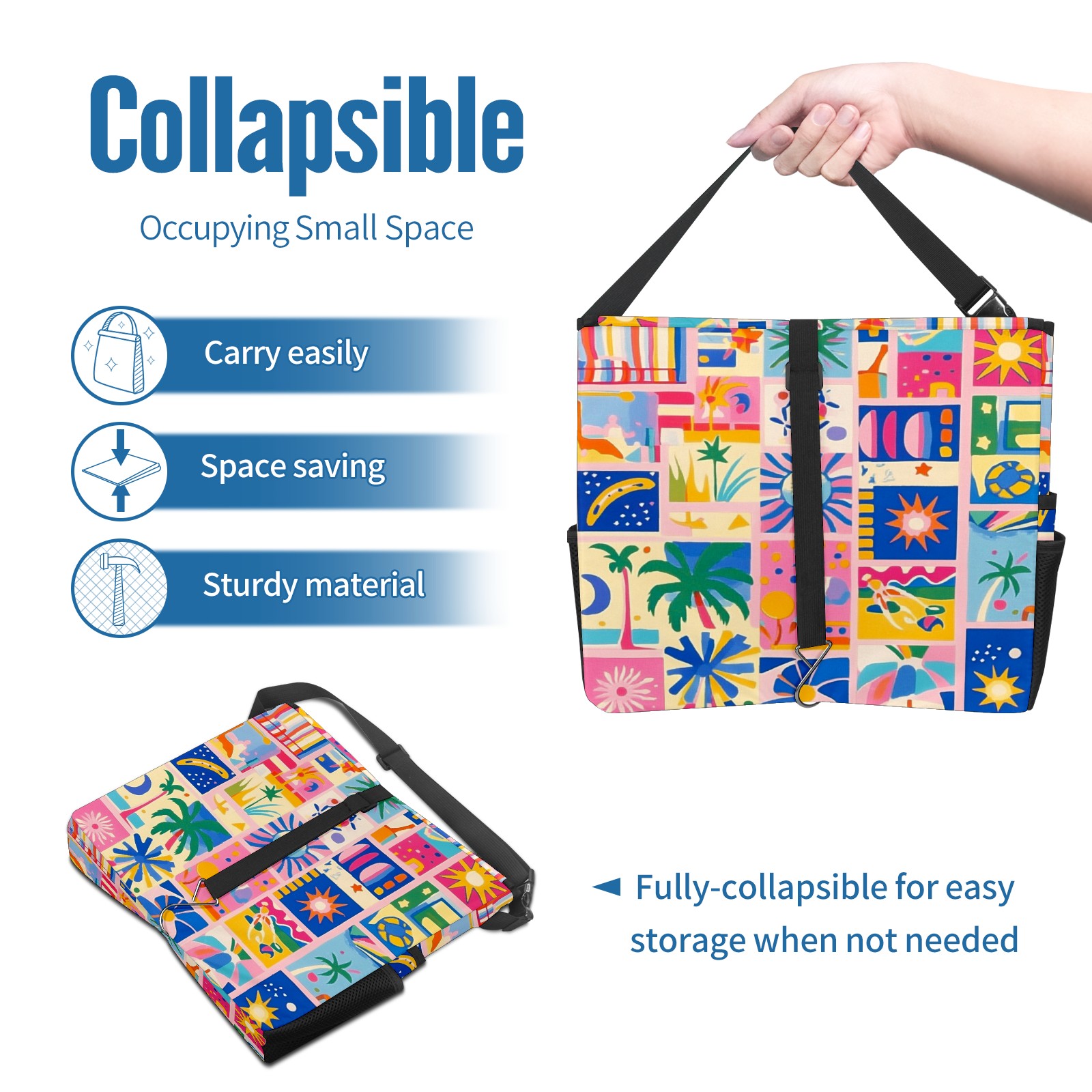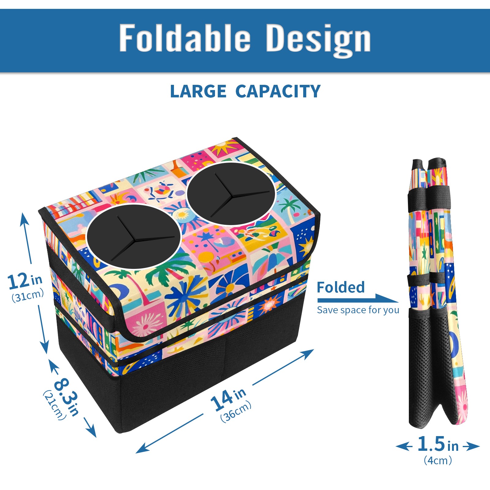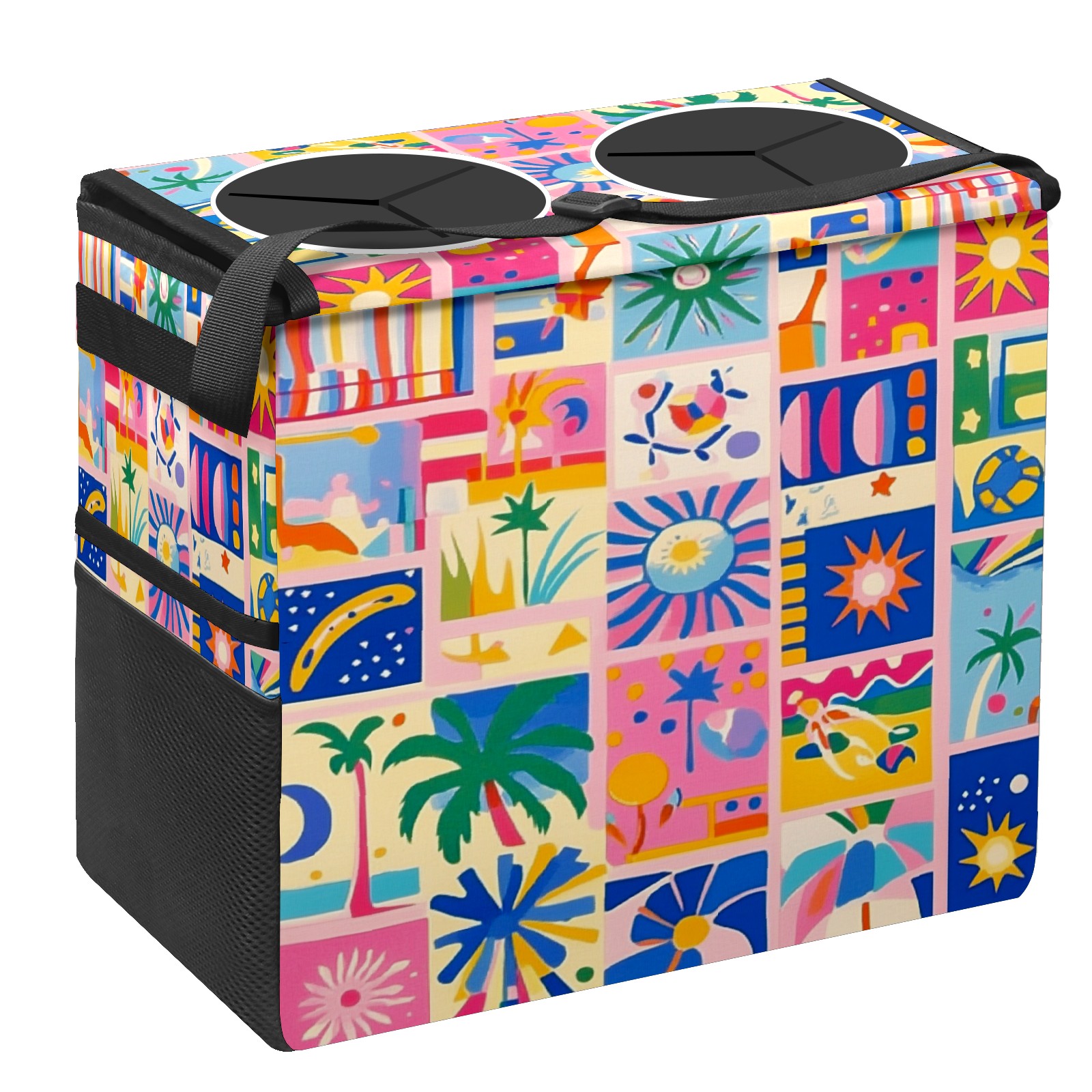 Car Trash Can with Lid, Portable Hanging Automotive Garbage Bin for Vehicles, Leakproof Waste Bag Container for SUV Truck Van Interior Auto Travel Road Trips(Vibrant Pattern)