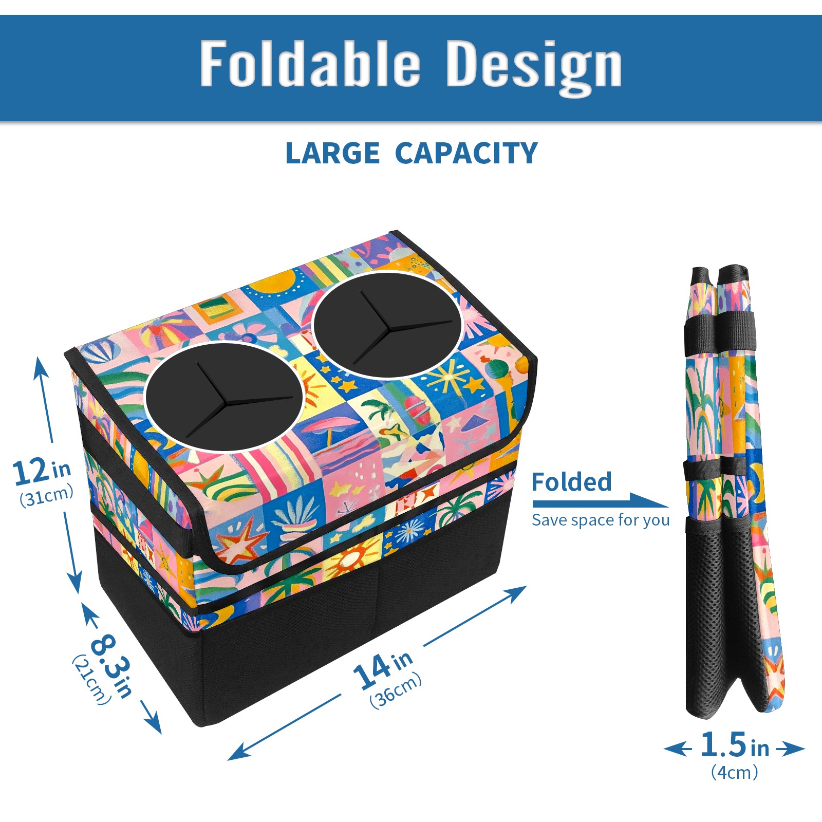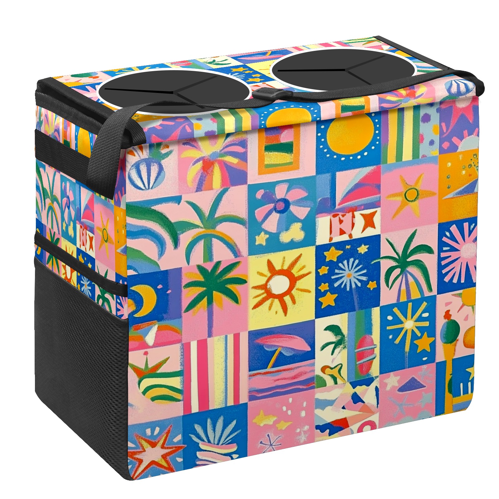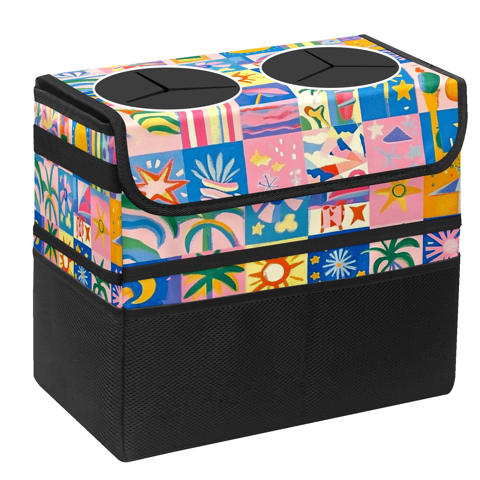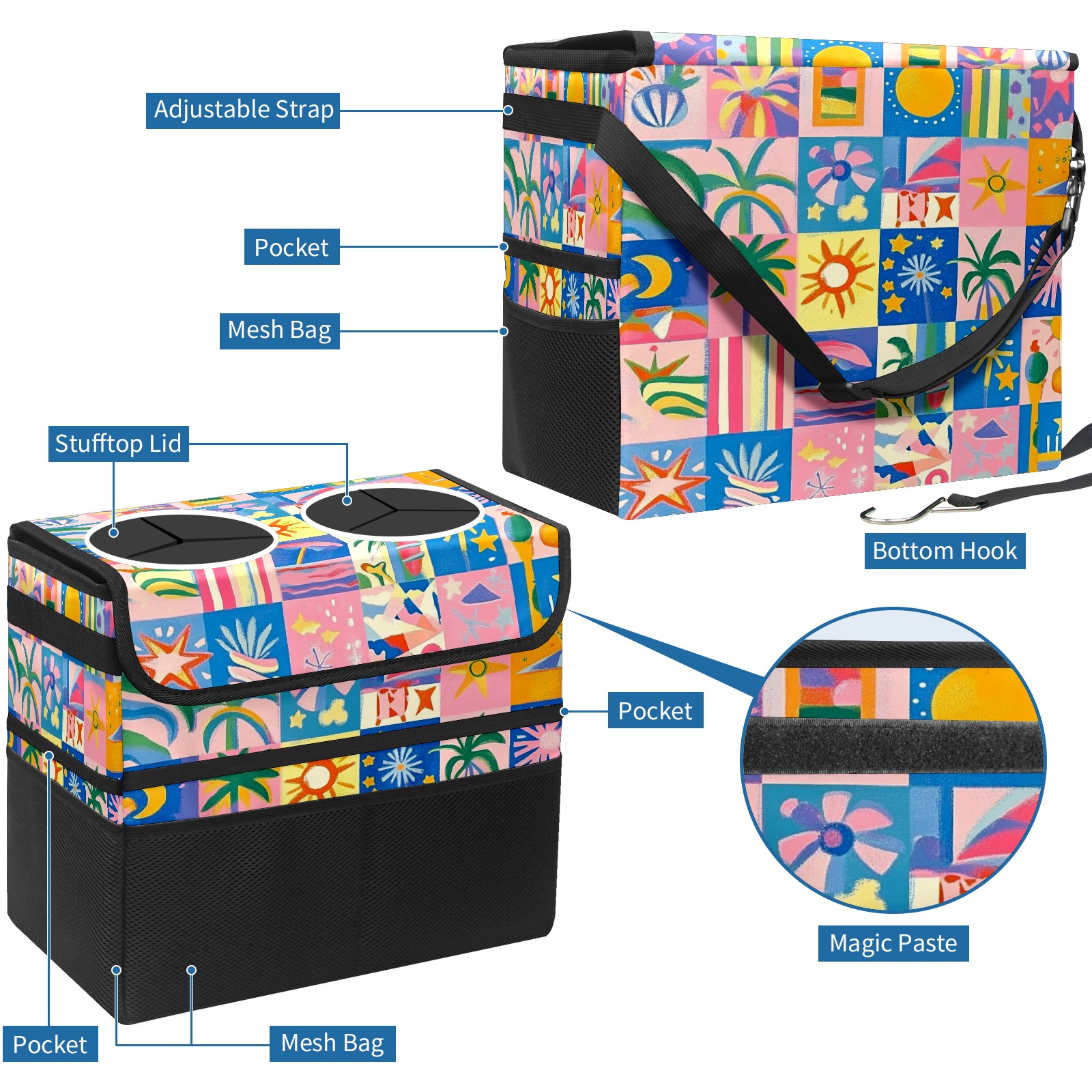 Car Trash Can with Lid, Portable Hanging Automotive Garbage Bin for Vehicles, Leakproof Waste Bag Container for SUV Truck Van Interior Auto Travel Road Trips(Vibrant And Colorful)